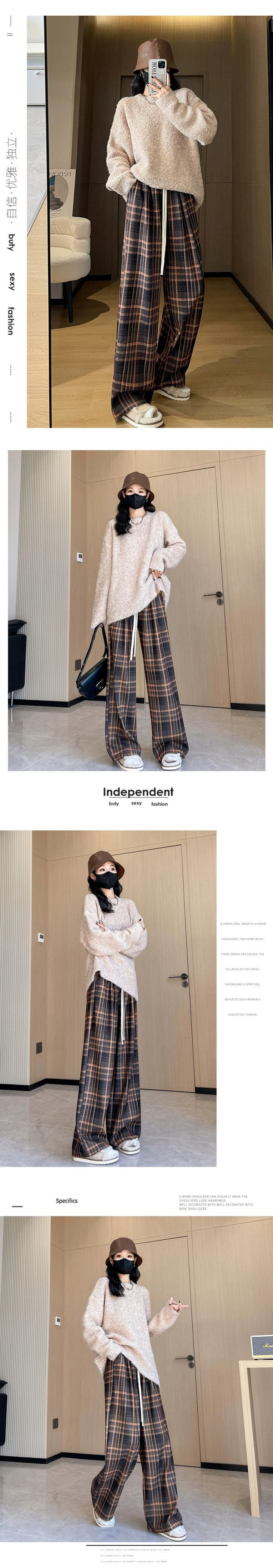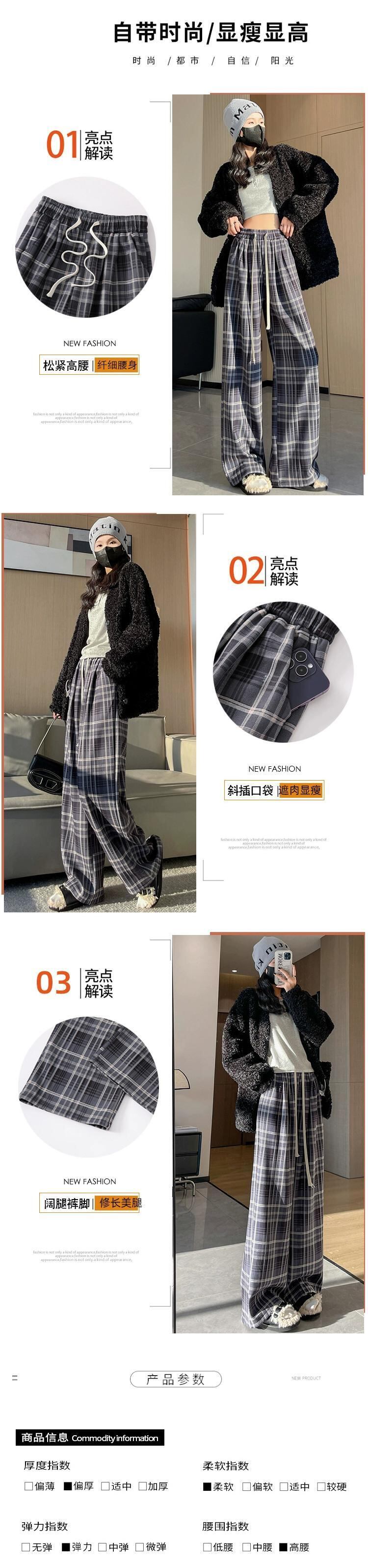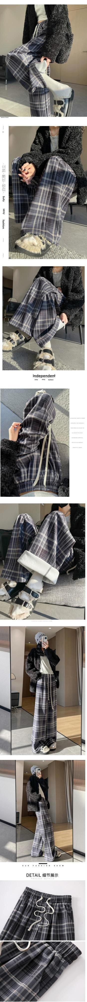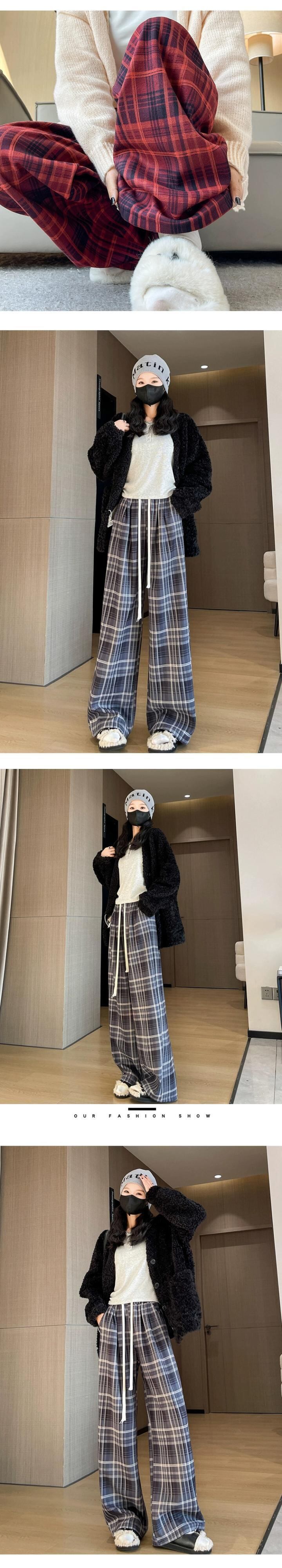 ベルベット肥厚ワイドレッグパンツ女性の秋と冬のレトロな赤いチェック柄パンツハイウエストドレープフロアレングスストレートカジュアルパンツ レッド オータム 秋物 ウィンター 冬物 7460083901488105 | framboise21