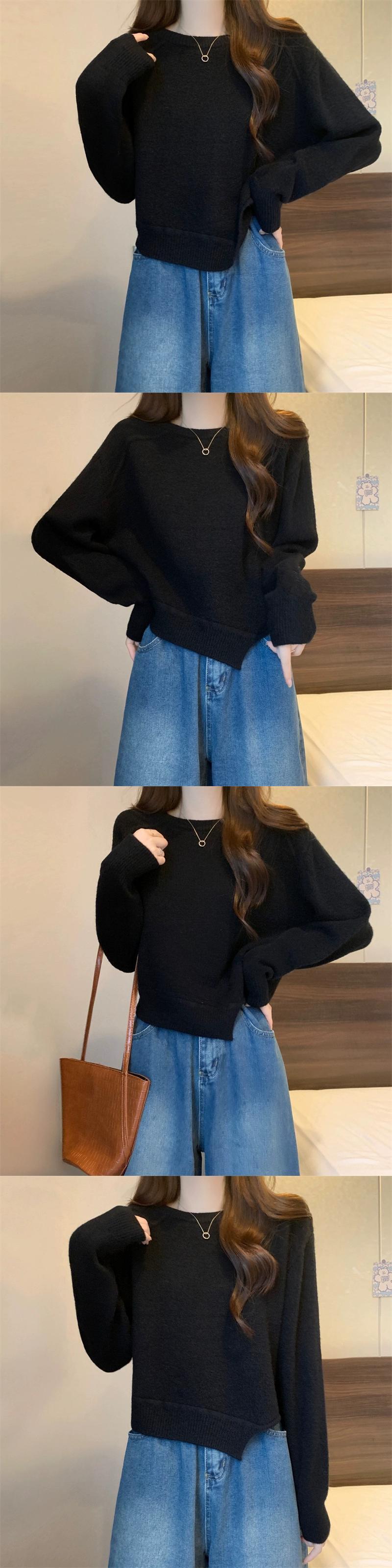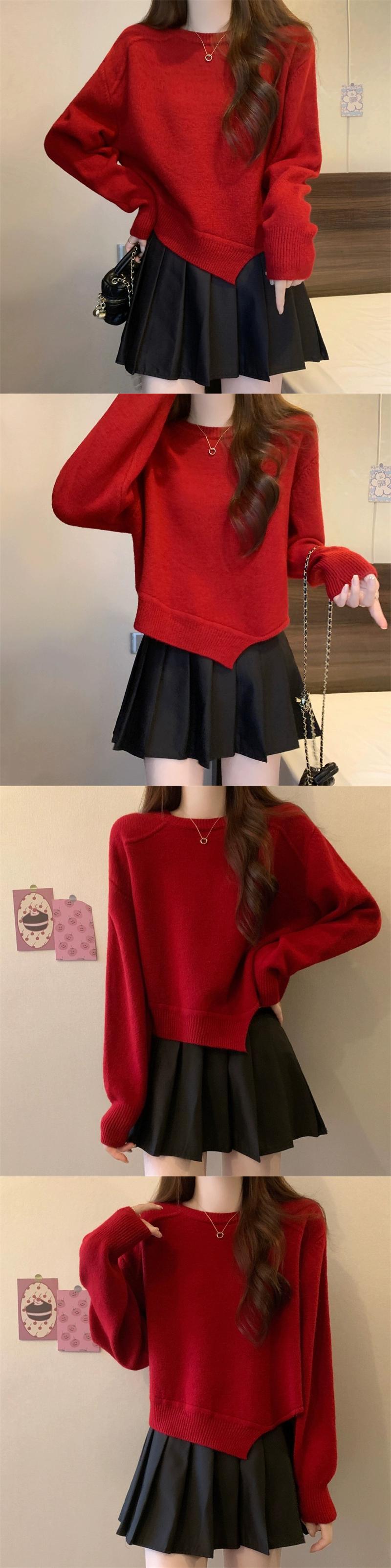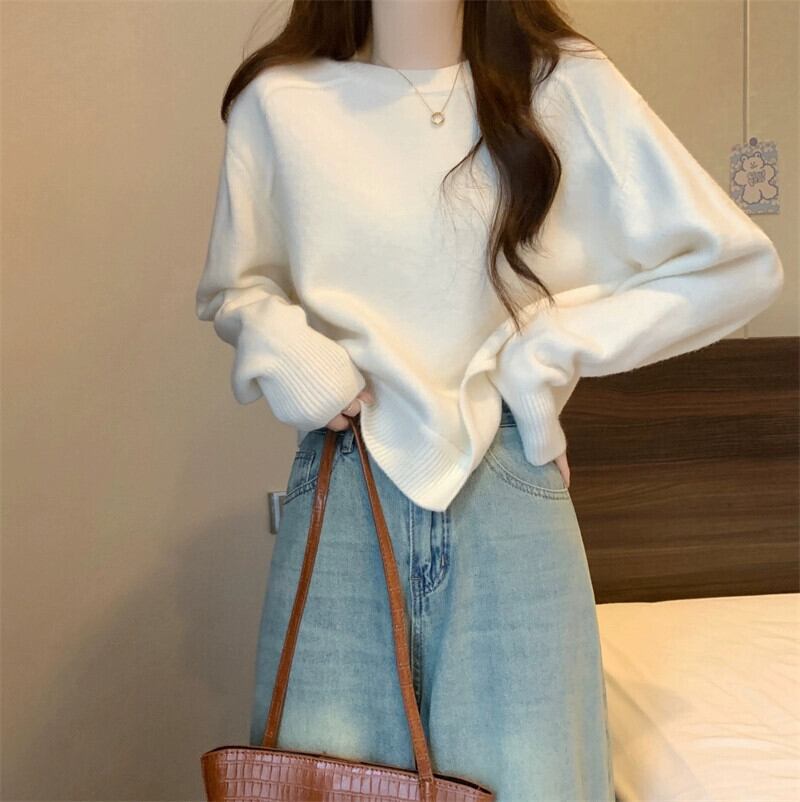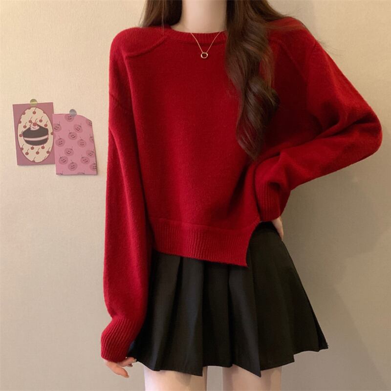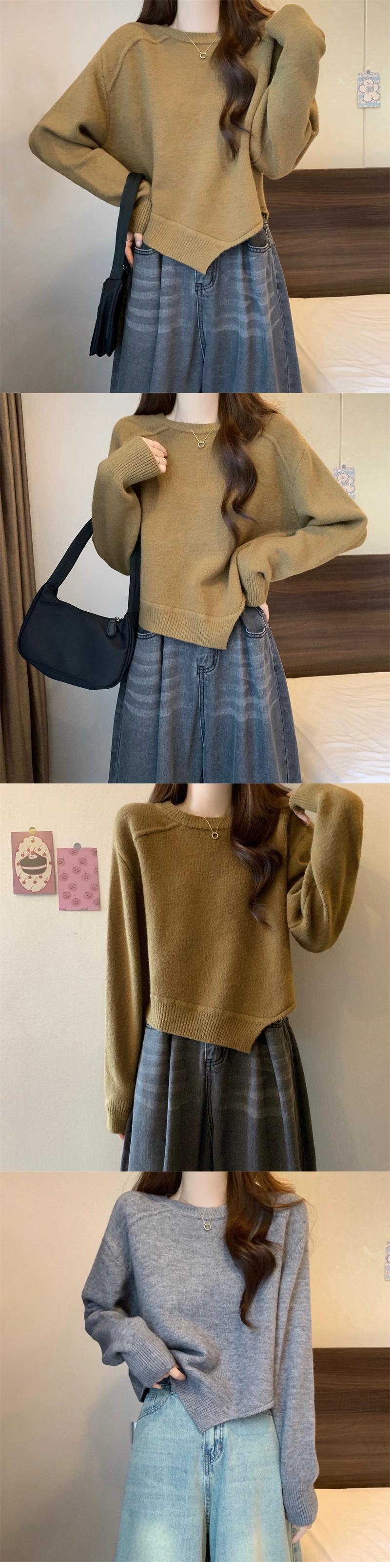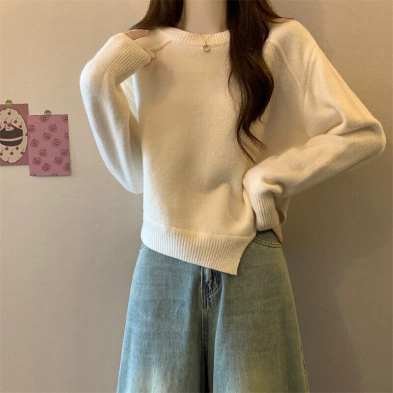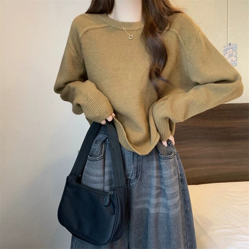 秋と冬の不規則なショートセーターの女性、レトロなデザイン、ルーズなアウターウェア、怠惰なスタイルのプルオーバーラウンドネックセーター オータム 秋物 ウィンター 冬物 Oネック 7460067335878818 | framboise21