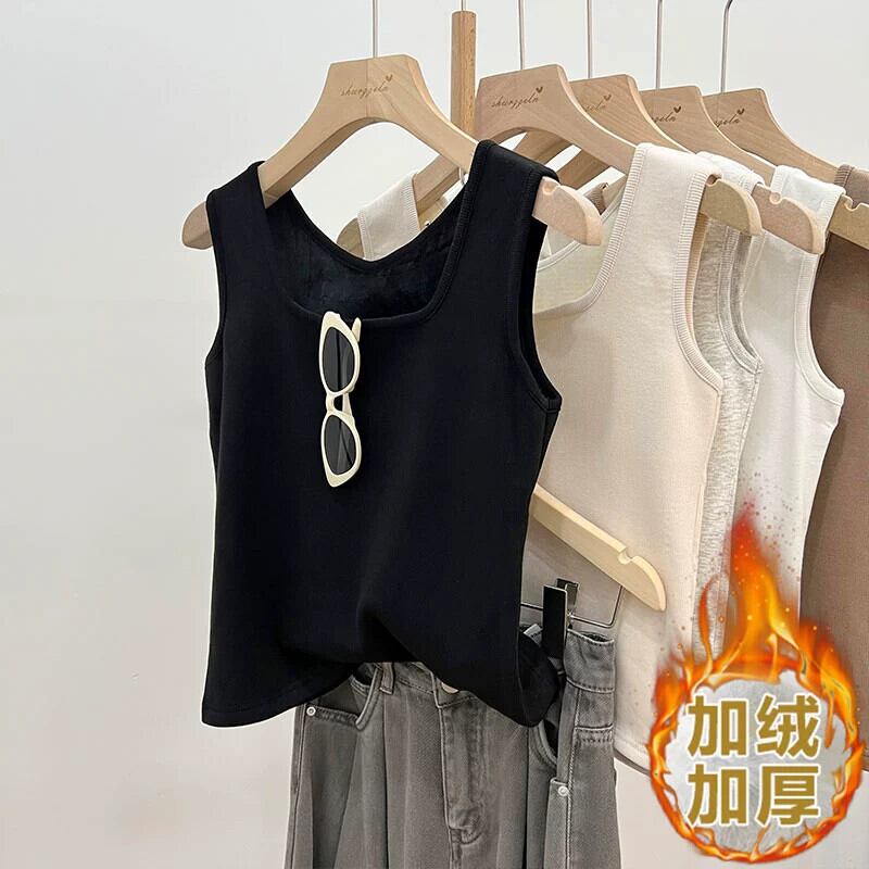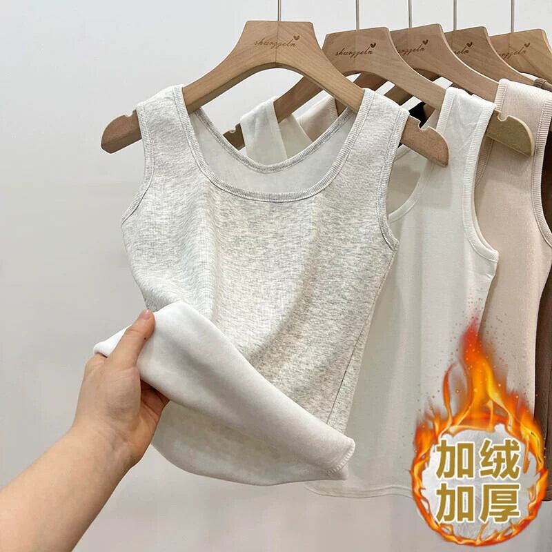 厚いベルベットサーマルベストの女性の秋と冬 2024 新しいシルバーフォックスベルベットサスペンダースリムインナーショートベーストップ オータム 秋物 ウィンター 冬物 銀 7460058408346351 | framboise21