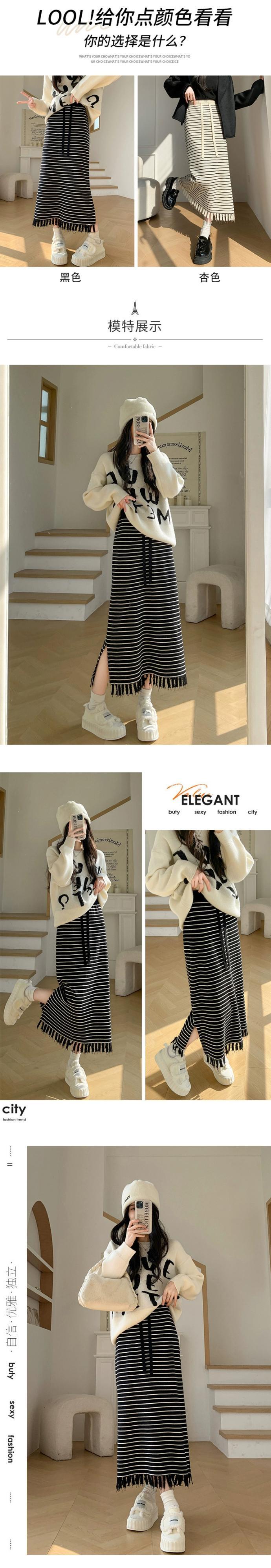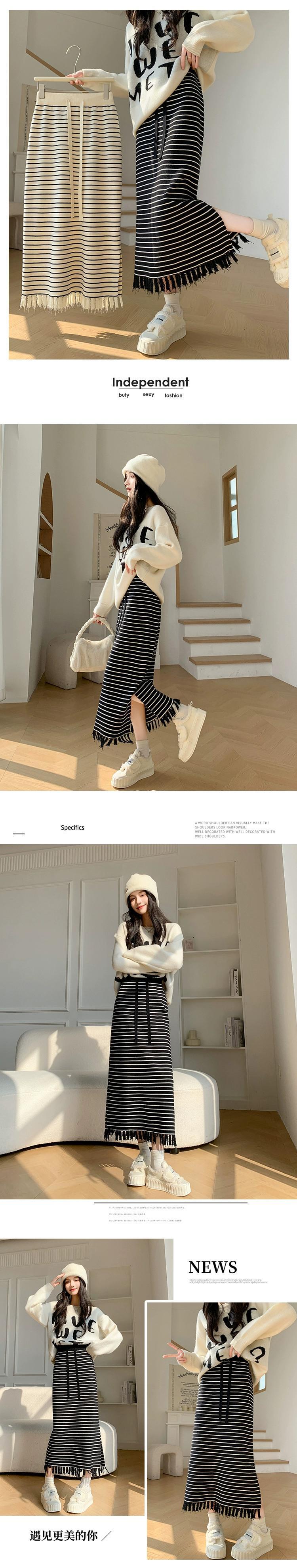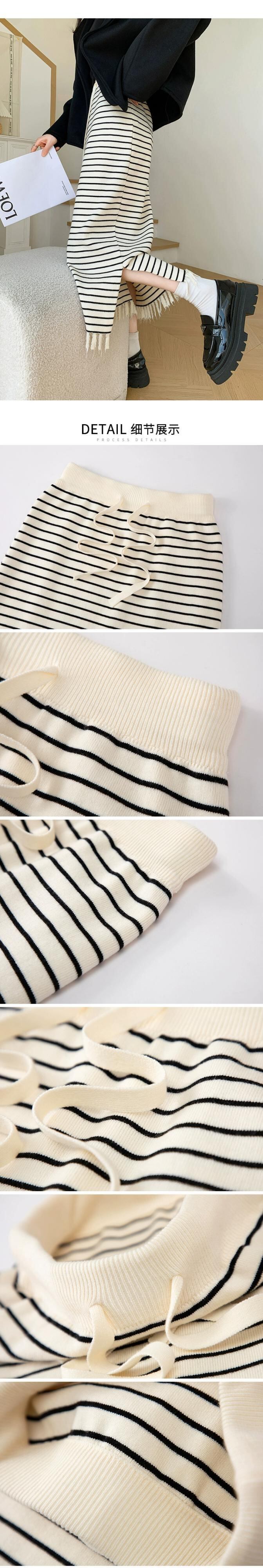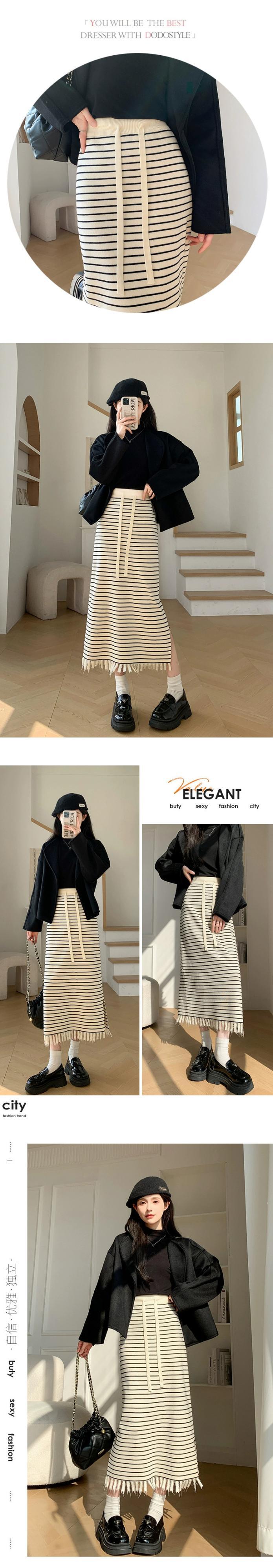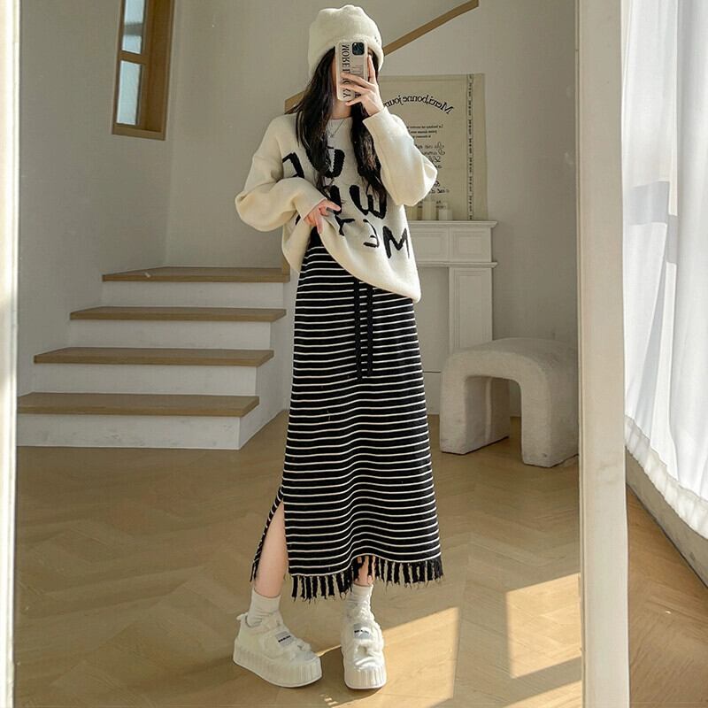 Tel ストライプ ニットスカート レディース 2024 春秋 ウエストスリム ミドル丈 ストレート スリット ヒップスカート スプリング 春物 オータム 秋物 7460073729089278 | framboise21