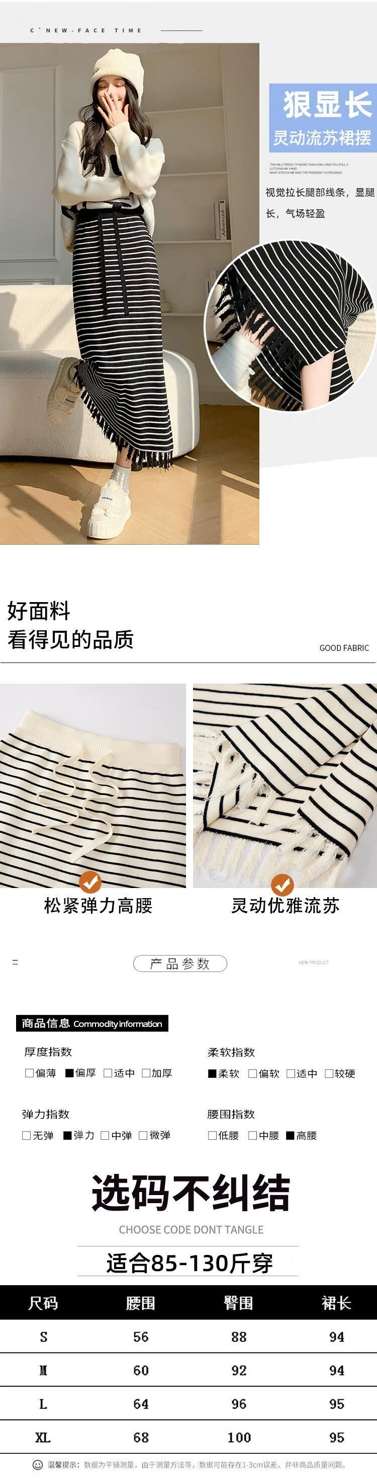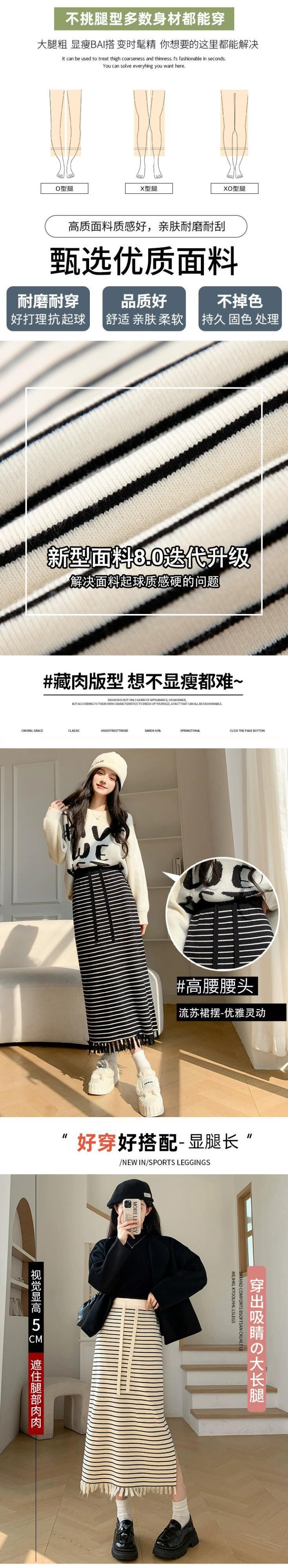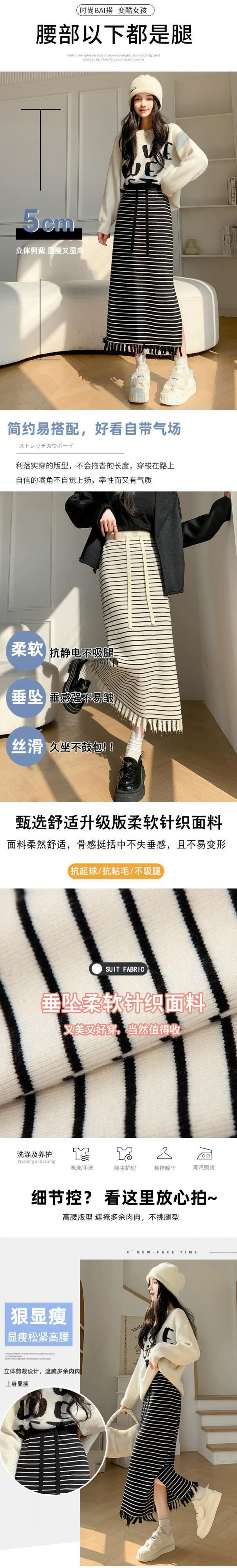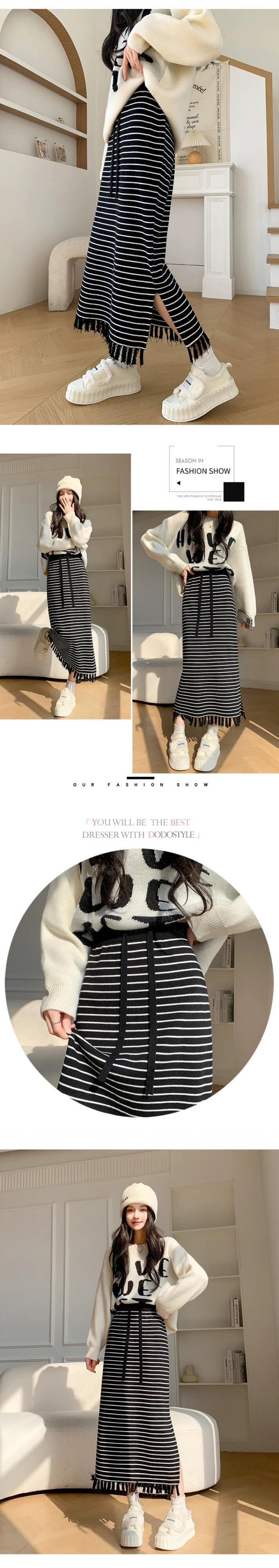 Tel ストライプ ニットスカート レディース 2024 春秋 ウエストスリム ミドル丈 ストレート スリット ヒップスカート スプリング 春物 オータム 秋物 7460073729089278 | framboise21