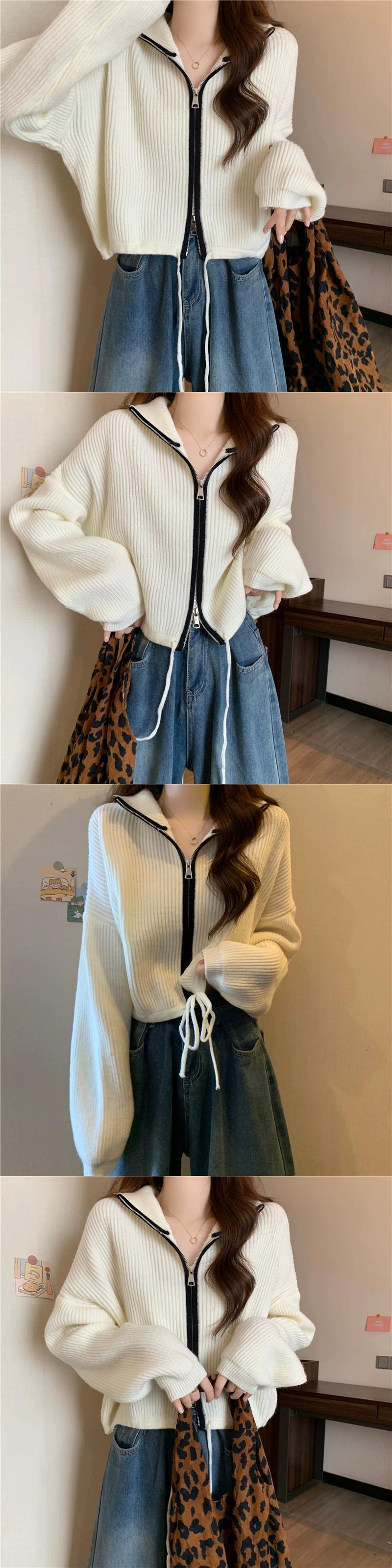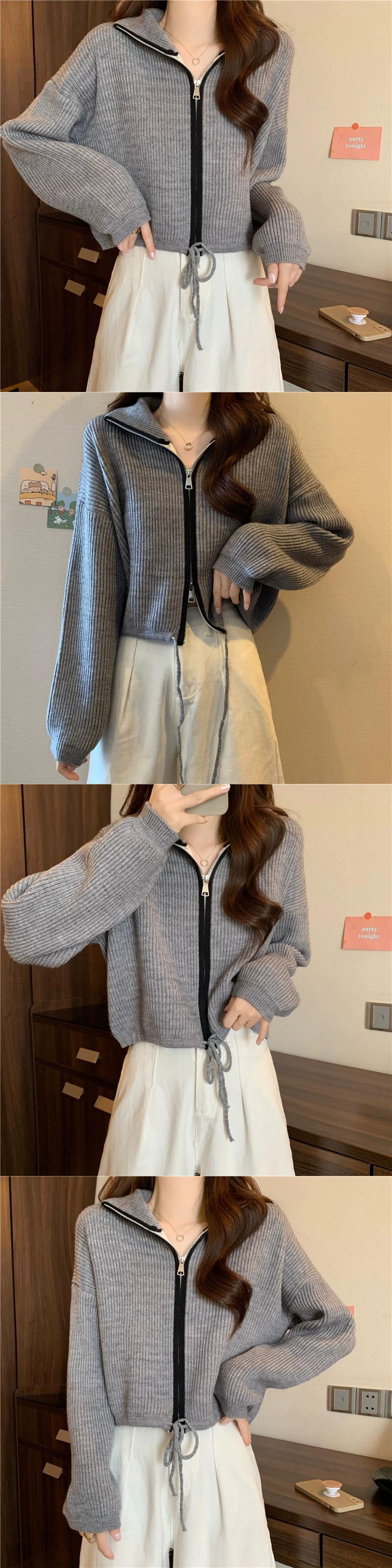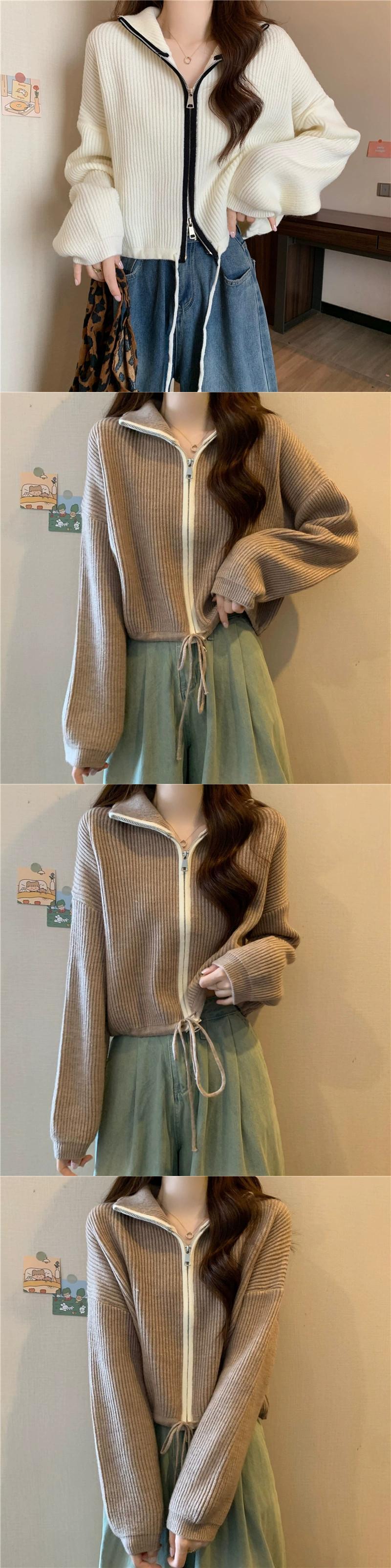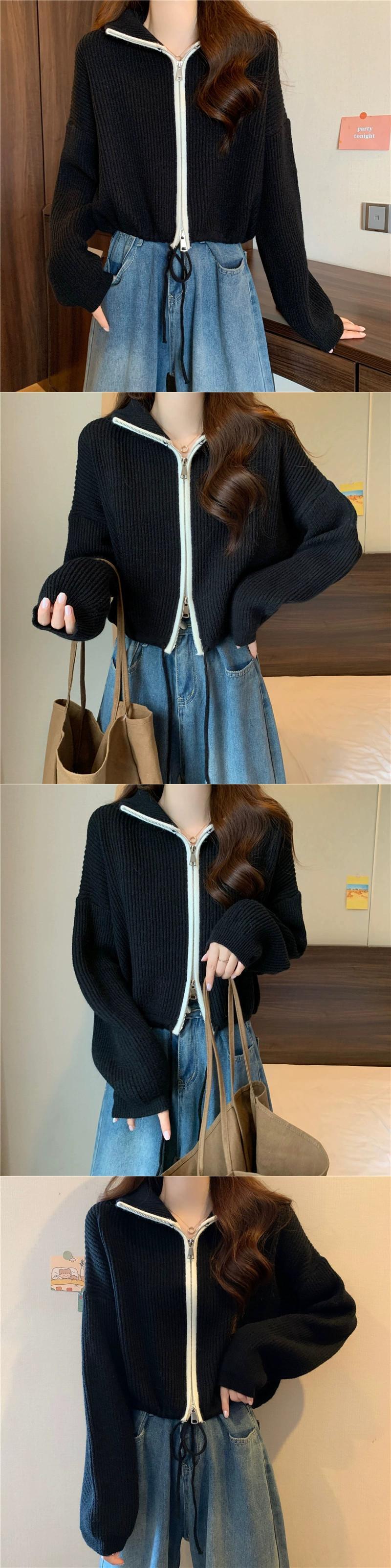 ダブルジッパータートルネックセータージャケット女性の秋と冬 ese スタイルレトロ怠惰なスタイルルーズアウターウェアショートニットカーディガン オータム 秋物 ウィンター 冬物 7460060383408195 | framboise21