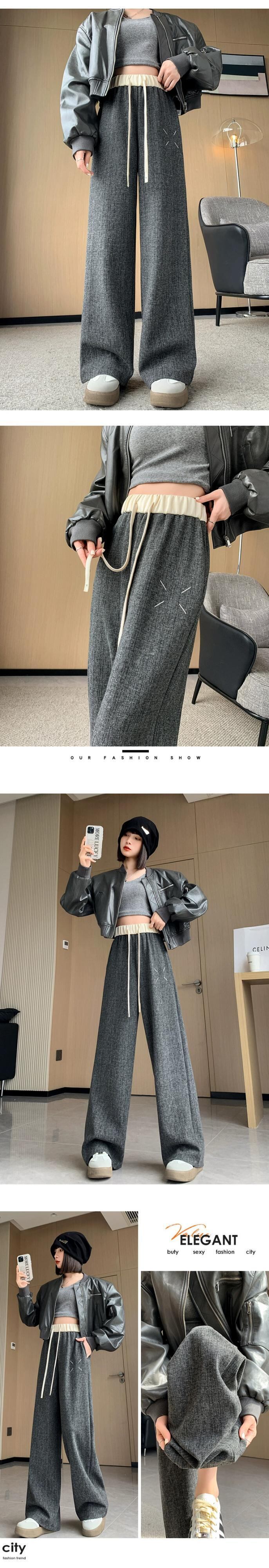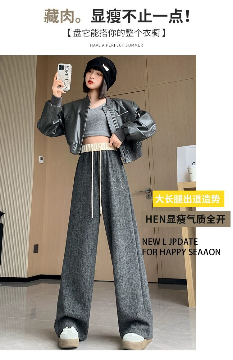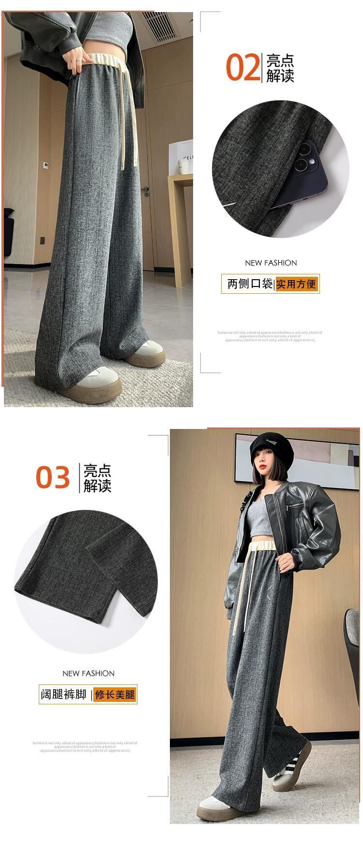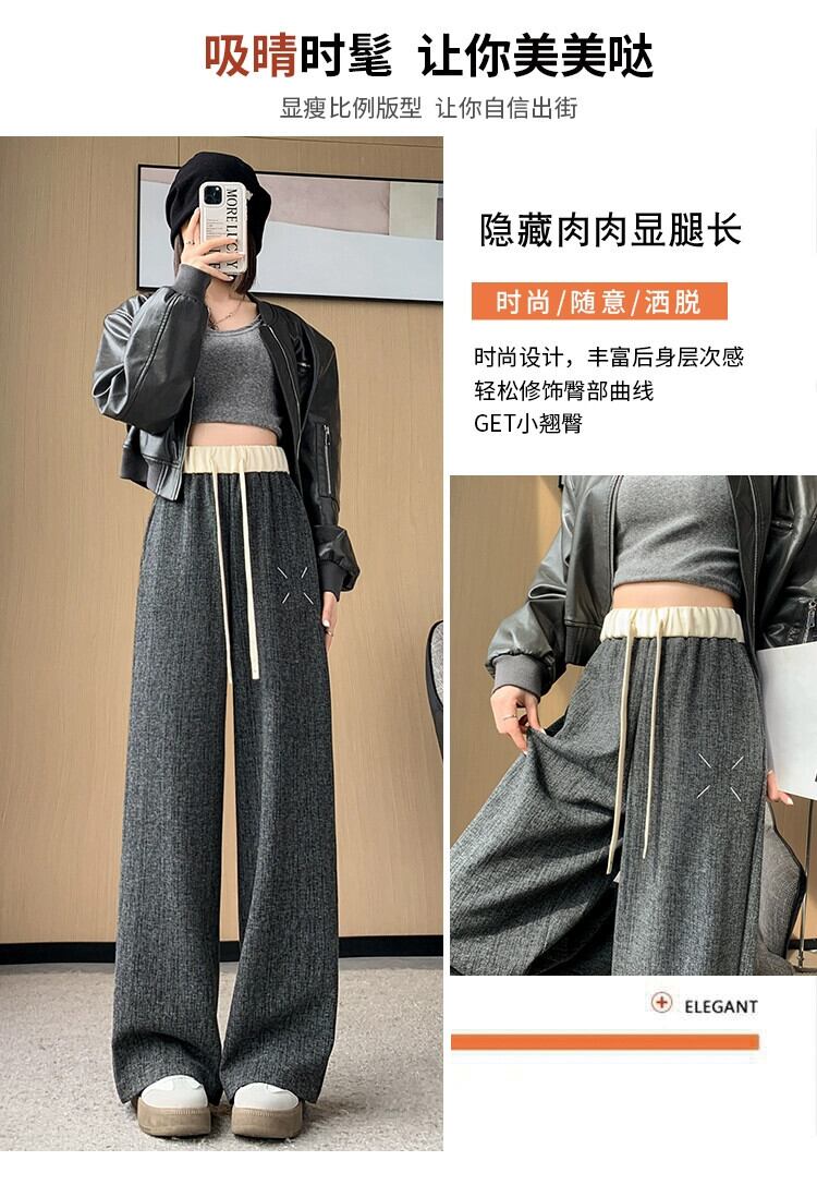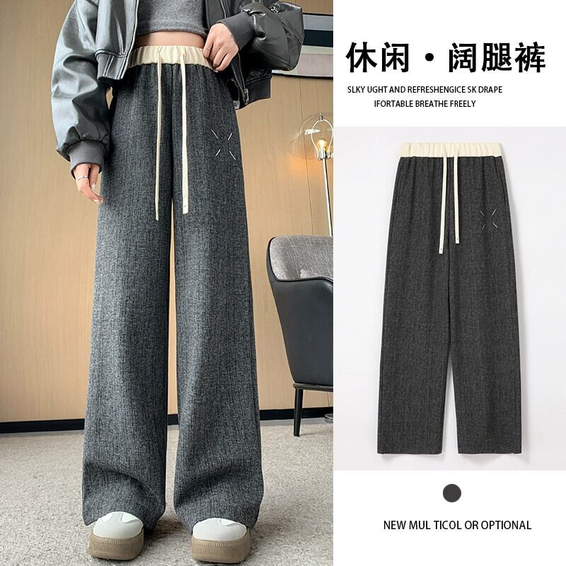 カラーブロック弾性ハイウエストワイドレッグパンツ女性、2024年春と秋の新しいスタイルのルーズスリミングストレートレッグドレープフロアレングスカジュアルパンツ エラスティック 伸縮 スプリング 春物 オータム 秋物 7460033457987117 | framboise21