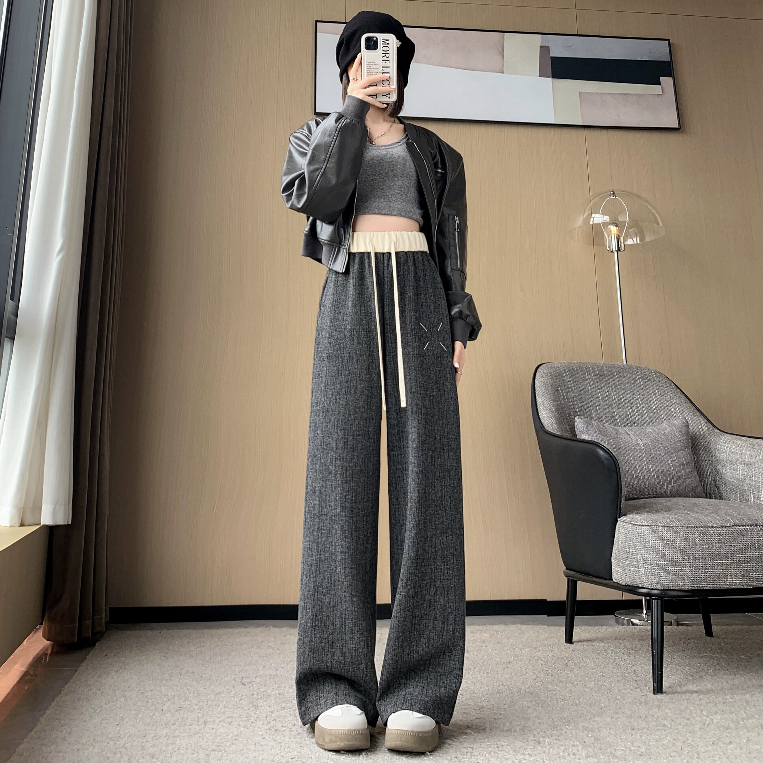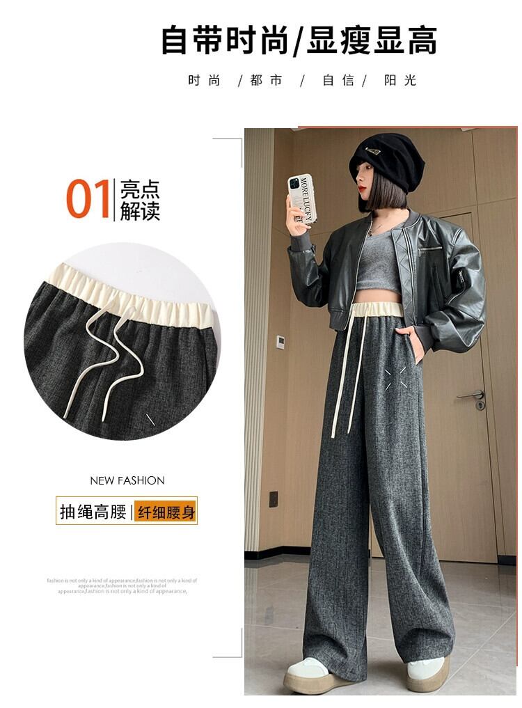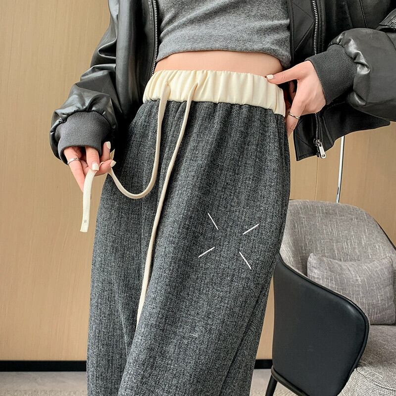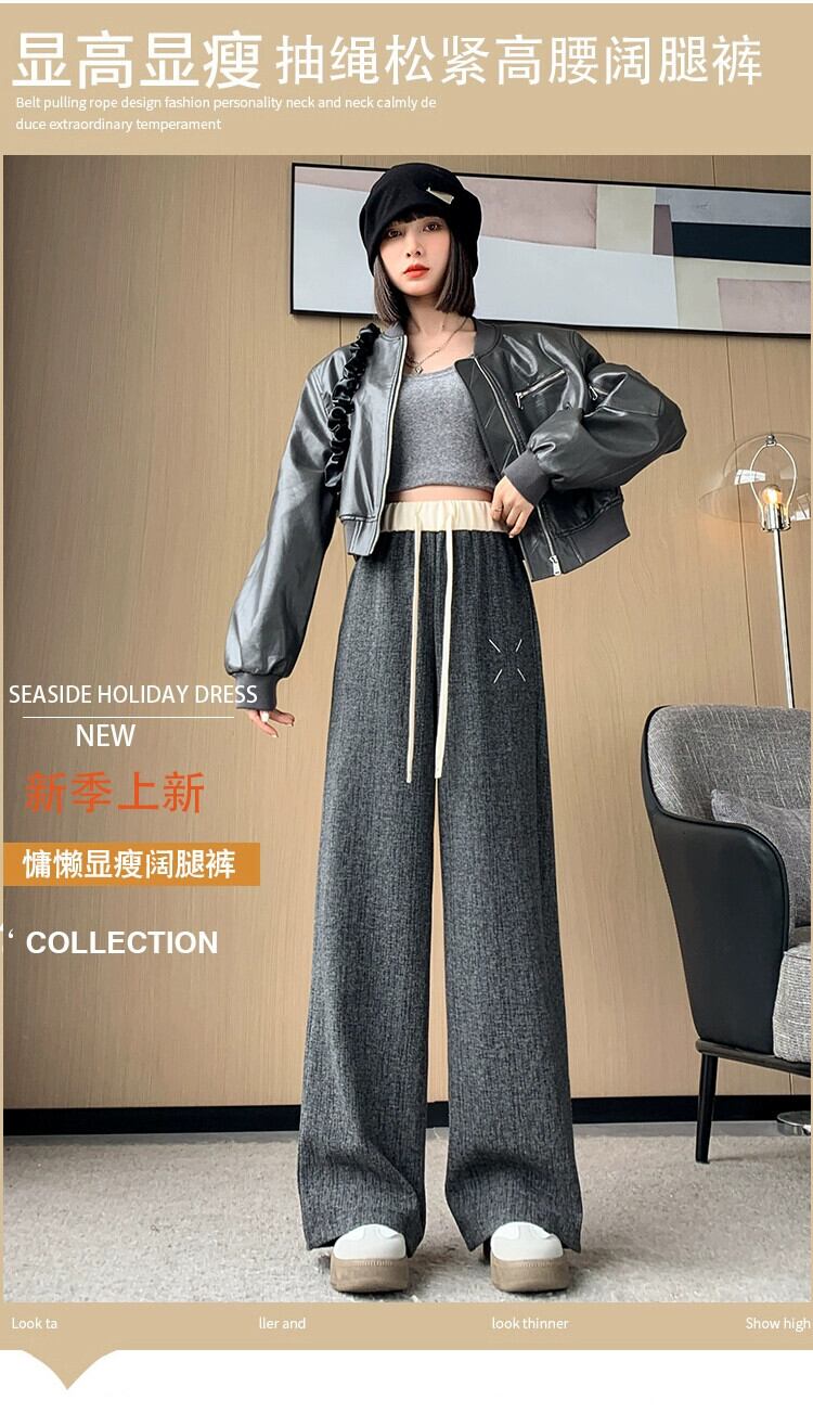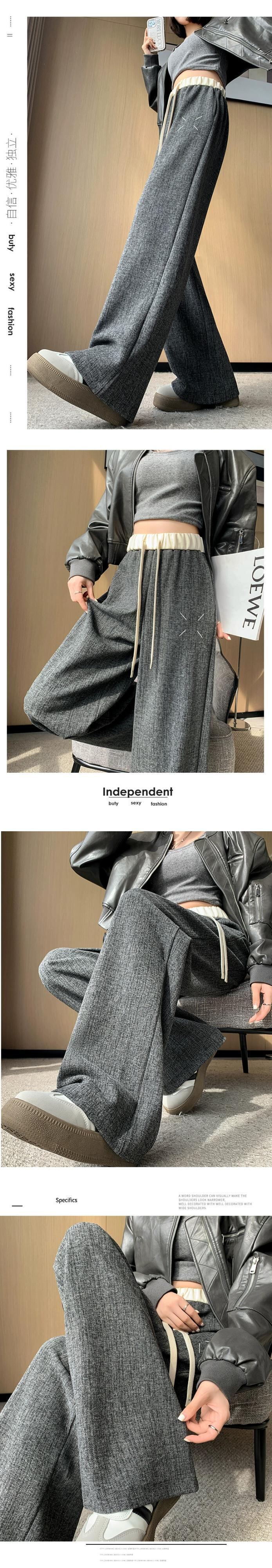 カラーブロック弾性ハイウエストワイドレッグパンツ女性、2024年春と秋の新しいスタイルのルーズスリミングストレートレッグドレープフロアレングスカジュアルパンツ エラスティック 伸縮 スプリング 春物 オータム 秋物 7460033457987117 | framboise21