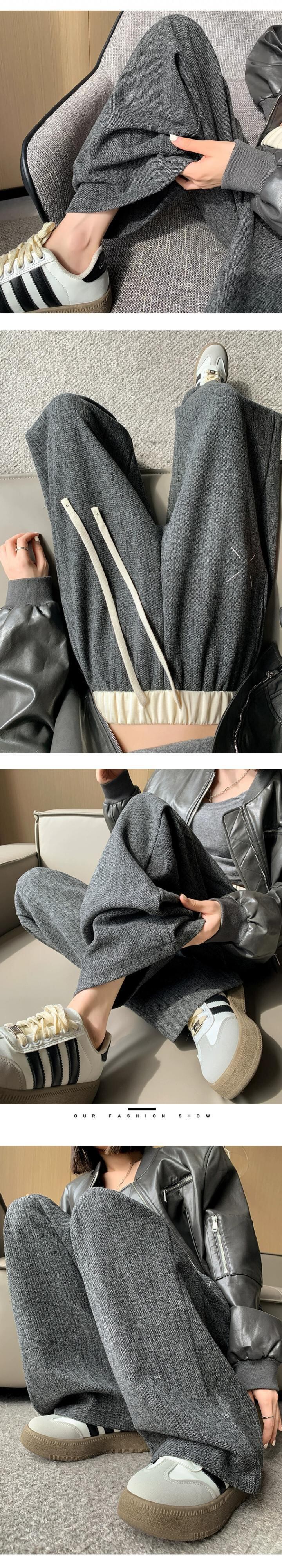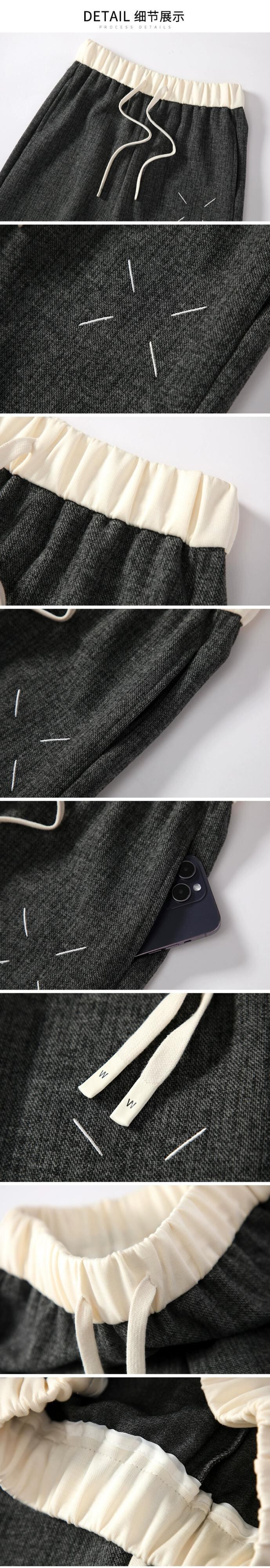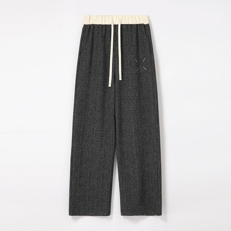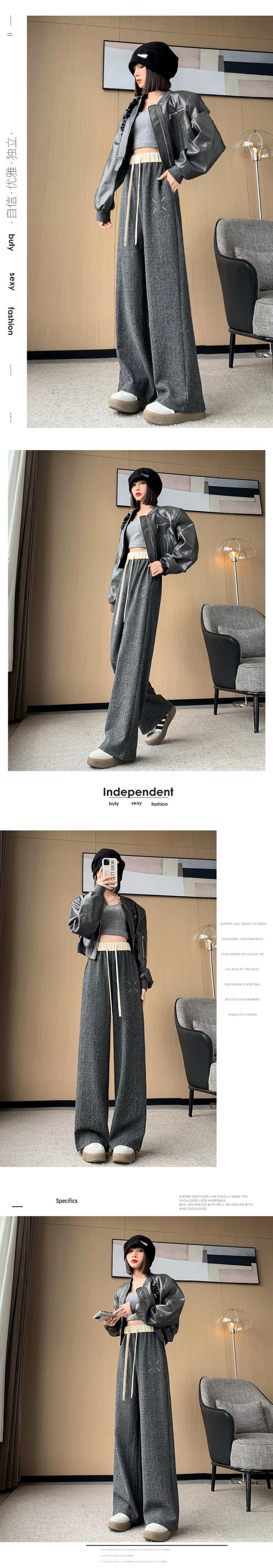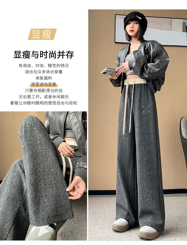 カラーブロック弾性ハイウエストワイドレッグパンツ女性、2024年春と秋の新しいスタイルのルーズスリミングストレートレッグドレープフロアレングスカジュアルパンツ エラスティック 伸縮 スプリング 春物 オータム 秋物 7460033457987117 | framboise21
