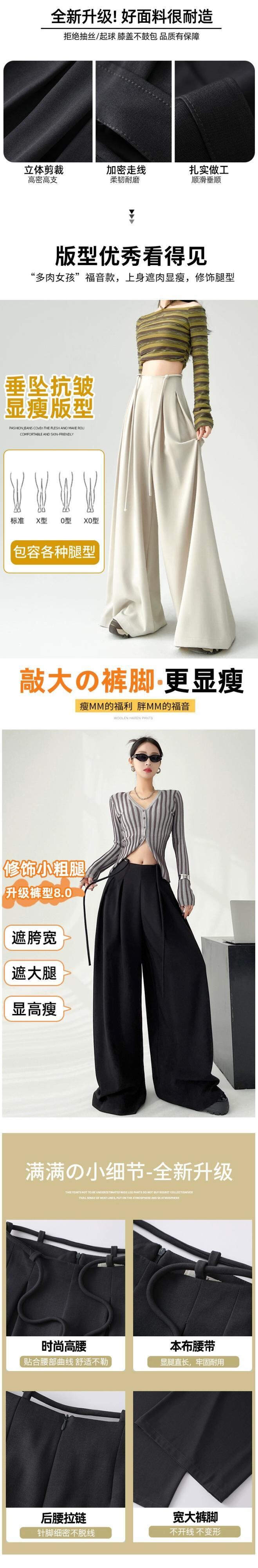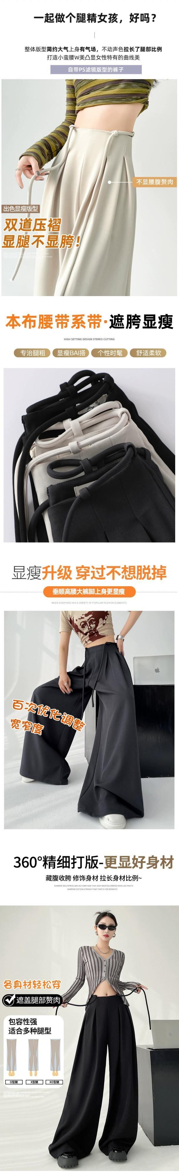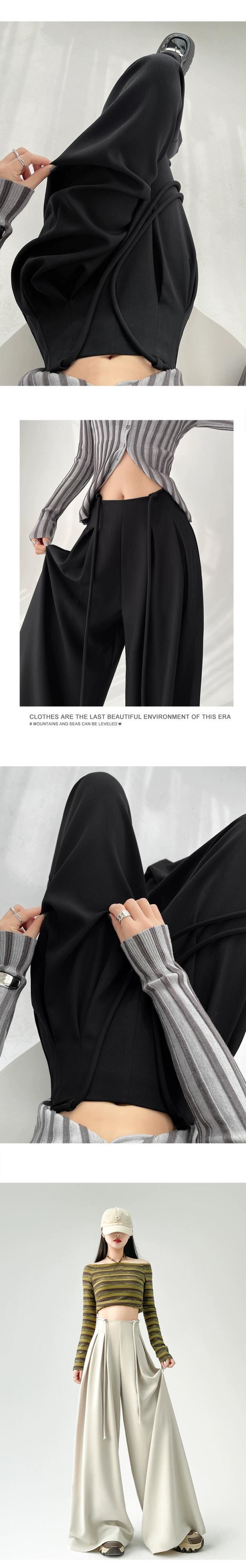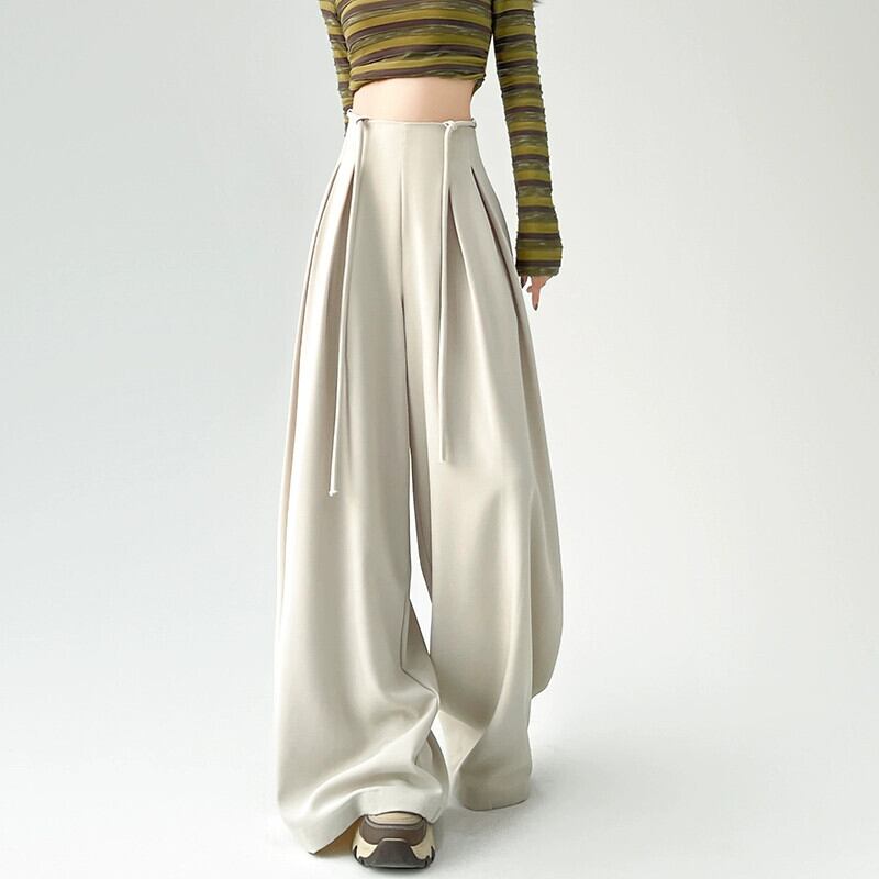 レースアップハイウエストスーツワイドレッグパンツレディース、春と秋の洋ナシ型ボディパンツ、ルーズストレートレッグドレープフロアレングスカジュアルパンツ スプリング 春物 オータム 秋物 7460021104789360 | framboise21