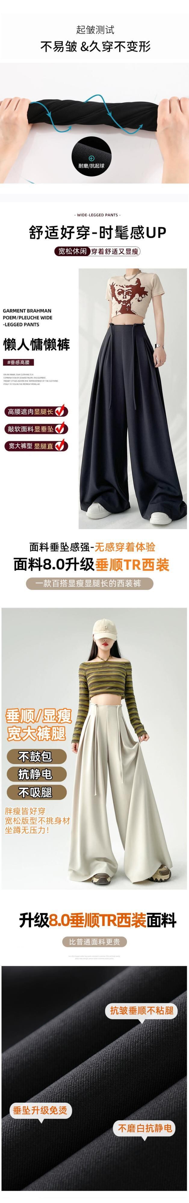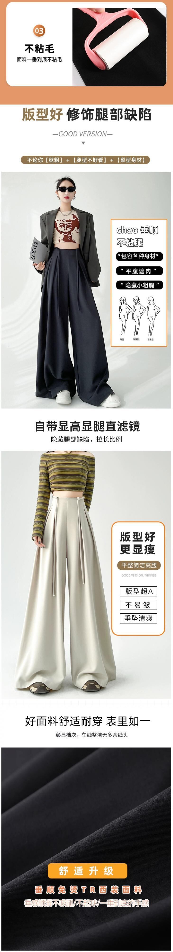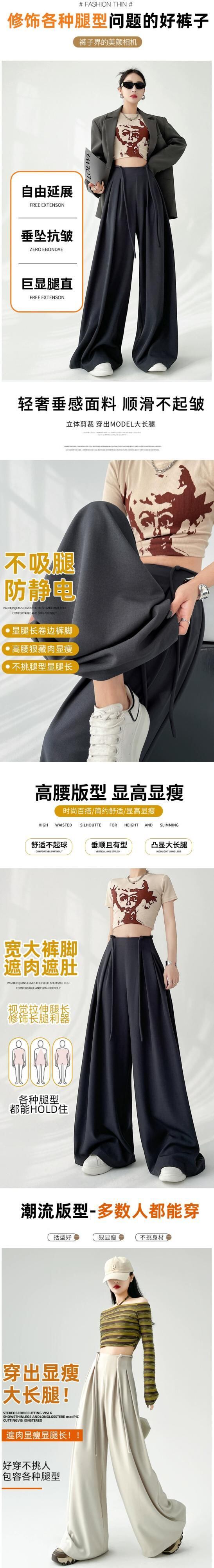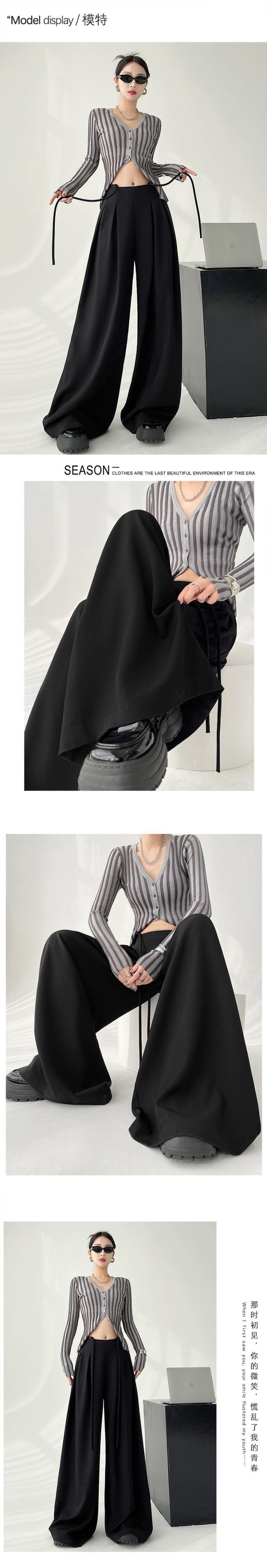 レースアップハイウエストスーツワイドレッグパンツレディース、春と秋の洋ナシ型ボディパンツ、ルーズストレートレッグドレープフロアレングスカジュアルパンツ スプリング 春物 オータム 秋物 7460021104789360 | framboise21