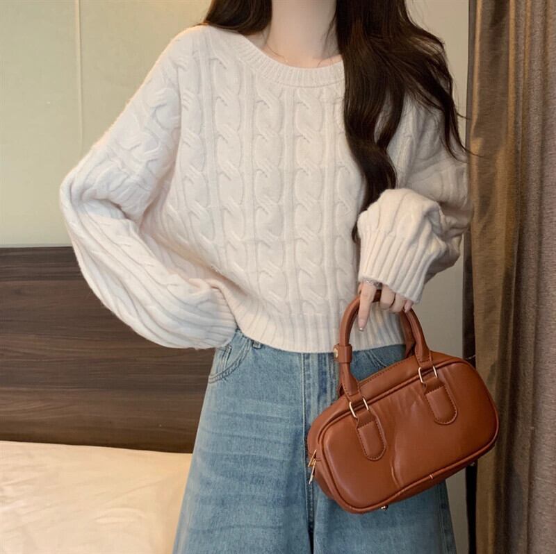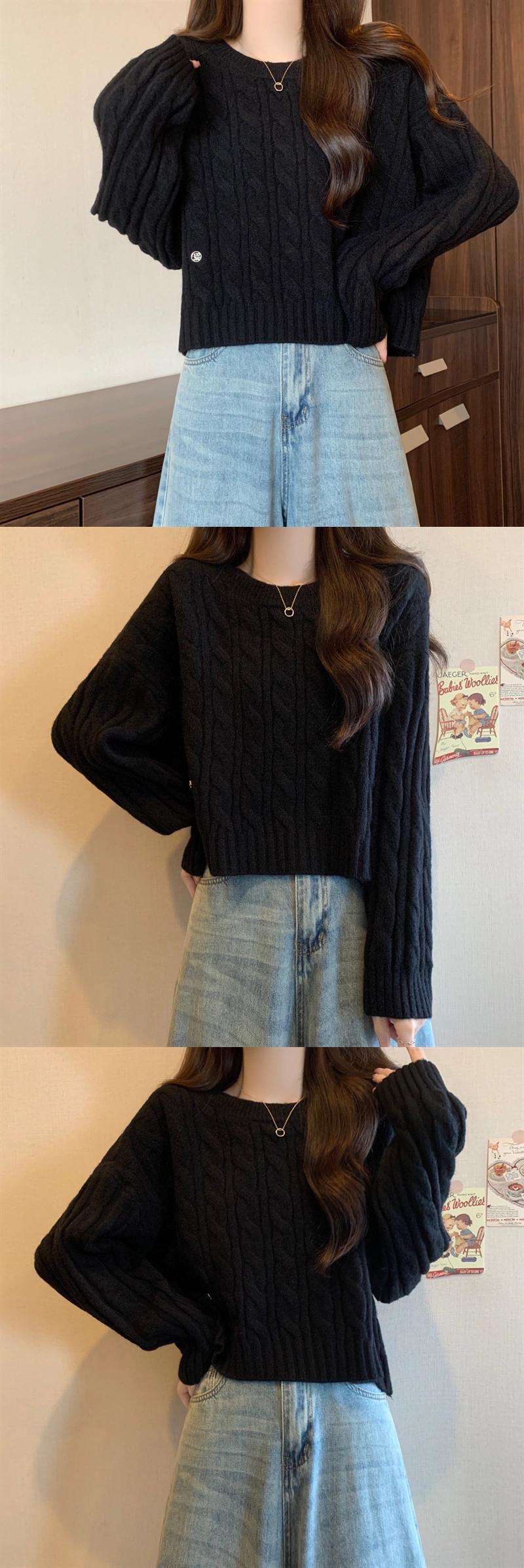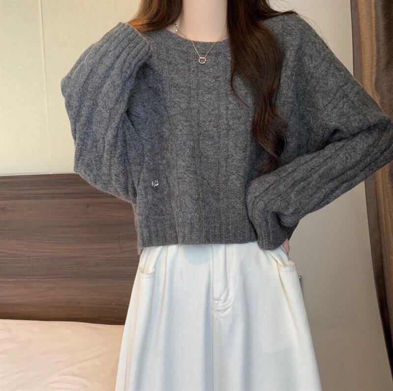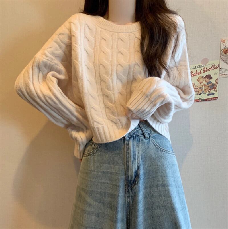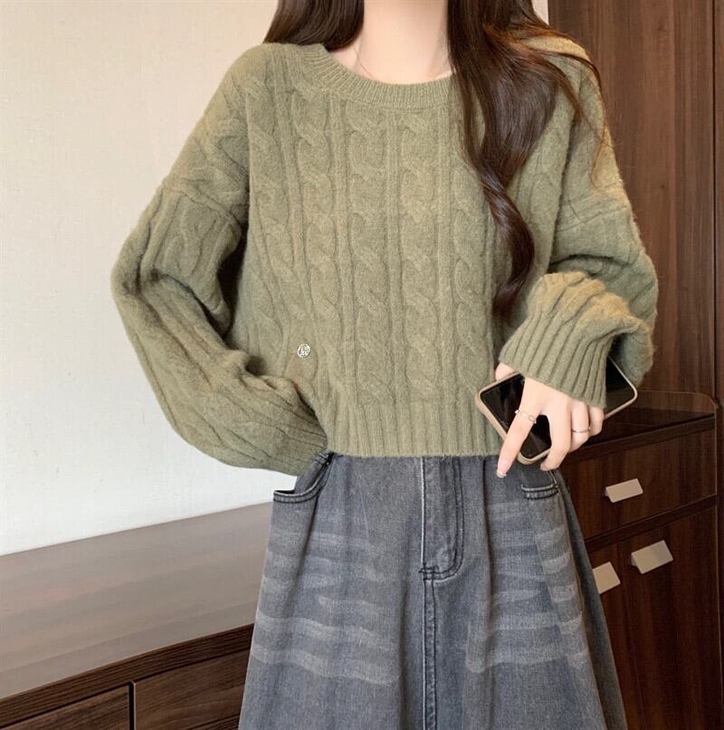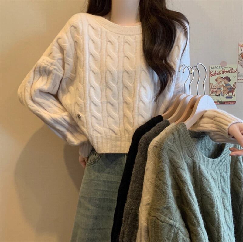 2024 年の冬に人気のショートツイストセーター女性新しい ese レトロアウターウェア怠惰なスタイルのプルオーバーニットトップ ウィンター 冬物 7460047937500906 | framboise21