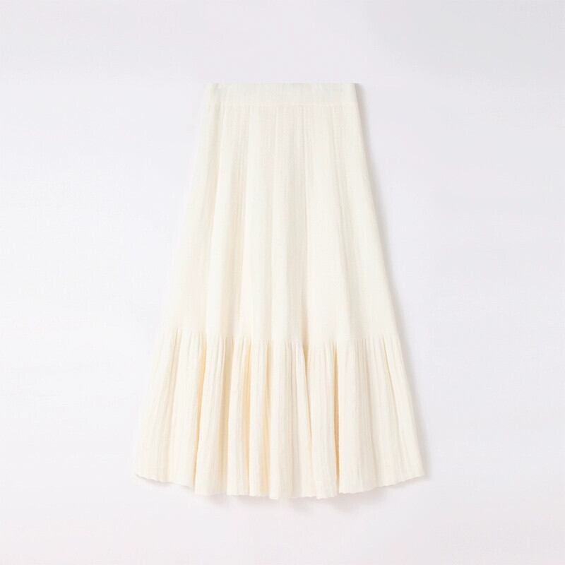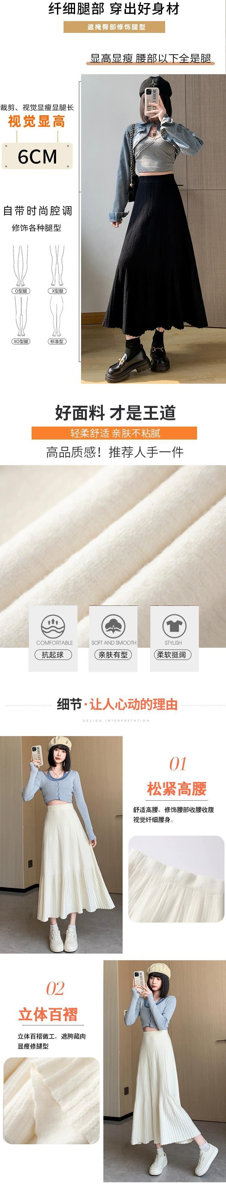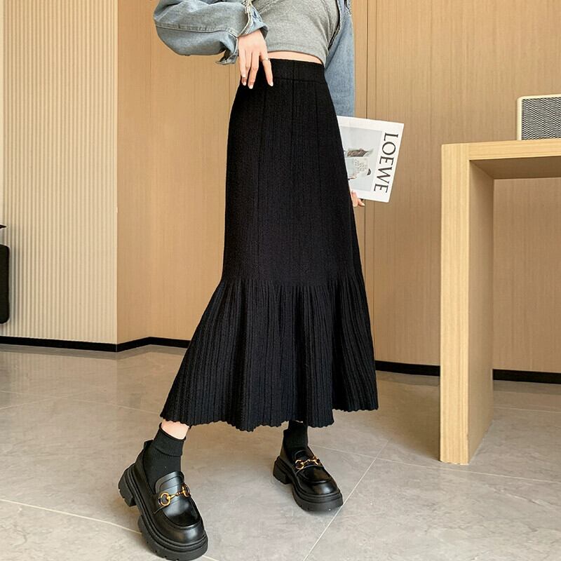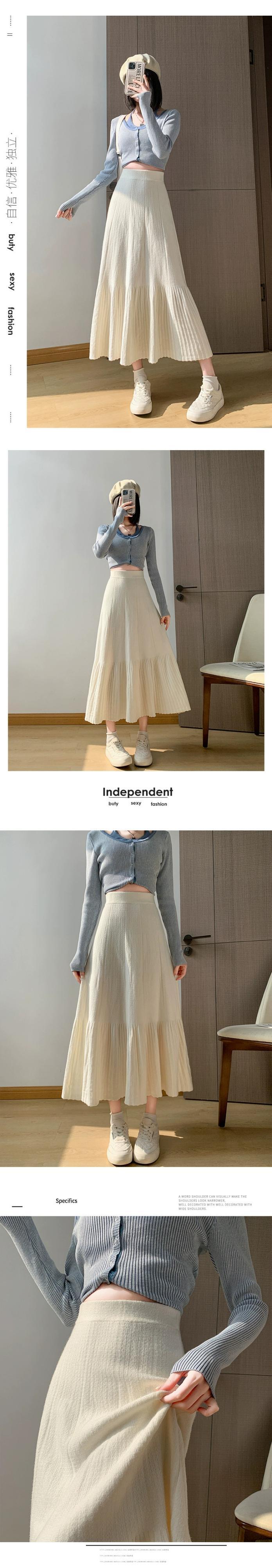 アプリコットニットスカート女性春と秋の新しいプリーツスカートハイウエスト痩身股カバーミッドレングス A ラインスカートと大きな裾 ハイウェスト スプリング 春物 オータム 秋物 Aライン 7460073435462558 | framboise21