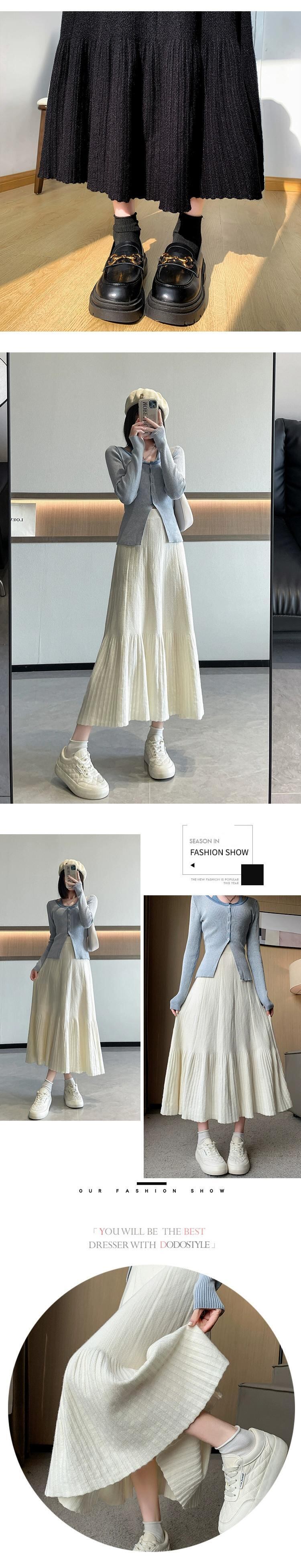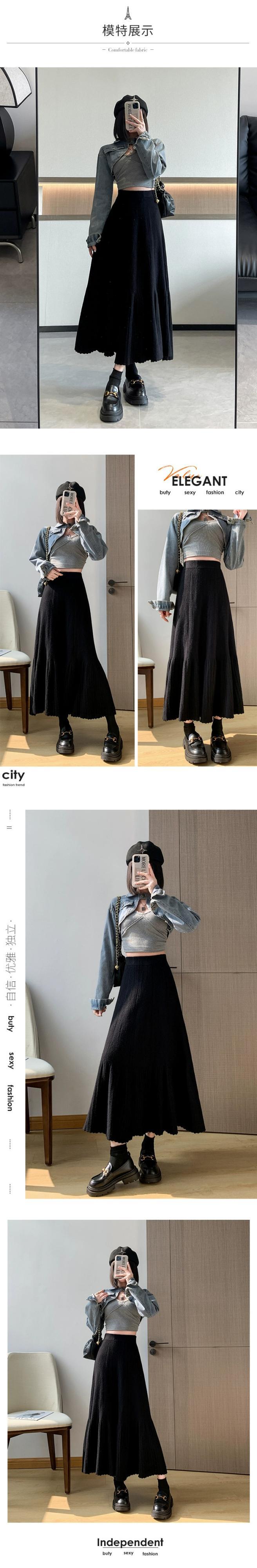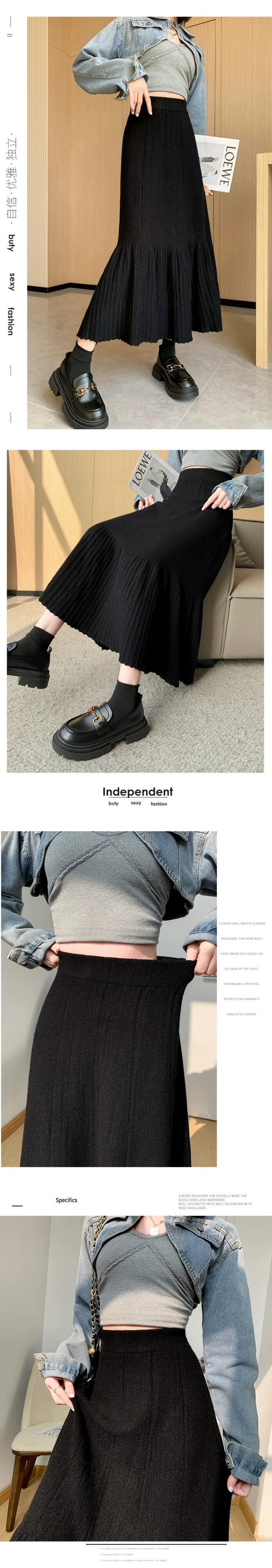 アプリコットニットスカート女性春と秋の新しいプリーツスカートハイウエスト痩身股カバーミッドレングス A ラインスカートと大きな裾 ハイウェスト スプリング 春物 オータム 秋物 Aライン 7460073435462558 | framboise21