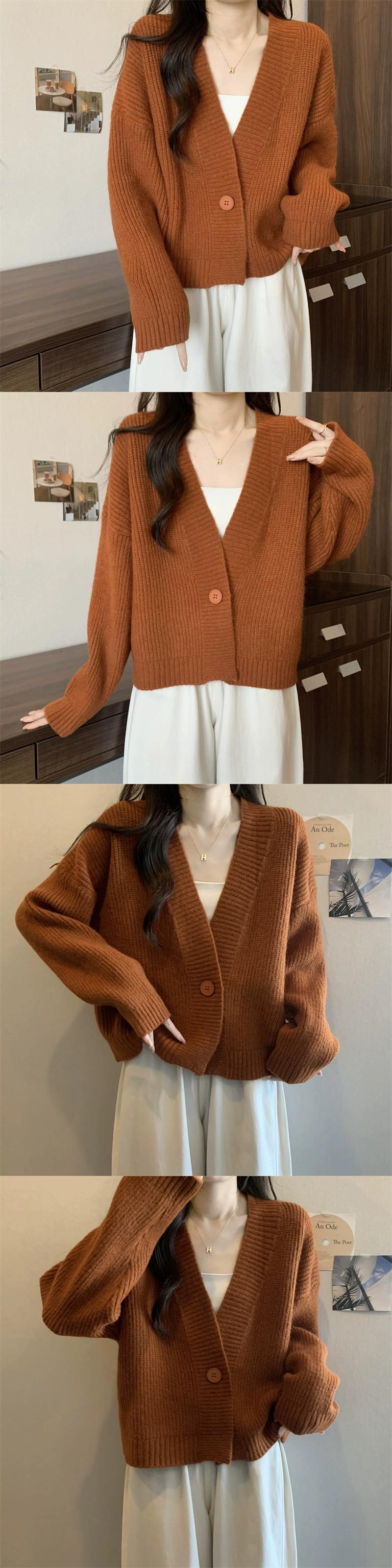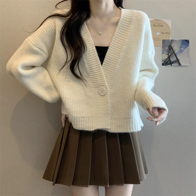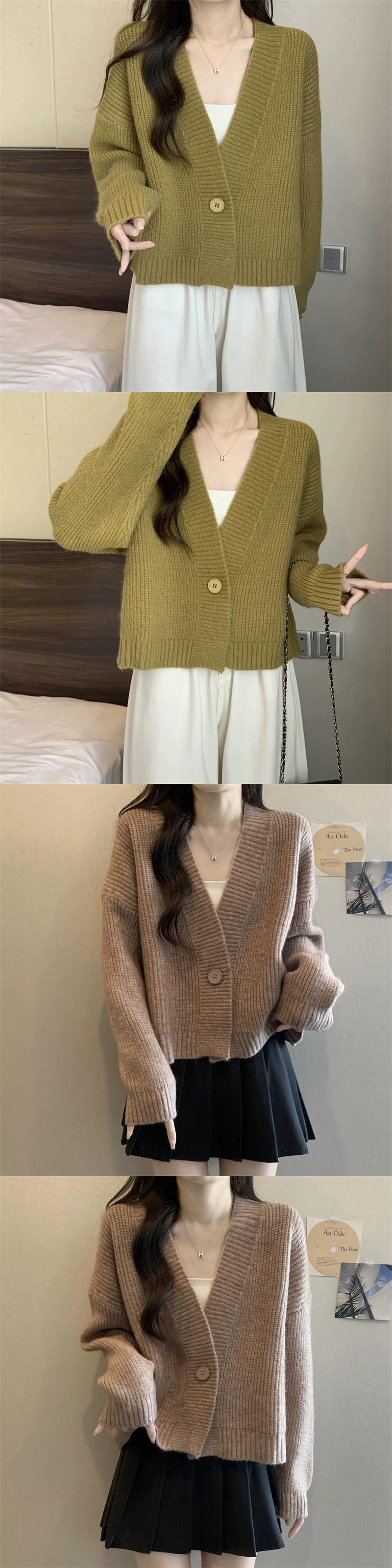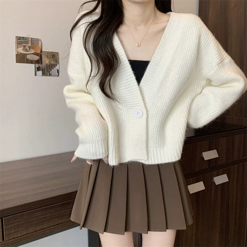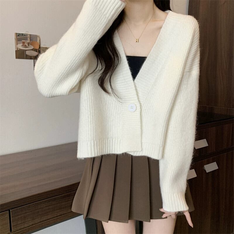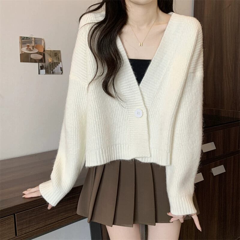 -ウエストショートセーターカーディガンコート女性秋と冬のファッションルーズアウターウェア怠惰なスタイル肥厚Vネックセーター オータム 秋物 ウィンター 冬物 7460050906321704 | framboise21