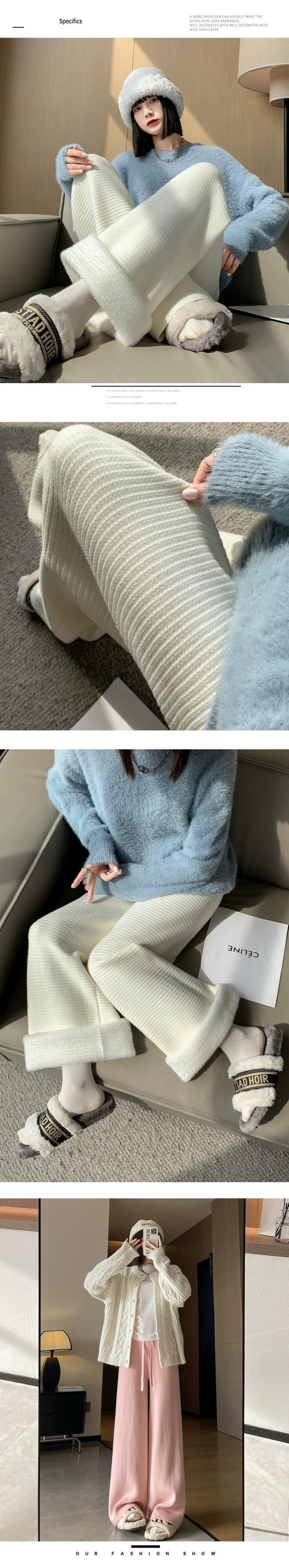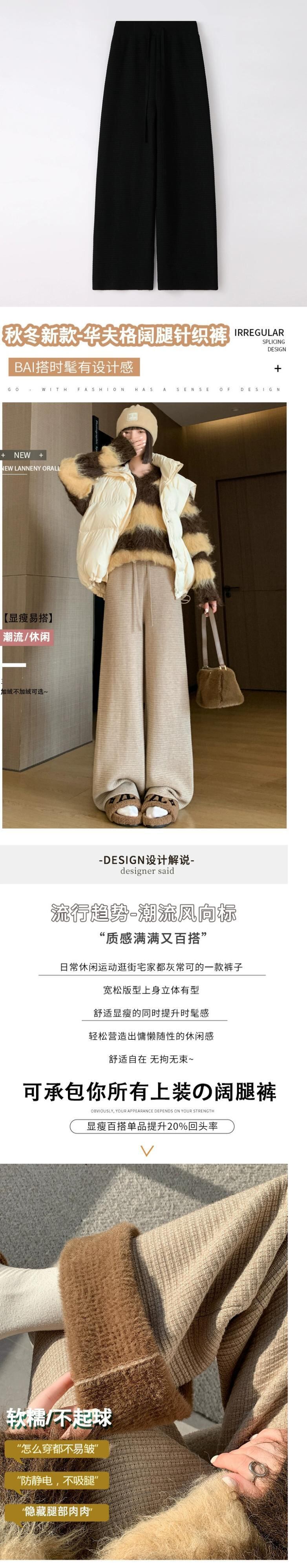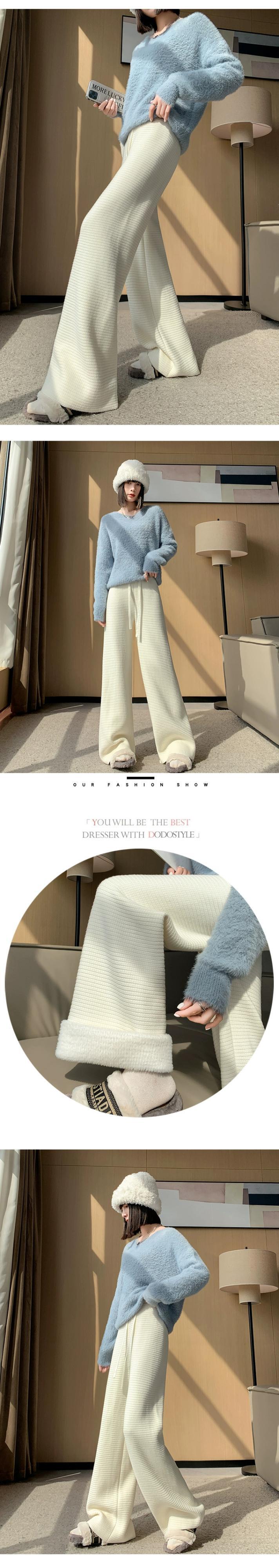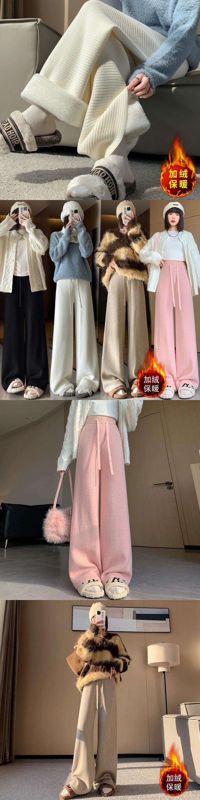 肥厚とベルベットのニットパンツの女性の冬の新しいスタイルソフトワックスタオルワイドレッグパンツハイウエストドレープ床モップカジュアルパンツ女性 ハイウェスト ウィンター 冬物 ワイドパンツ 7460029119783014 | framboise21