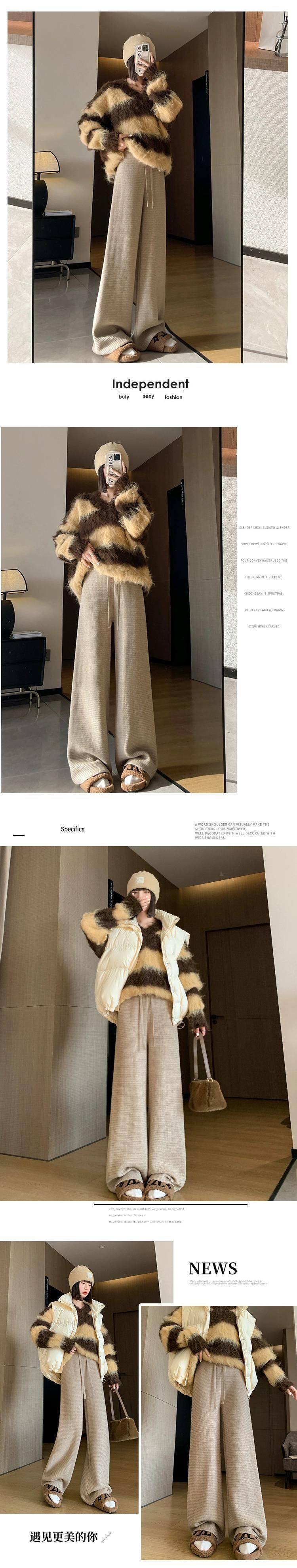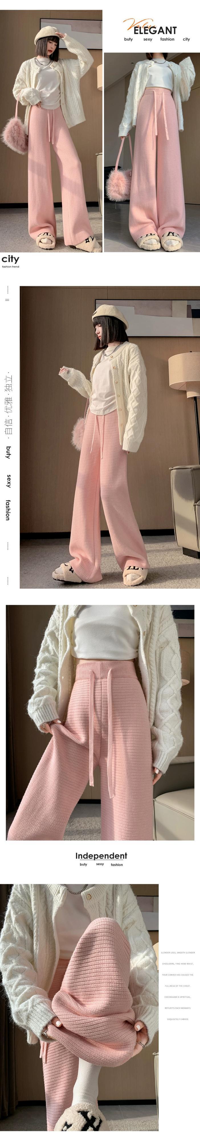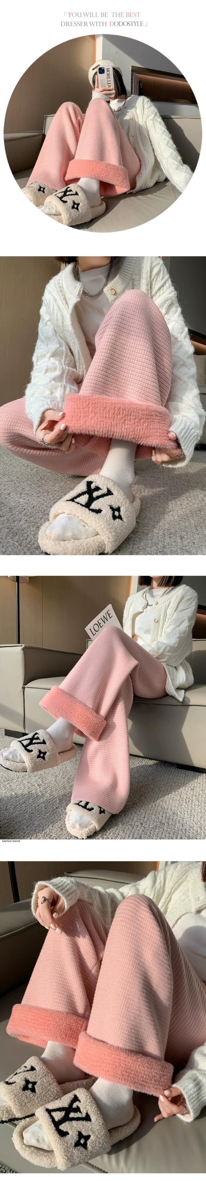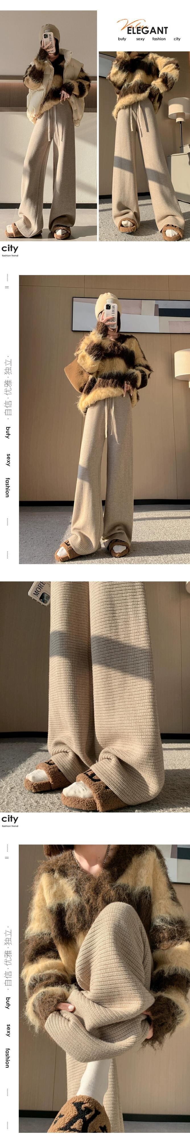 肥厚とベルベットのニットパンツの女性の冬の新しいスタイルソフトワックスタオルワイドレッグパンツハイウエストドレープ床モップカジュアルパンツ女性 ハイウェスト ウィンター 冬物 ワイドパンツ 7460029119783014 | framboise21