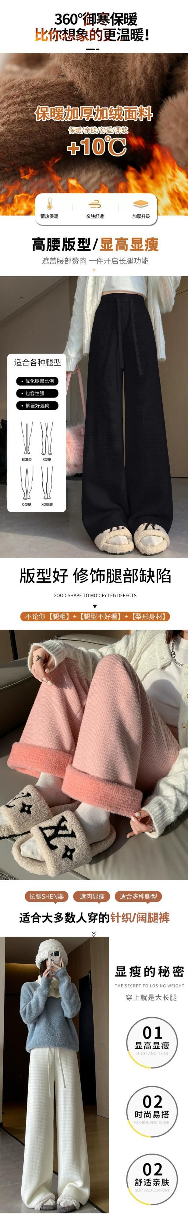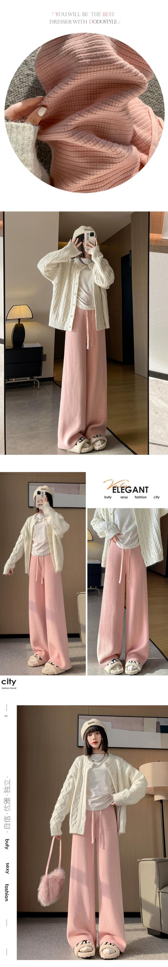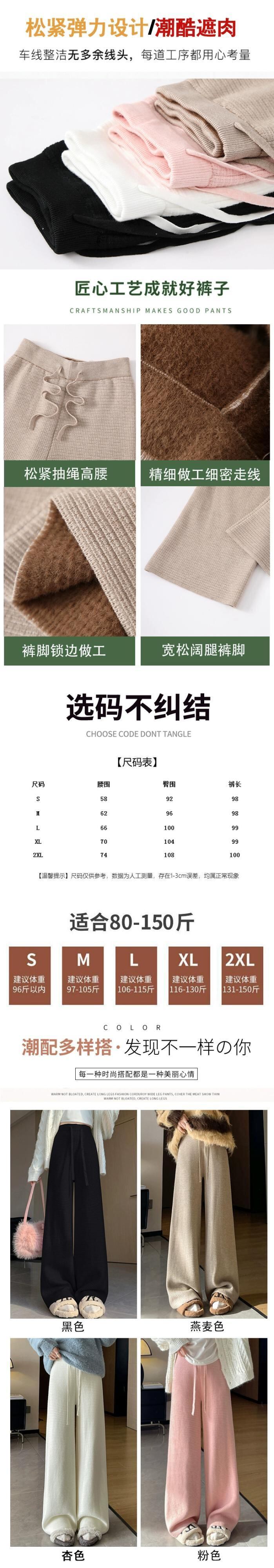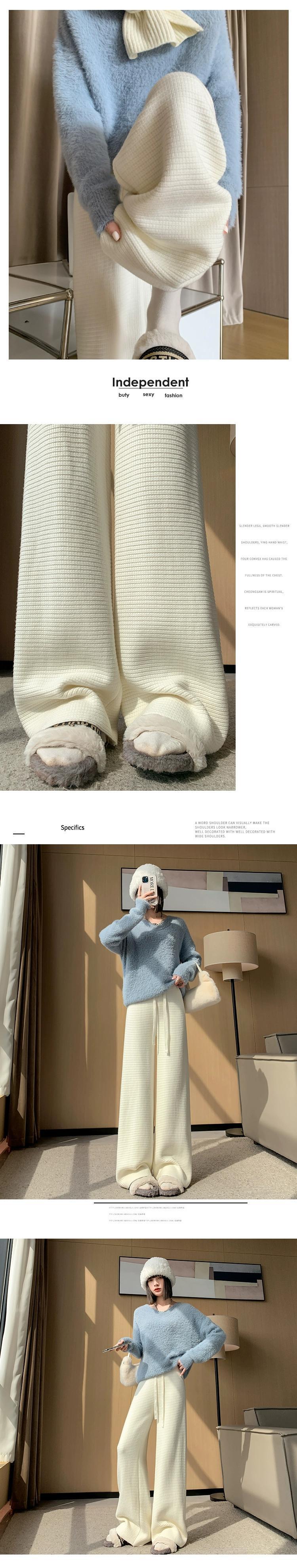 肥厚とベルベットのニットパンツの女性の冬の新しいスタイルソフトワックスタオルワイドレッグパンツハイウエストドレープ床モップカジュアルパンツ女性 ハイウェスト ウィンター 冬物 ワイドパンツ 7460029119783014 | framboise21