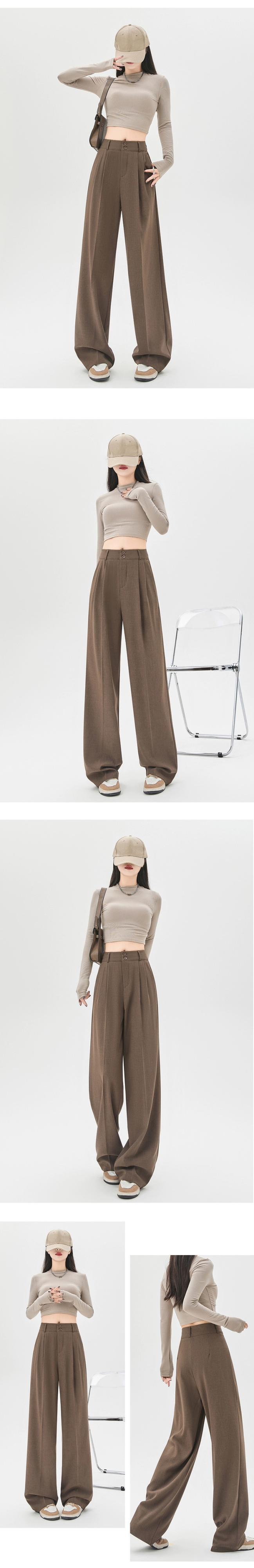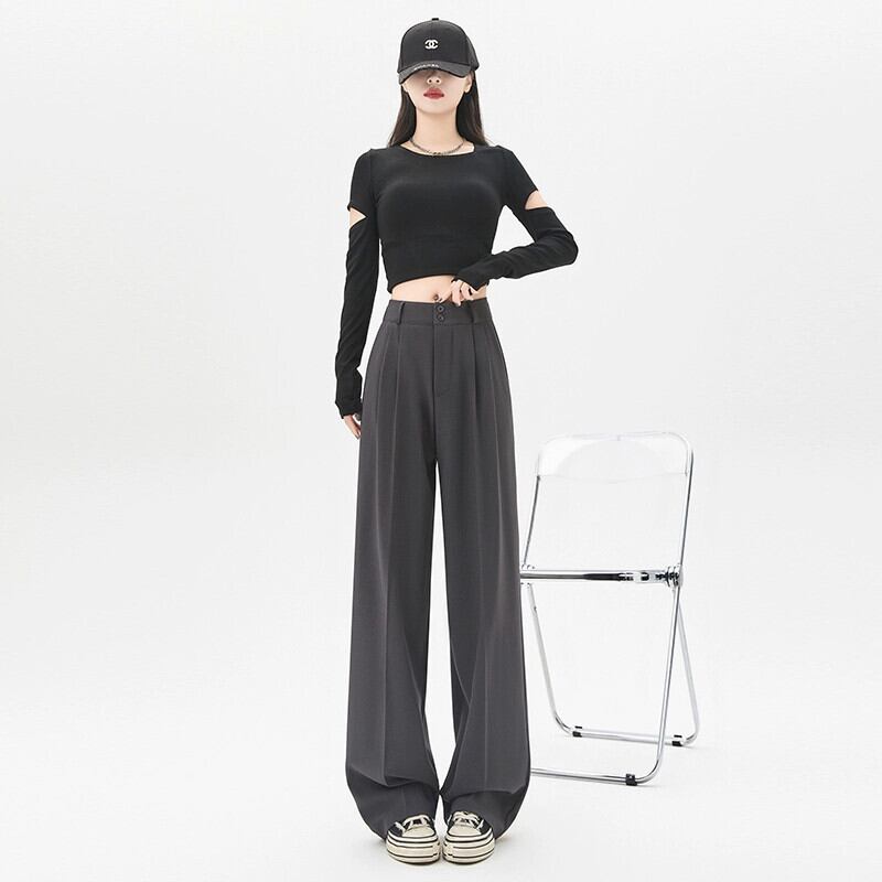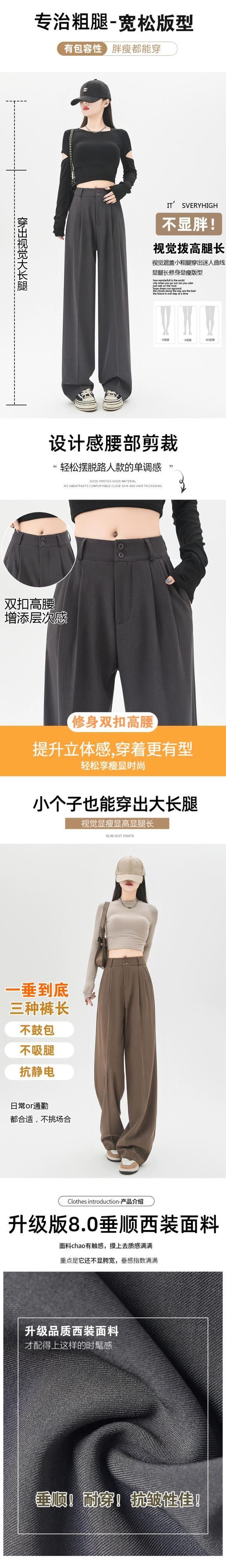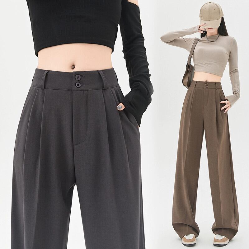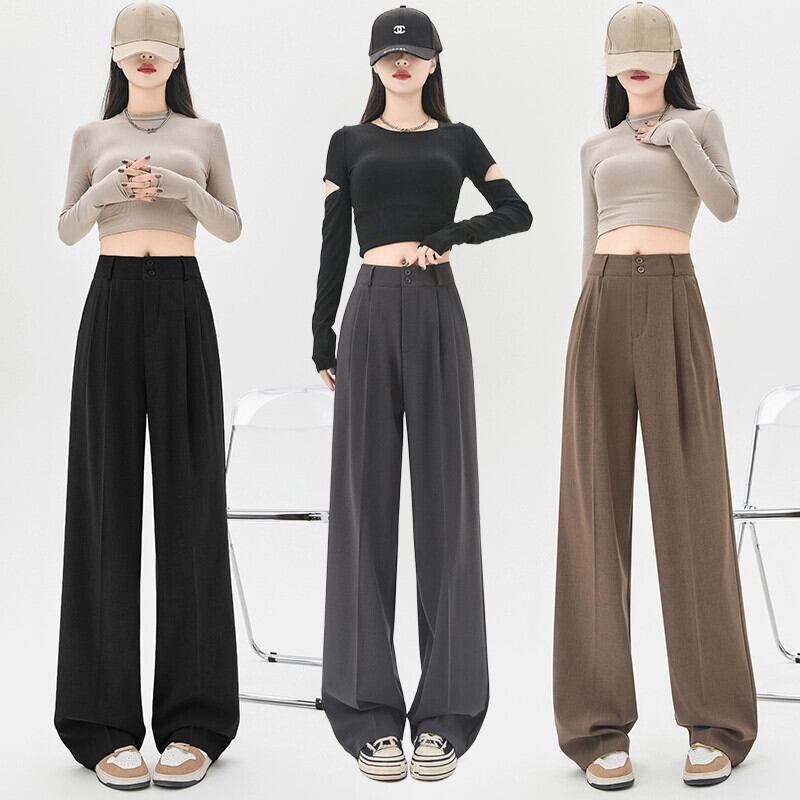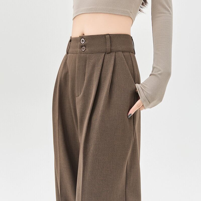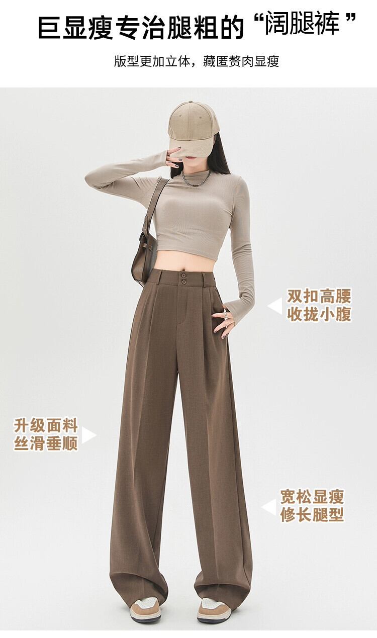 カーキストレートスーツパンツ女性、2024春と秋の新しいスタイルのハイエンドドレープフロアレングスカジュアルハイウエストワイドレッグパンツ スプリング 春物 オータム 秋物 7460066593006538 | framboise21