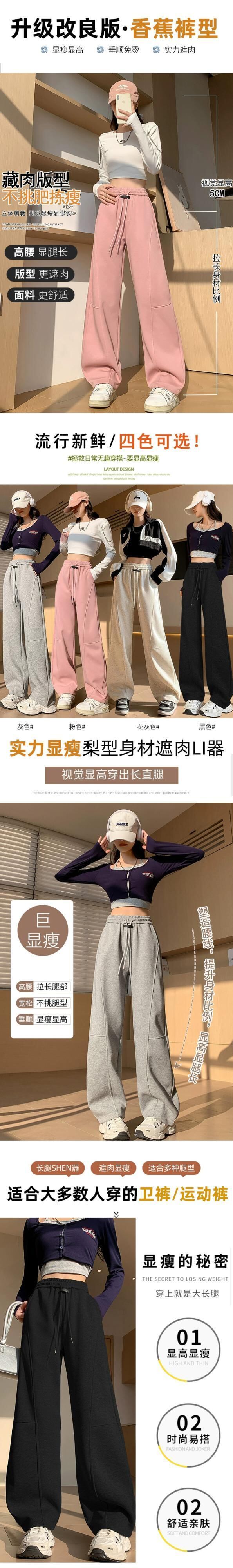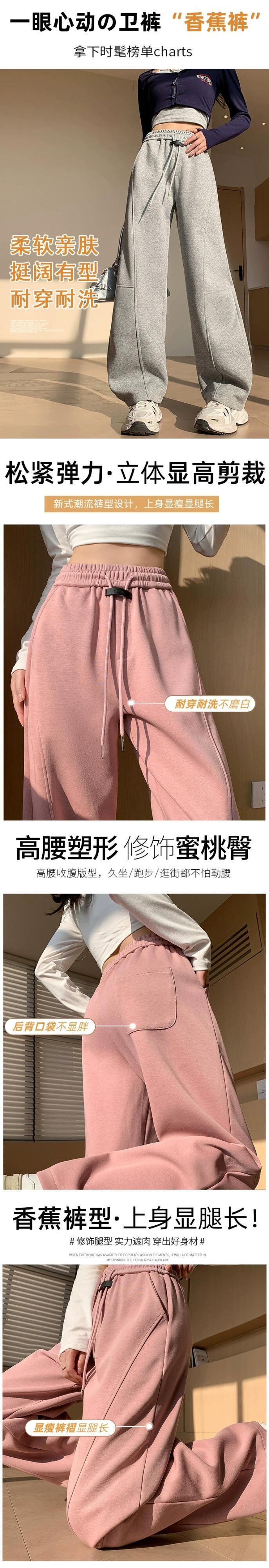 グレーのストレートスポーツパンツの女性春と秋の人気のバナナパンツ鎌パンツルーズカジュアルハイウエストドレープワイドレッグパンツ ハイウェスト スプリング 春物 オータム 秋物 ワイドパンツ 7460061883469031 | framboise21