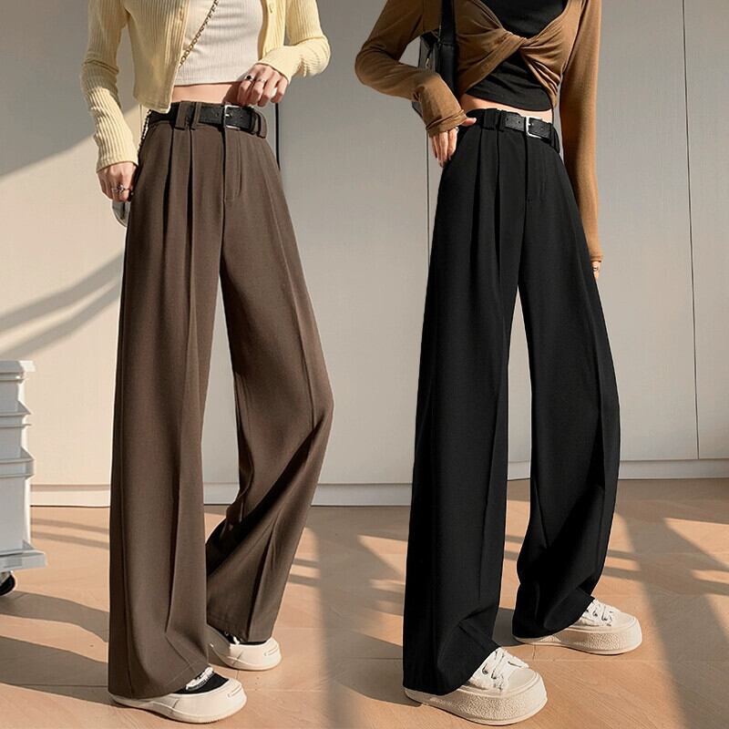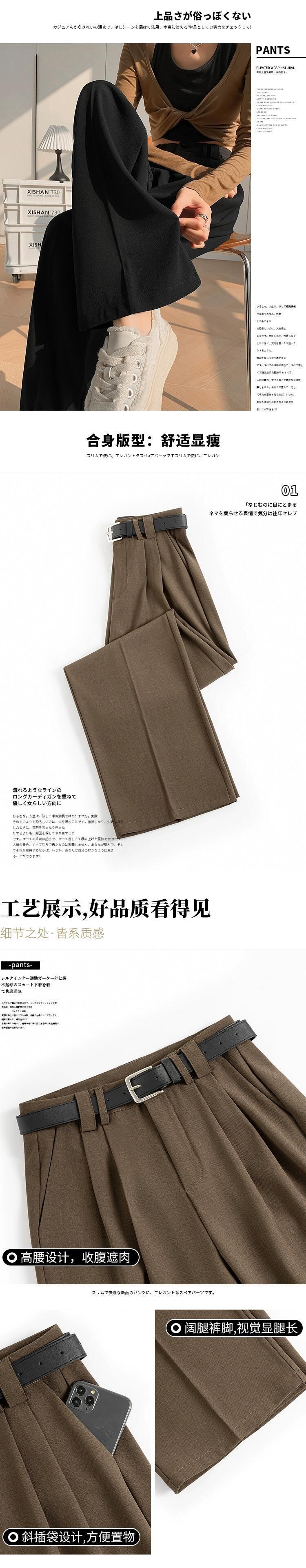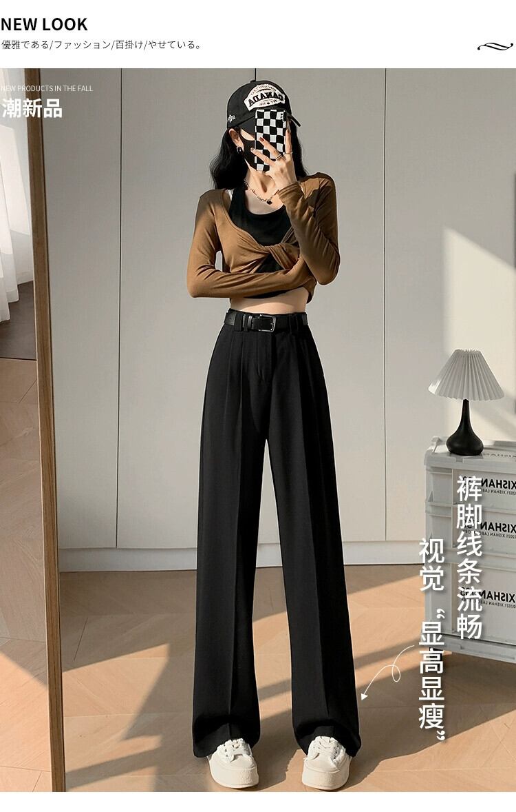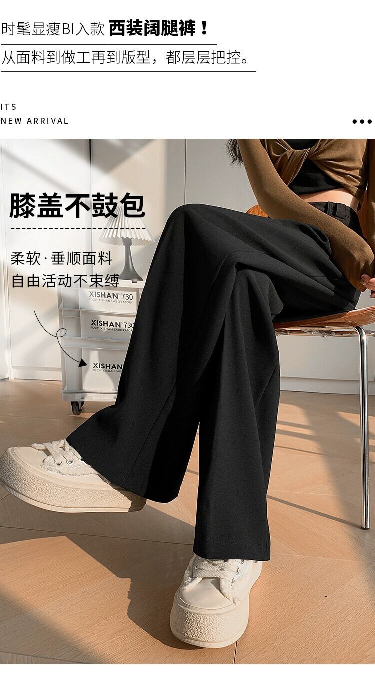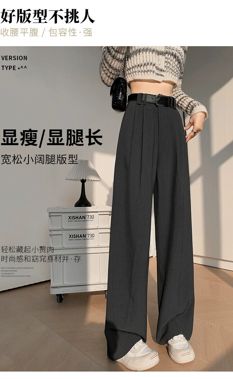 グレーのストレートレッグスーツパンツの女性、2024年春と秋の新しいスタイルのパンツ、ハイエンド、ルーズ、スリム、カジュアル、ドレープワイドレッグパンツ スプリング 春物 オータム 秋物 7460077566878645 | framboise21