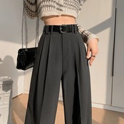 グレーのストレートレッグスーツパンツの女性、2024年春と秋の新しいスタイルのパンツ、ハイエンド、ルーズ、スリム、カジュアル、ドレープワイドレッグパンツ スプリング 春物 オータム 秋物 7460077566878645