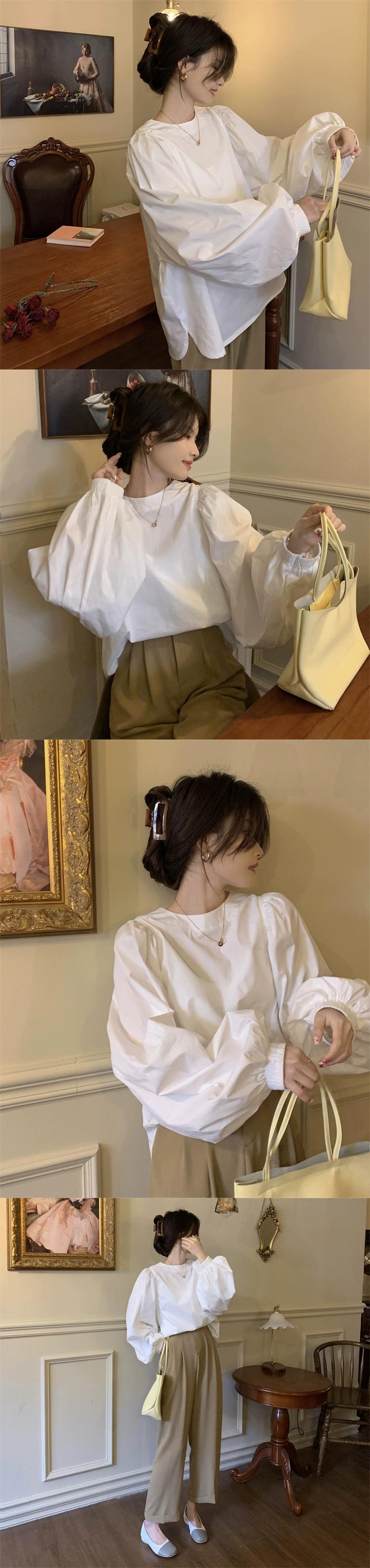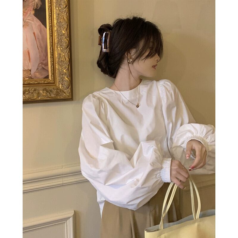 白いパフスリーブシャツの女性の2024年春と秋の新しいスタイルのファッショナブルなデザイン、ルーズで多用途な長袖トップ ロング ホワイト スプリング 春物 オータム 秋物 7460065983471573 | framboise21
