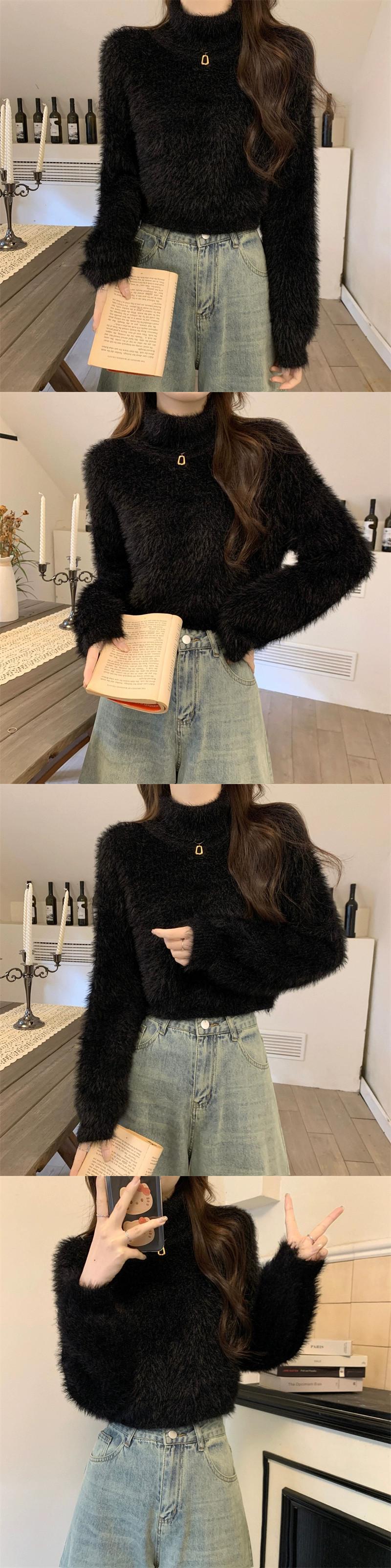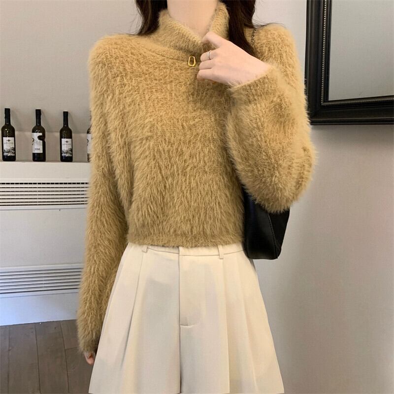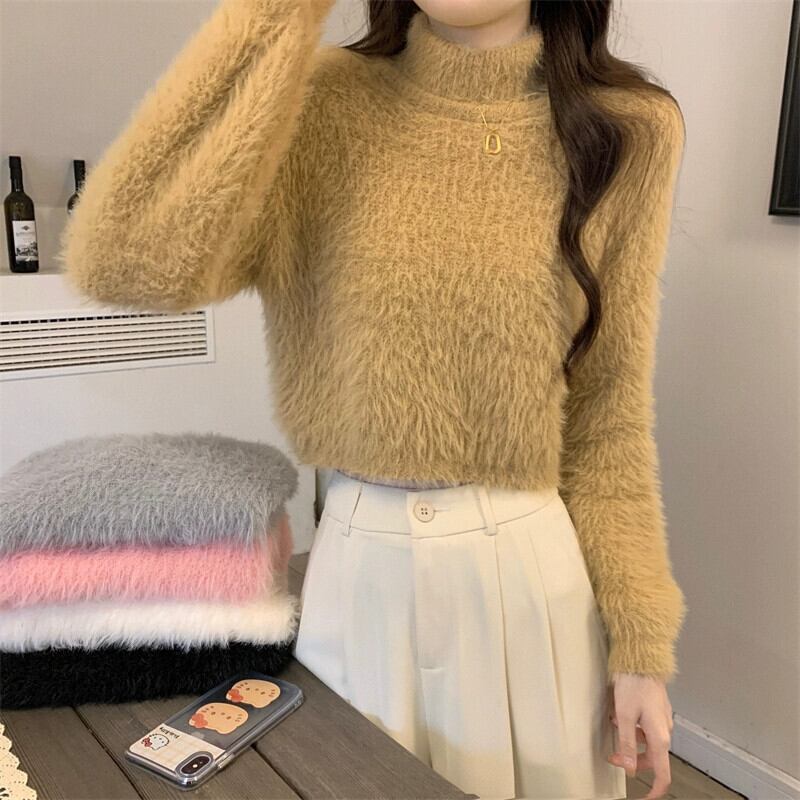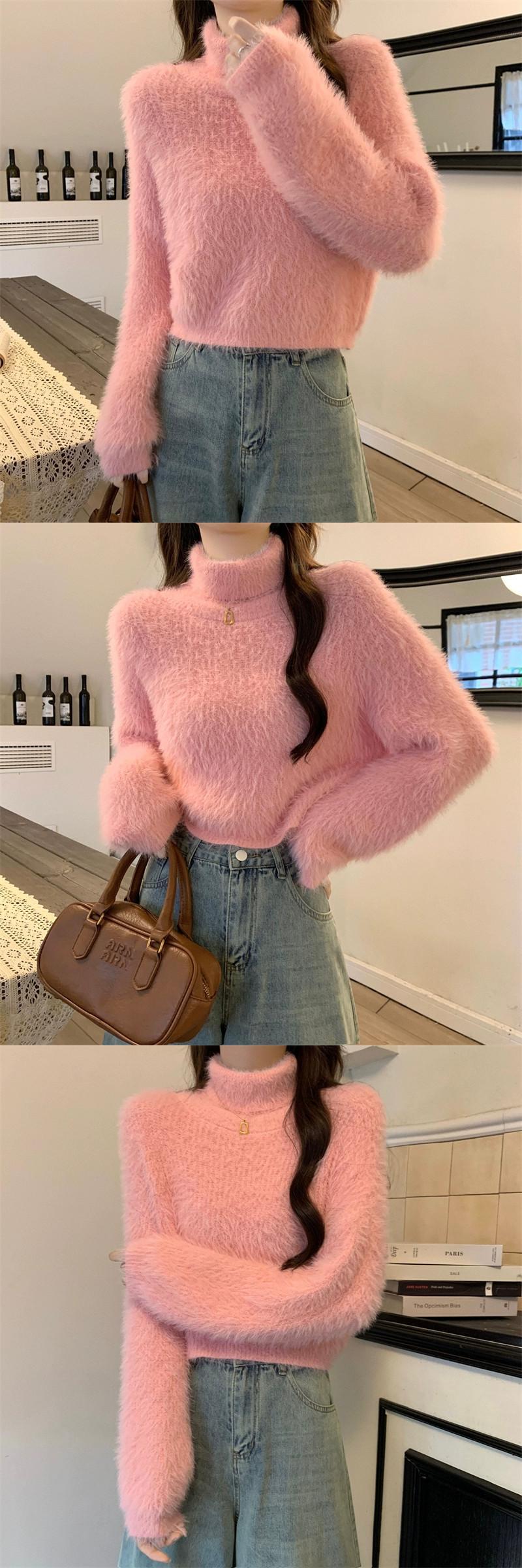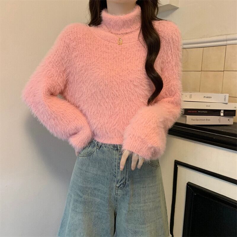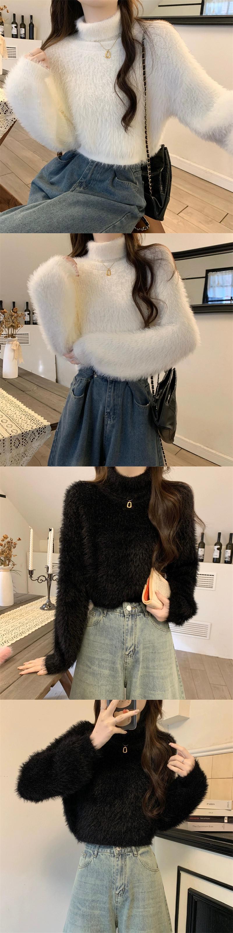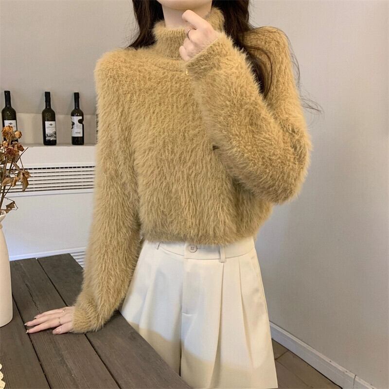 模造ミンクベルベットショートハーフタートルネックセーター女性冬レトロソフトとワックスルーズアウターウェア肥厚モヘアセーター ウィンター 冬物 7460091024603142 | framboise21
