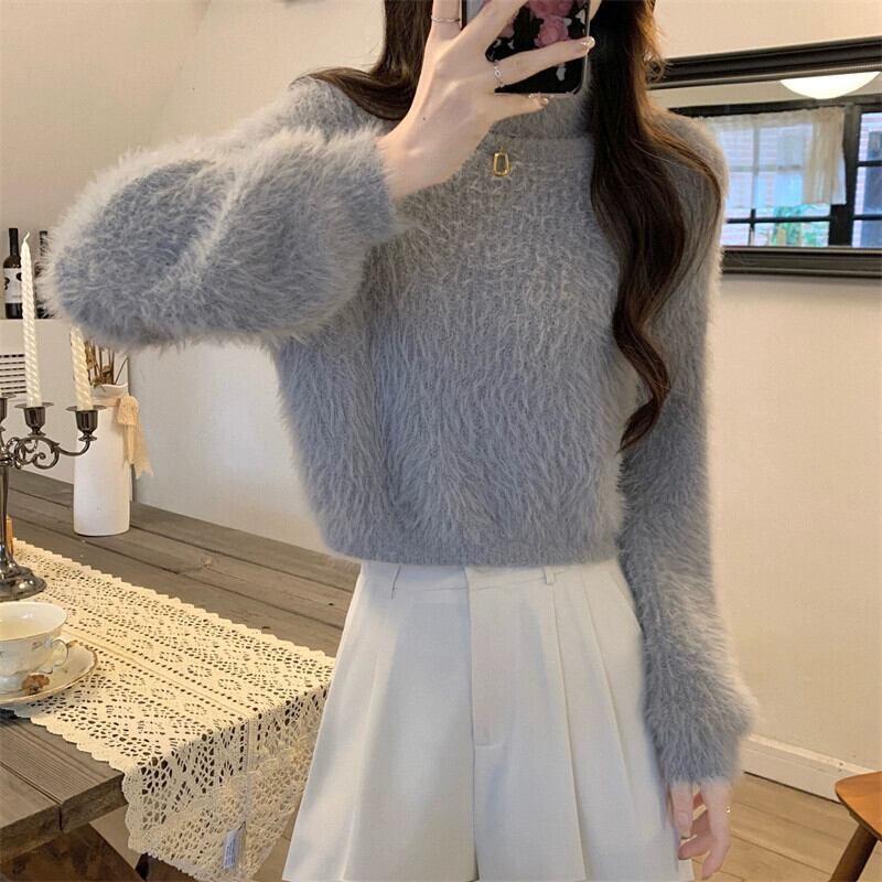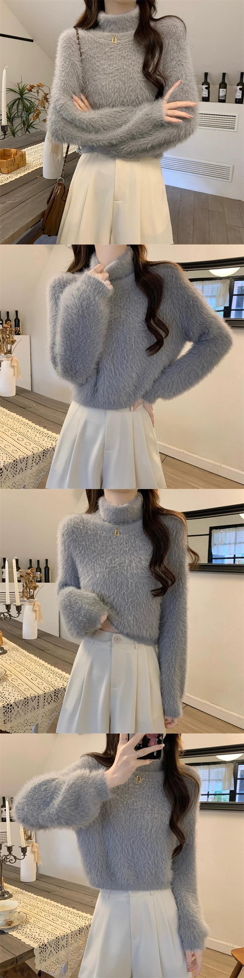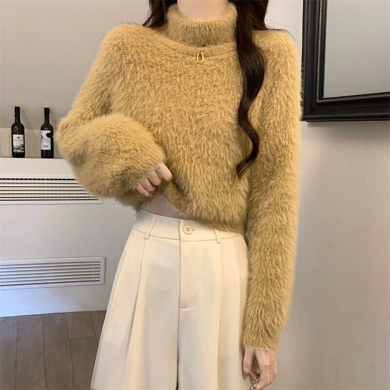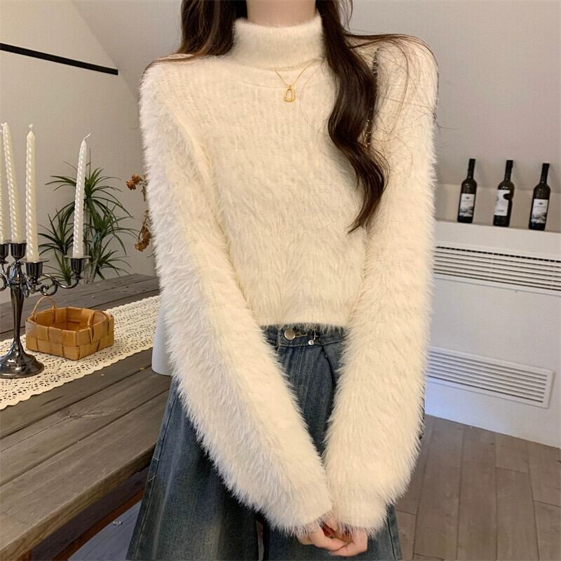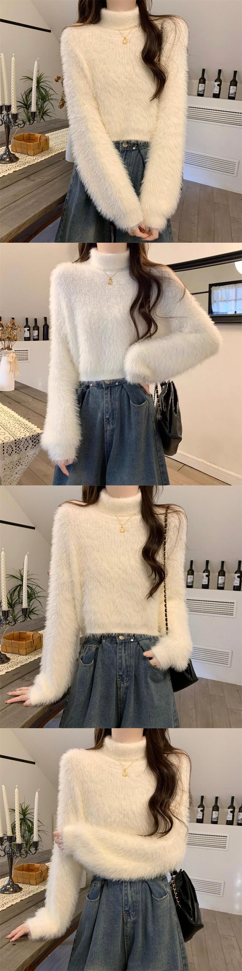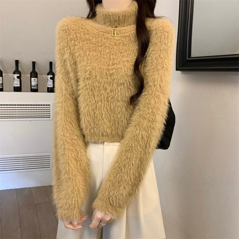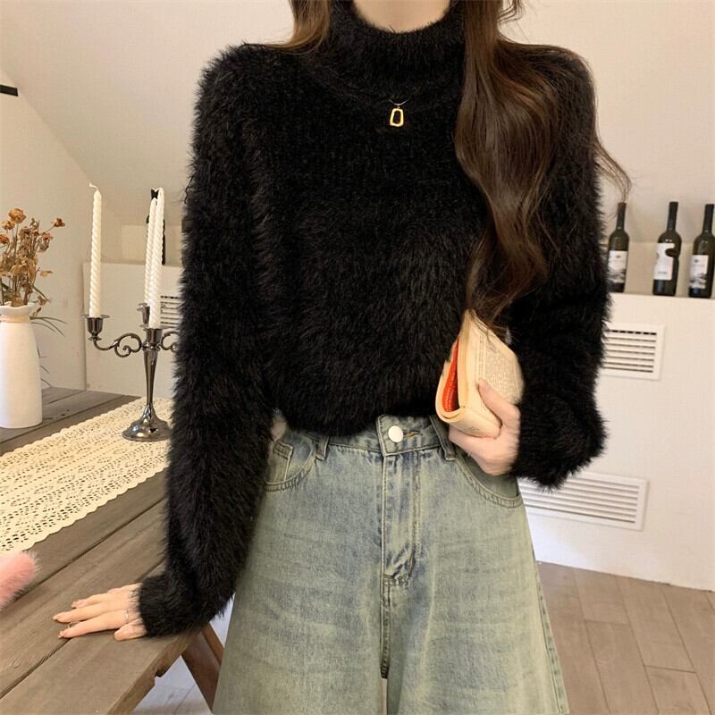 模造ミンクベルベットショートハーフタートルネックセーター女性冬レトロソフトとワックスルーズアウターウェア肥厚モヘアセーター ウィンター 冬物 7460091024603142 | framboise21