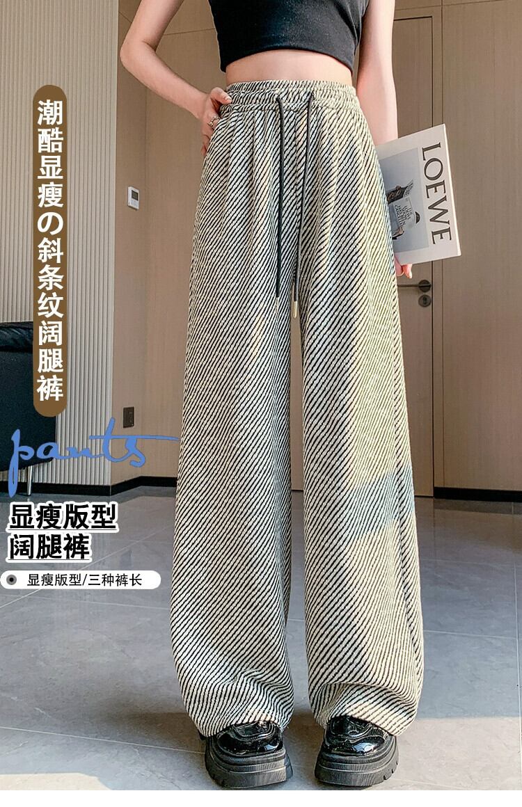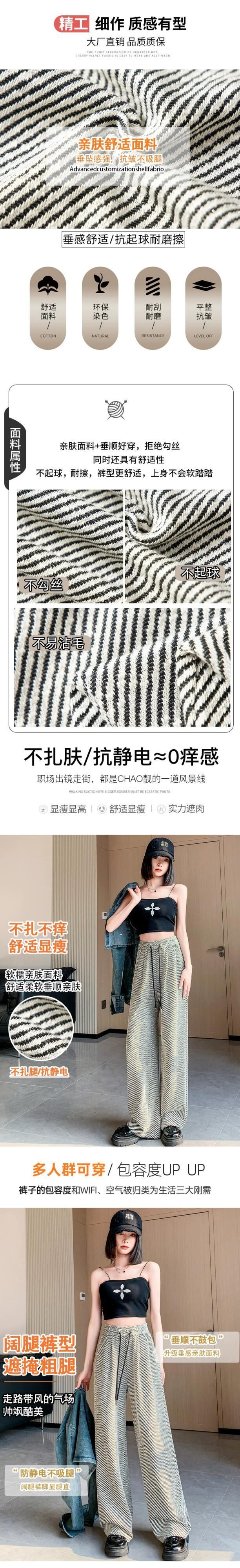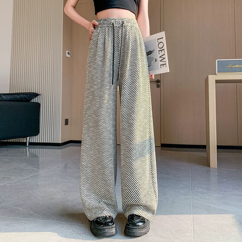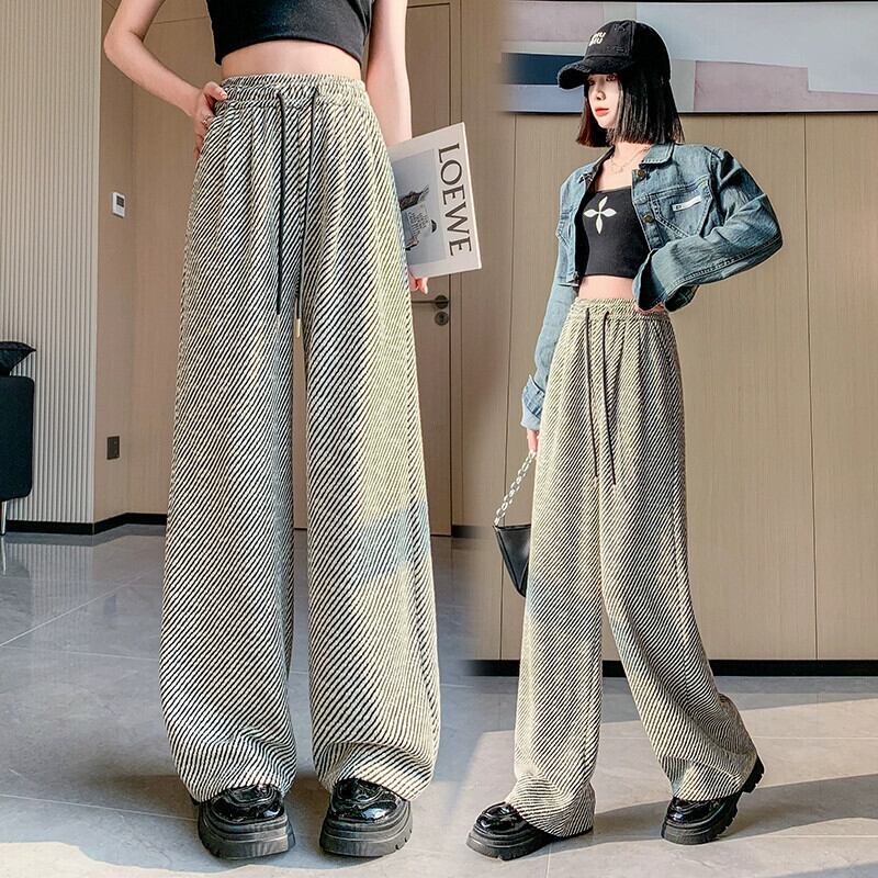 ストライプワイドレッグパンツレディース、2024年春と秋の新しいルーズストレートレッグフロアレングスパンツ、ハイウエスト、ドレープ、ハイウエストカジュアルパンツ スプリング 春物 オータム 秋物 7460078574005460 | framboise21