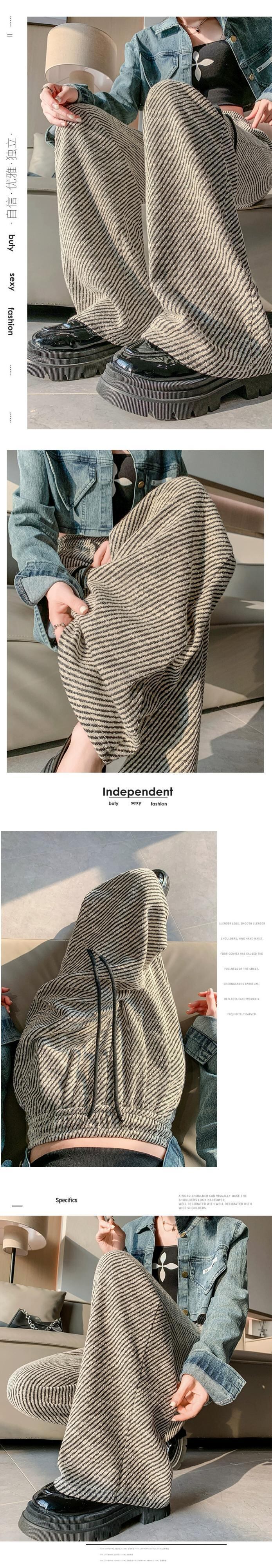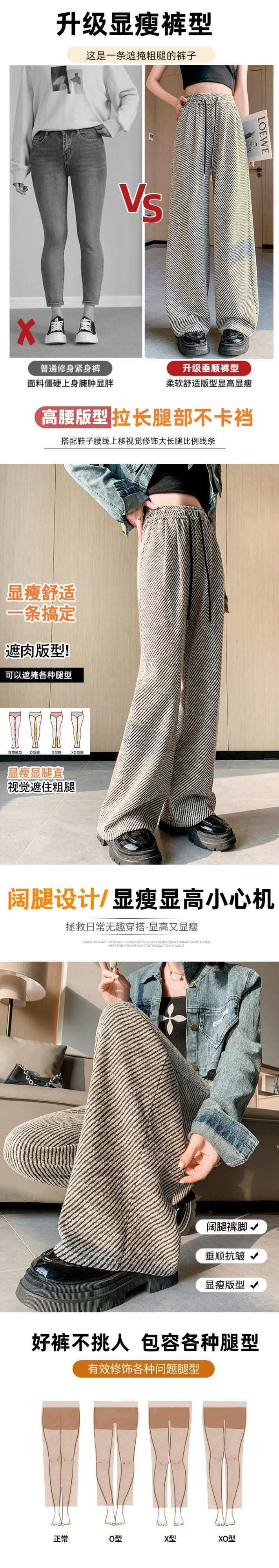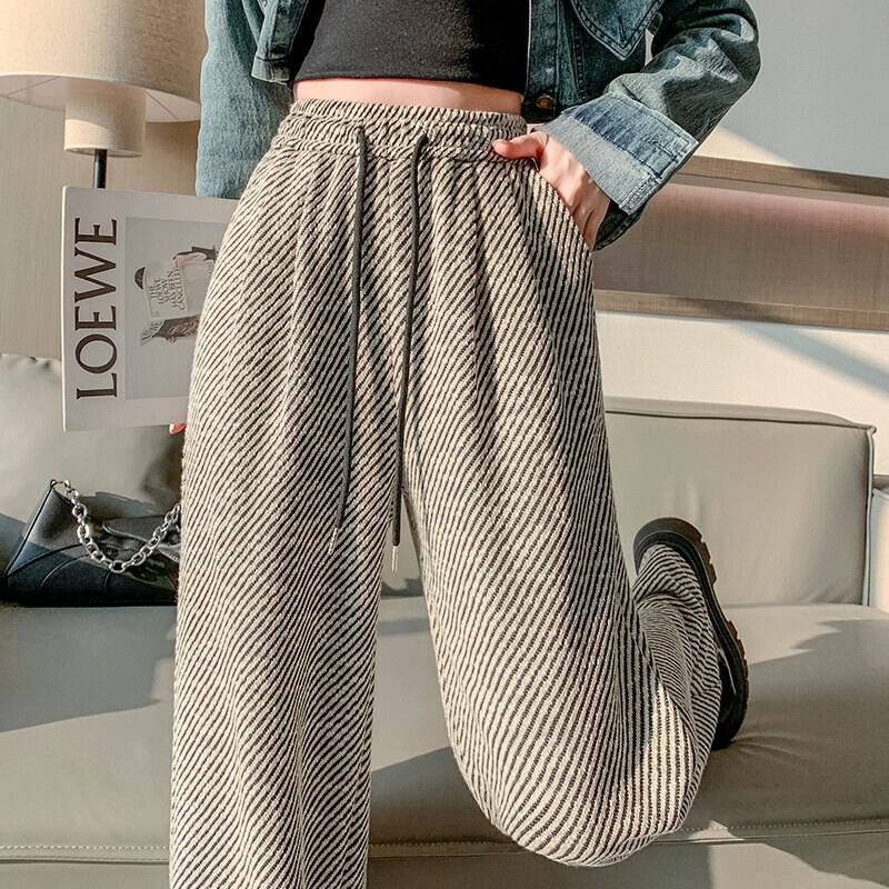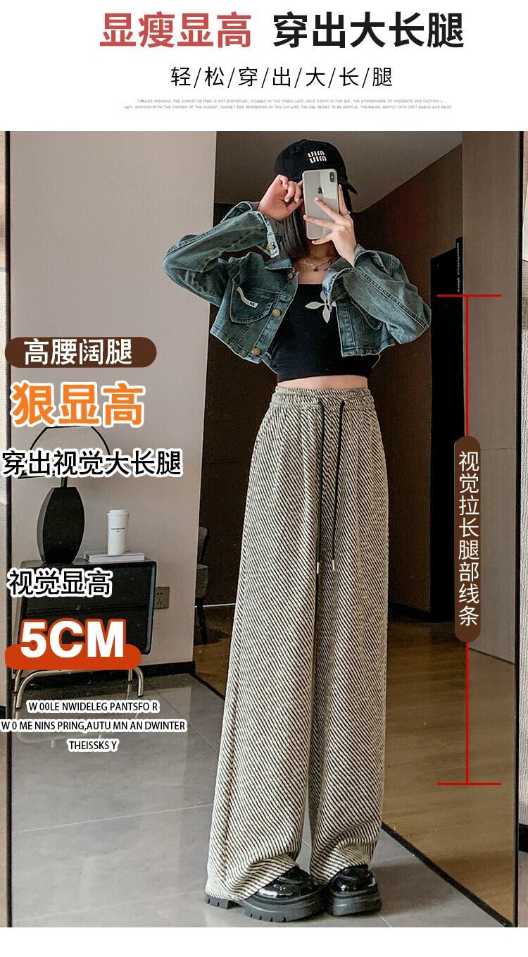 ストライプワイドレッグパンツレディース、2024年春と秋の新しいルーズストレートレッグフロアレングスパンツ、ハイウエスト、ドレープ、ハイウエストカジュアルパンツ スプリング 春物 オータム 秋物 7460078574005460 | framboise21