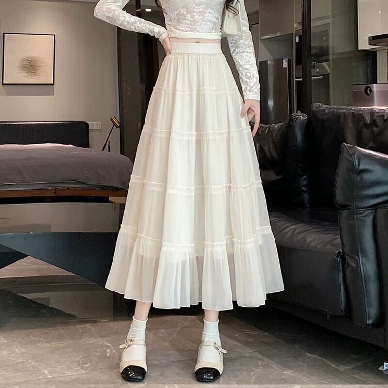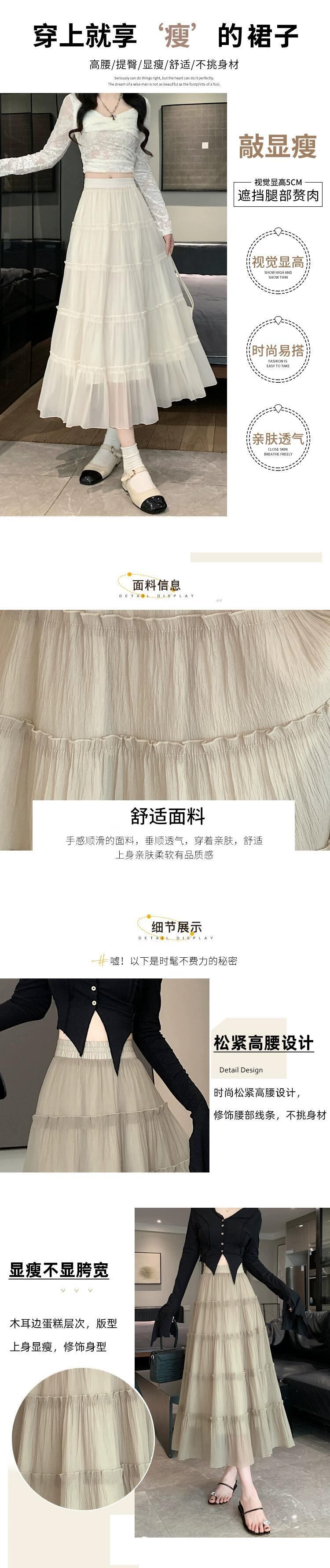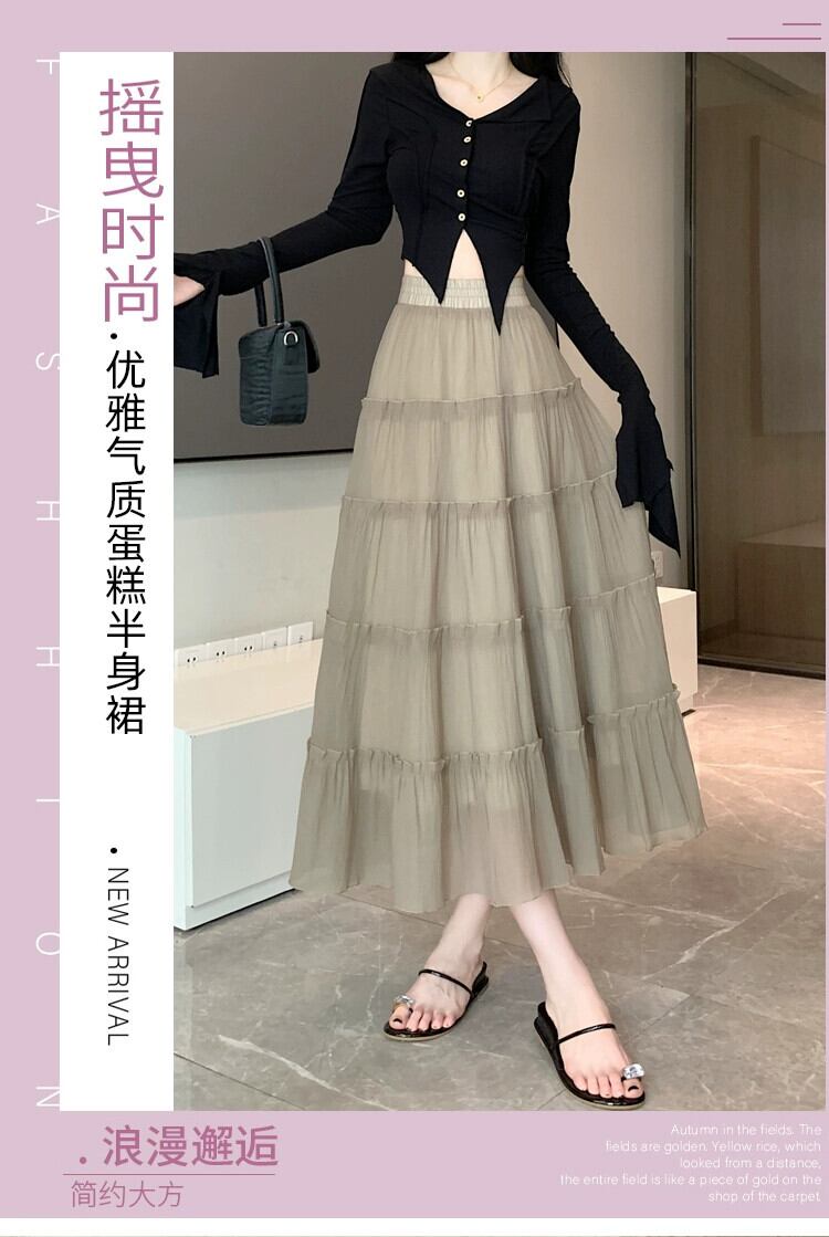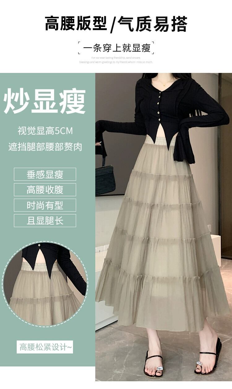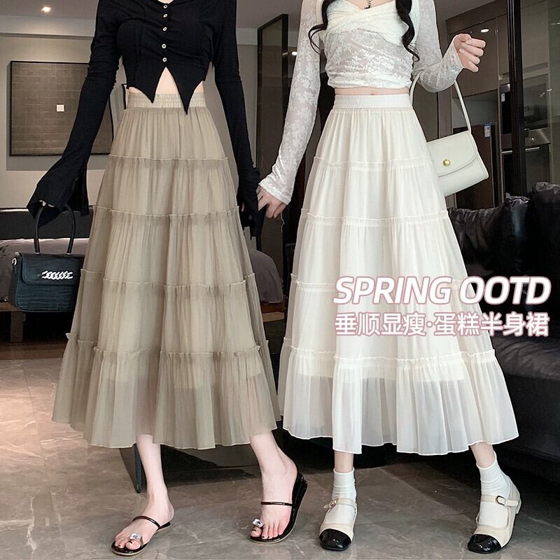 スプライシングメッシュケーキスカート女性 2024 新作春と秋のスタイルハイウエストスリムミッドレングス A ライン大きな裾アンブレラスカート スプリング 春物 オータム 秋物 Aライン 7460062079885078 | framboise21