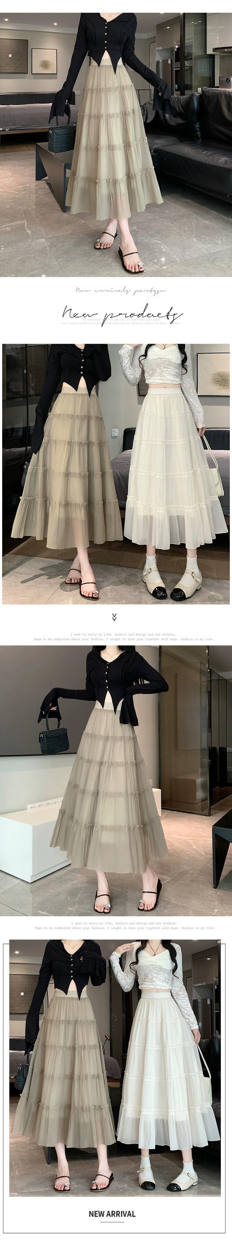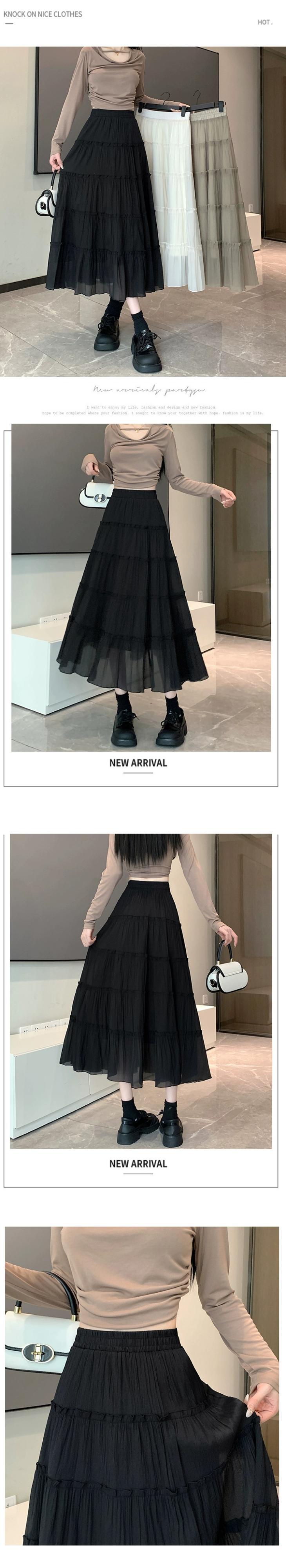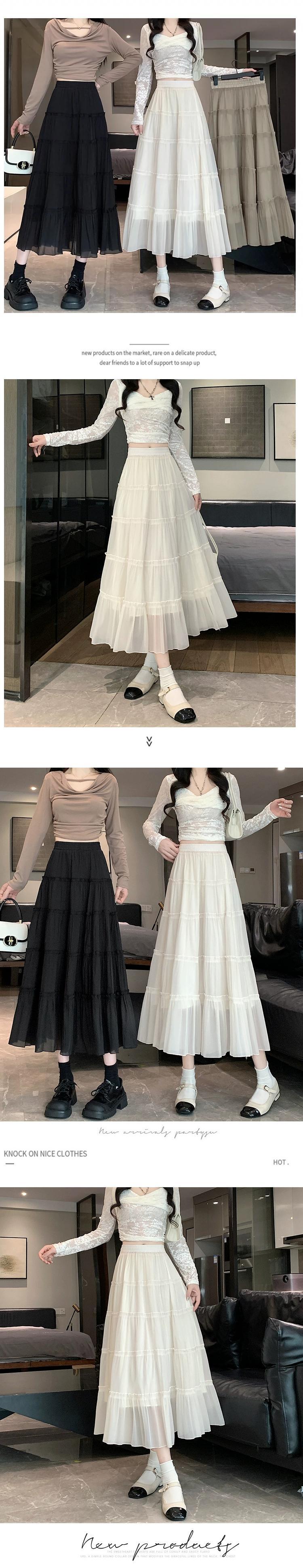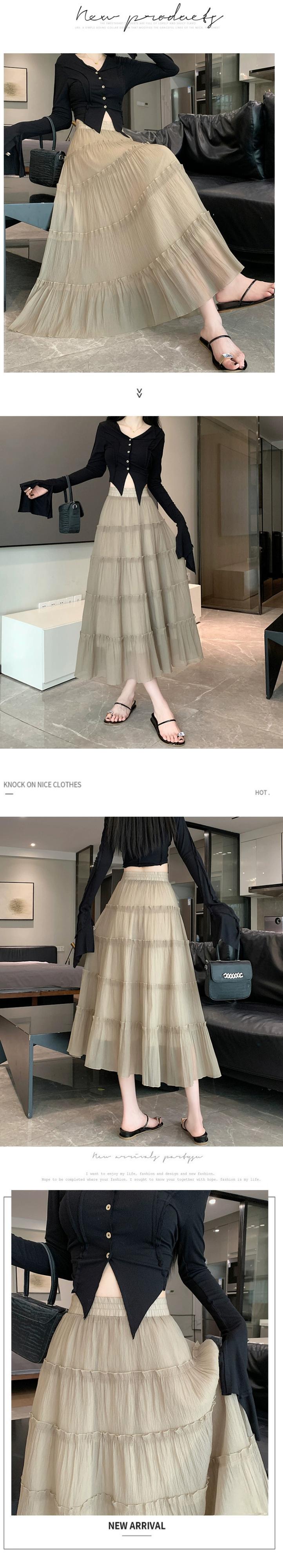 スプライシングメッシュケーキスカート女性 2024 新作春と秋のスタイルハイウエストスリムミッドレングス A ライン大きな裾アンブレラスカート スプリング 春物 オータム 秋物 Aライン 7460062079885078 | framboise21