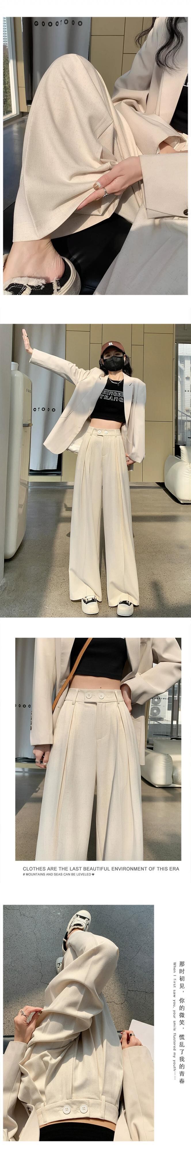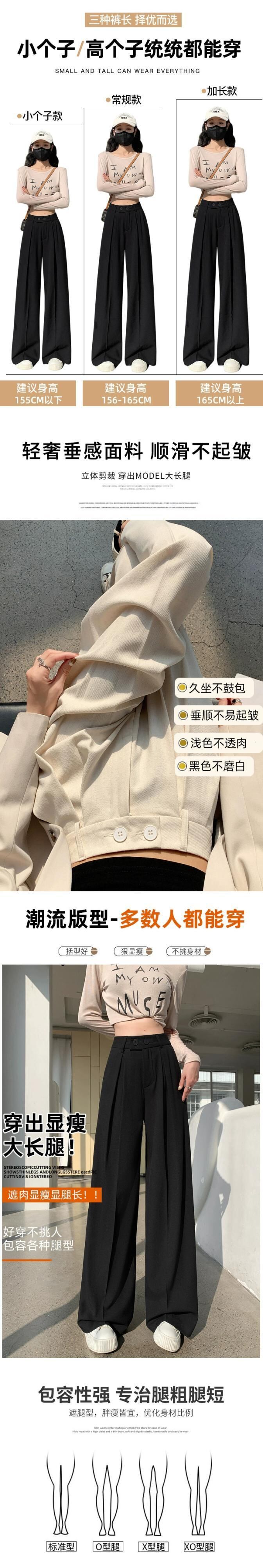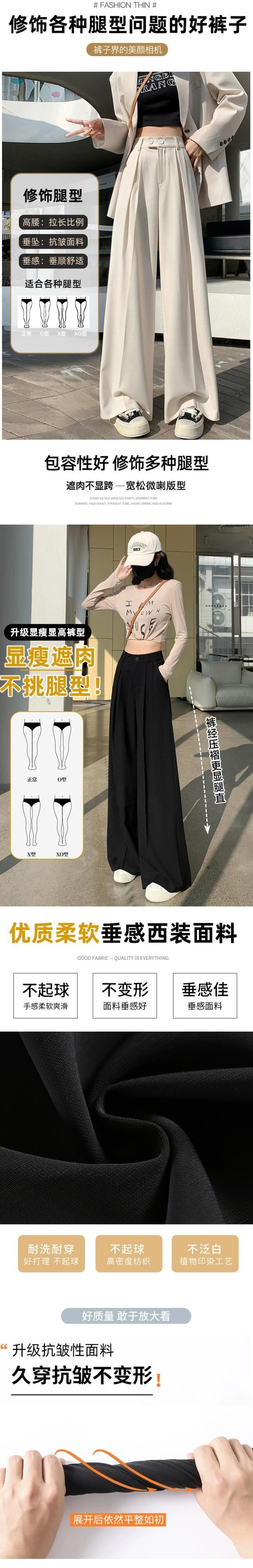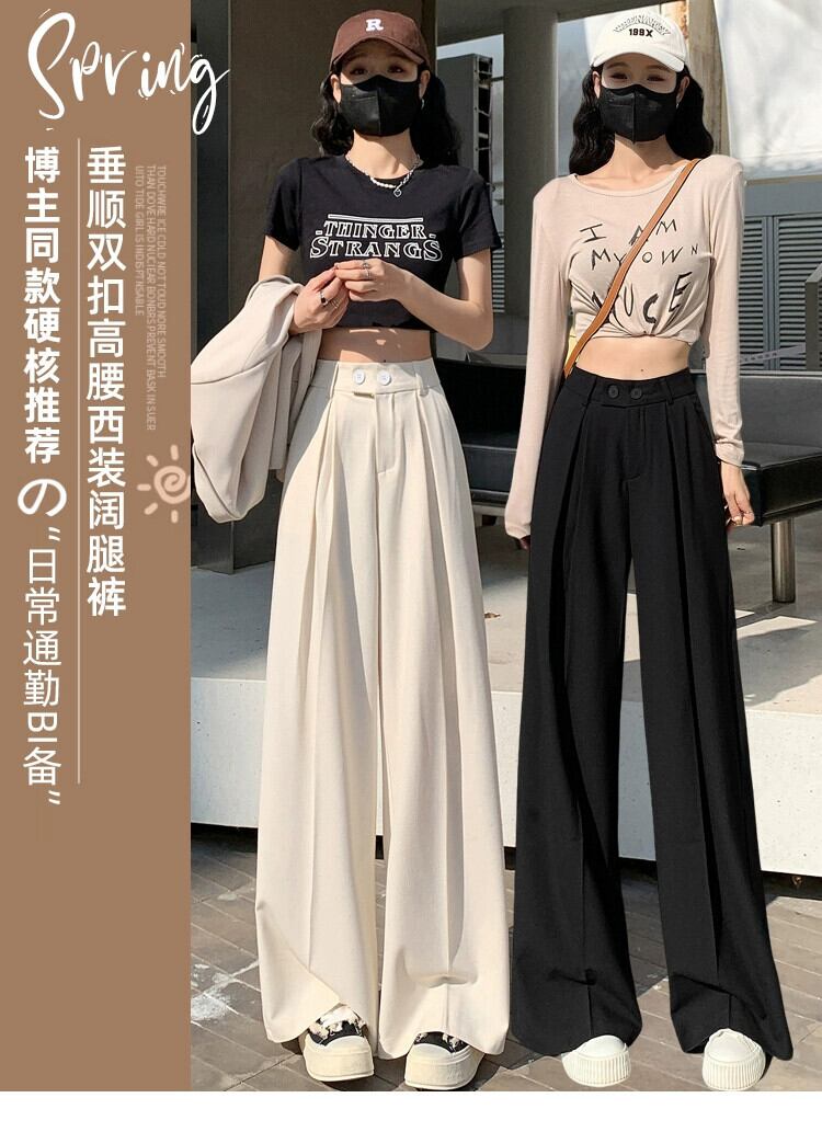 ストレートスーツパンツレディース、2024年春と秋の新しいスタイル、ルーズ、スリム、多用途、ハイウエスト、フロアレングス、ドレープワイドレッグパンツ スプリング 春物 オータム 秋物 7460062884055976 | framboise21