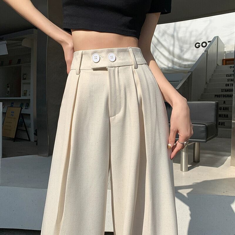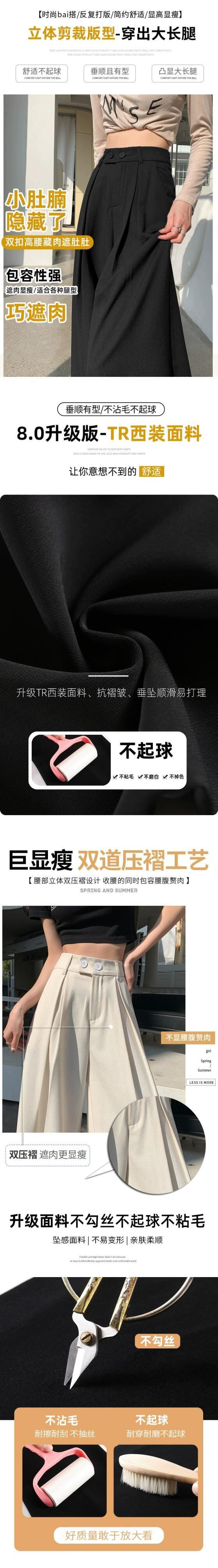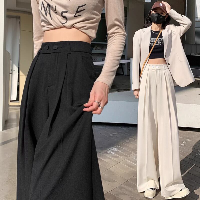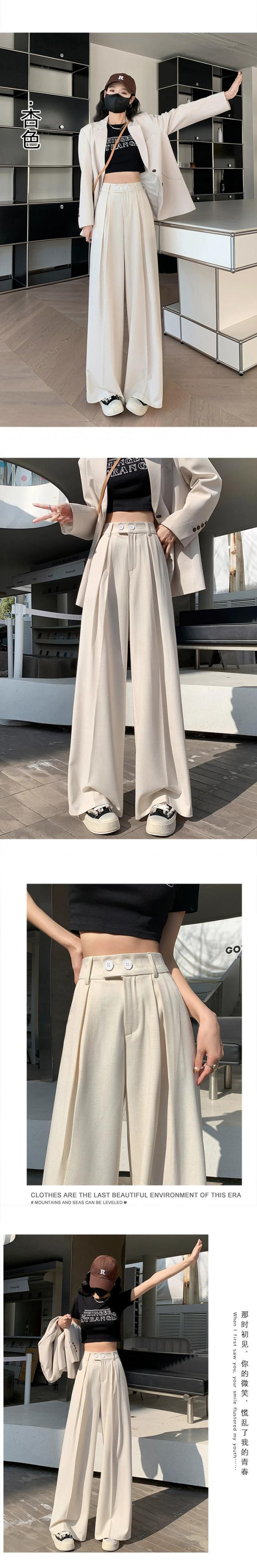ストレートスーツパンツレディース、2024年春と秋の新しいスタイル、ルーズ、スリム、多用途、ハイウエスト、フロアレングス、ドレープワイドレッグパンツ スプリング 春物 オータム 秋物 7460062884055976 | framboise21