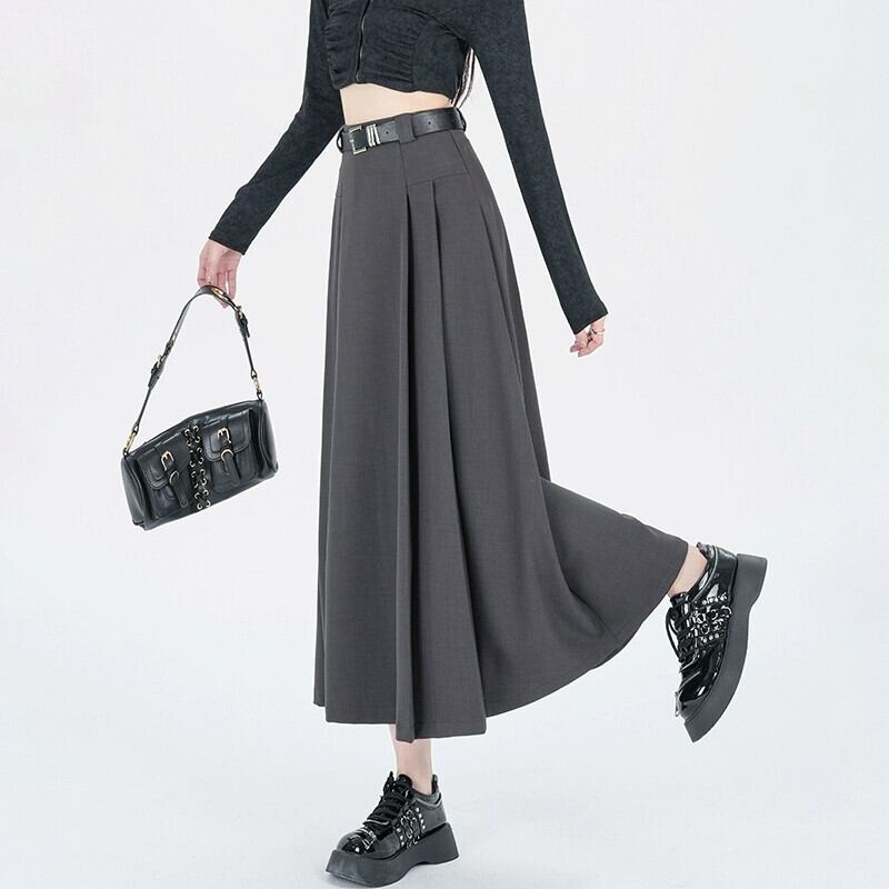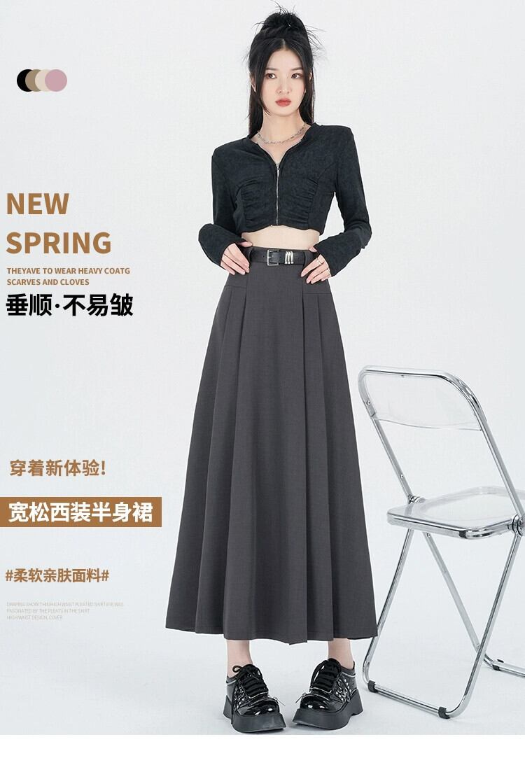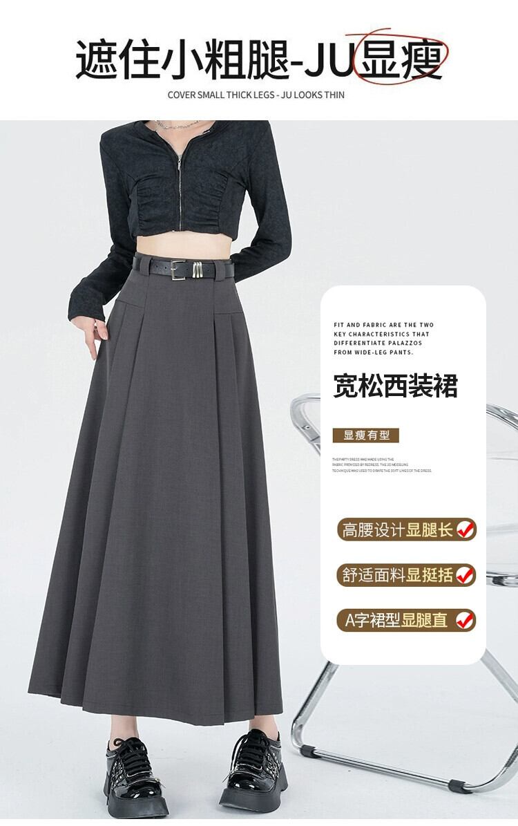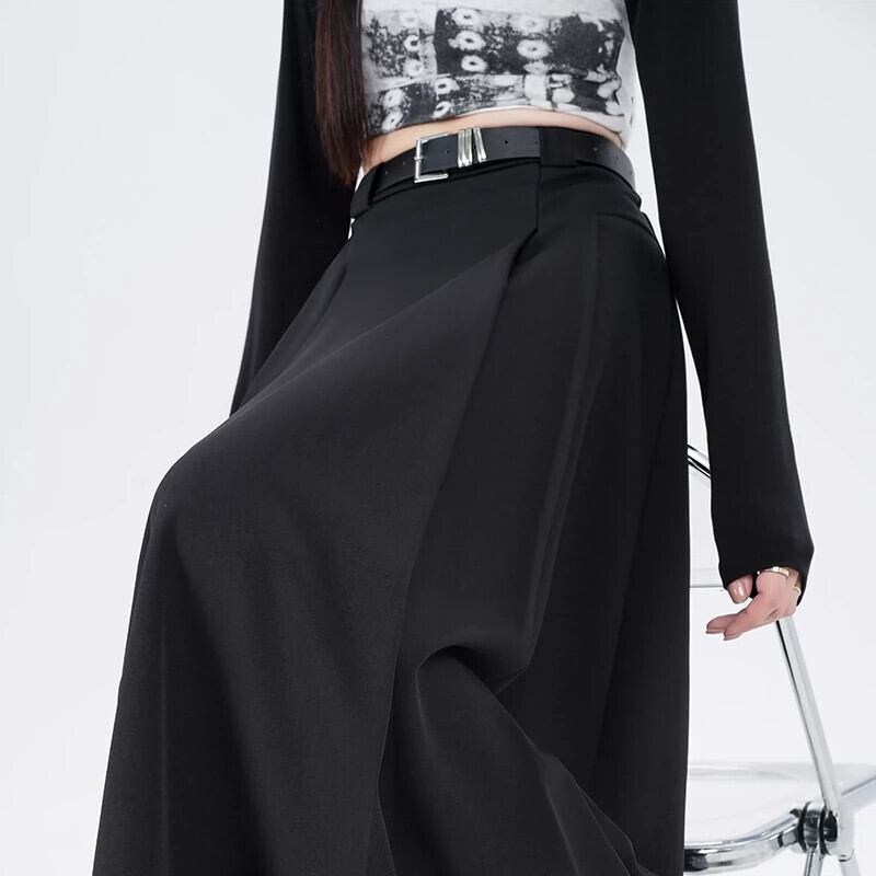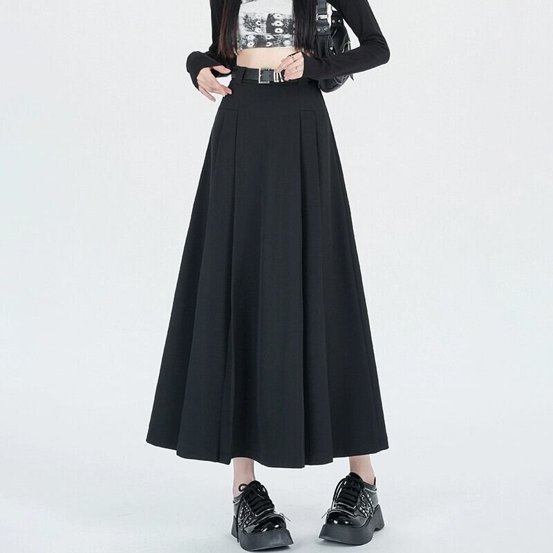 -春と秋のウエストAラインのスーツスカート、股間をカバーする高級黒のプリーツスカート、スリムでドレープに見える、ロングアンブレラスカート ブラック スプリング 春物 オータム 秋物 7460068908156522 | framboise21