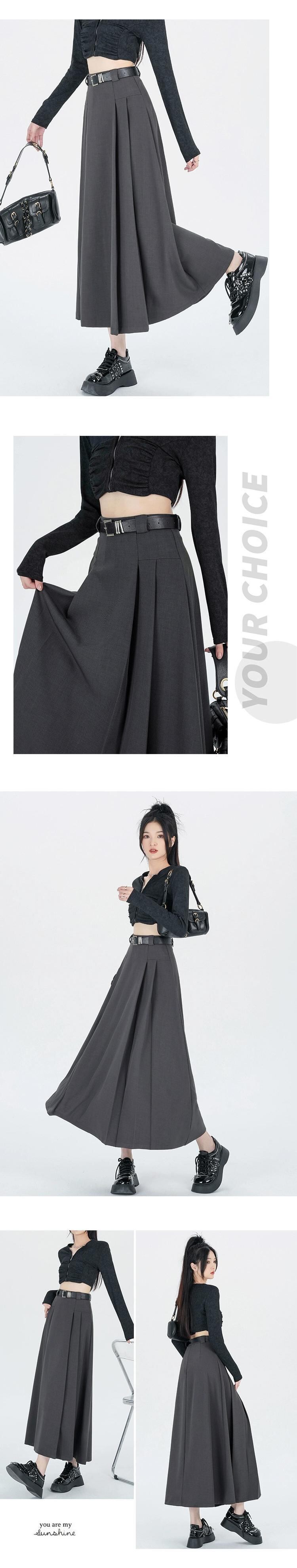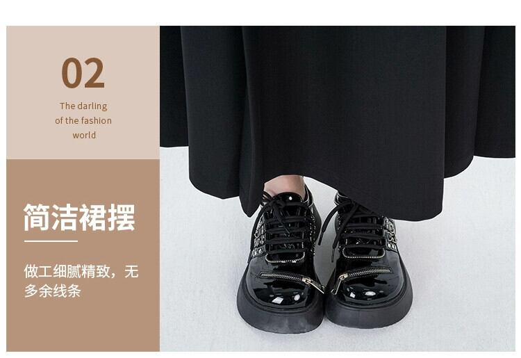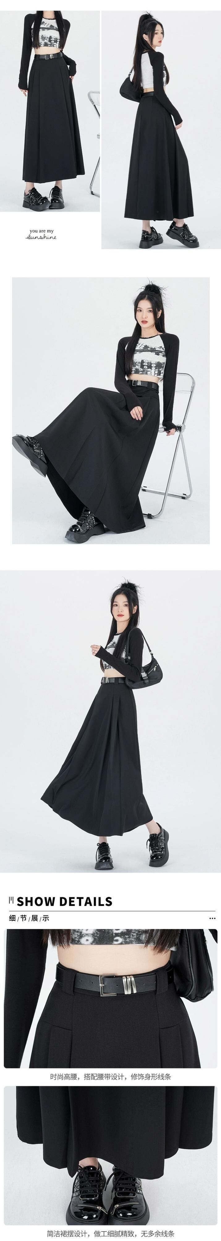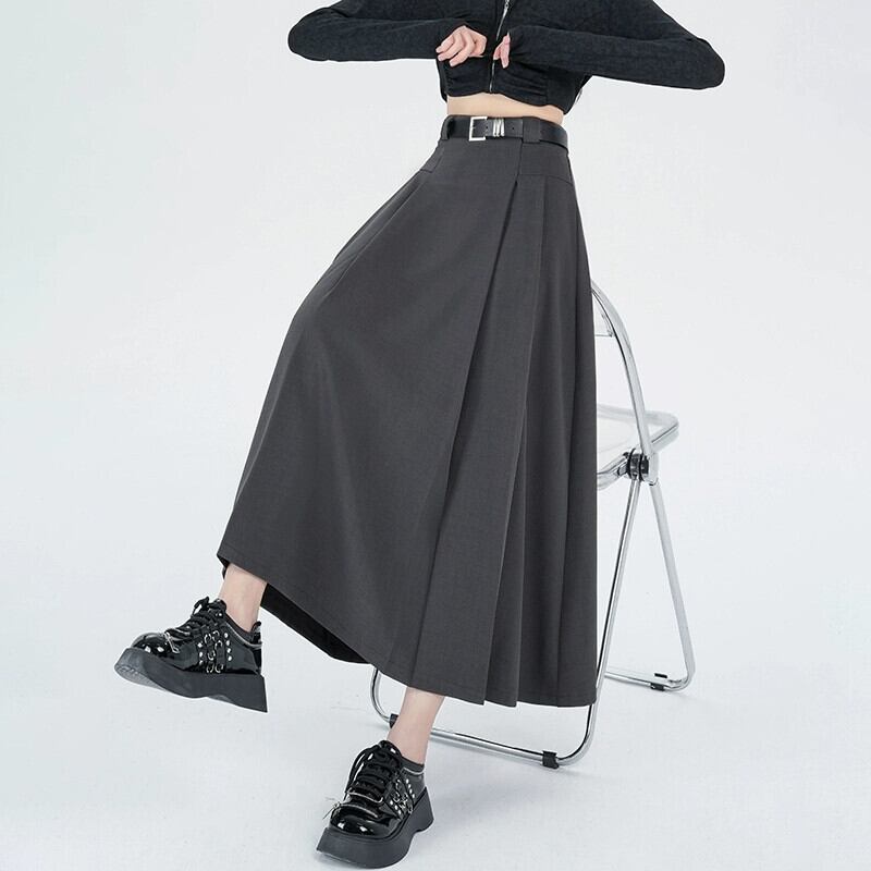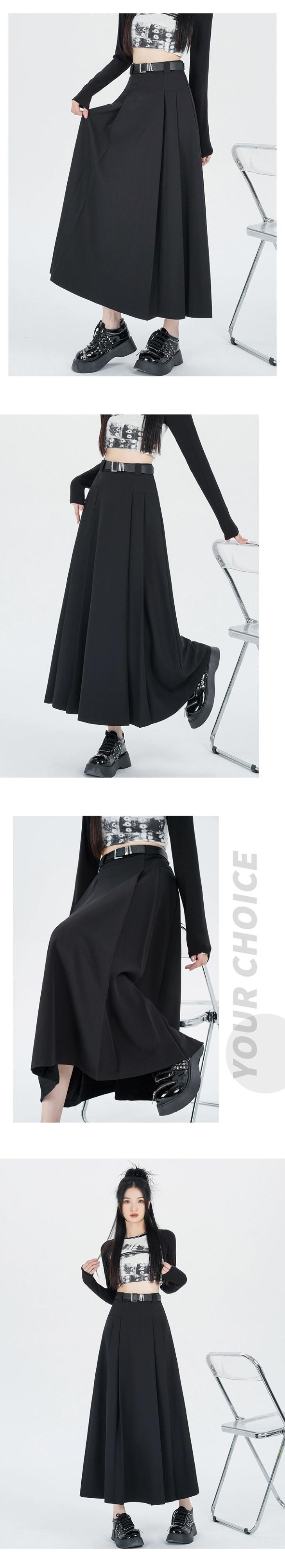 -春と秋のウエストAラインのスーツスカート、股間をカバーする高級黒のプリーツスカート、スリムでドレープに見える、ロングアンブレラスカート ブラック スプリング 春物 オータム 秋物 7460068908156522 | framboise21