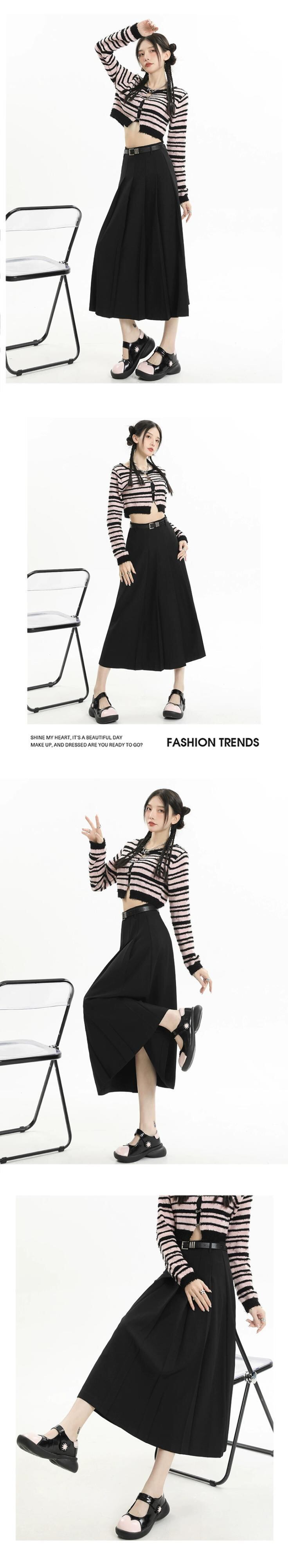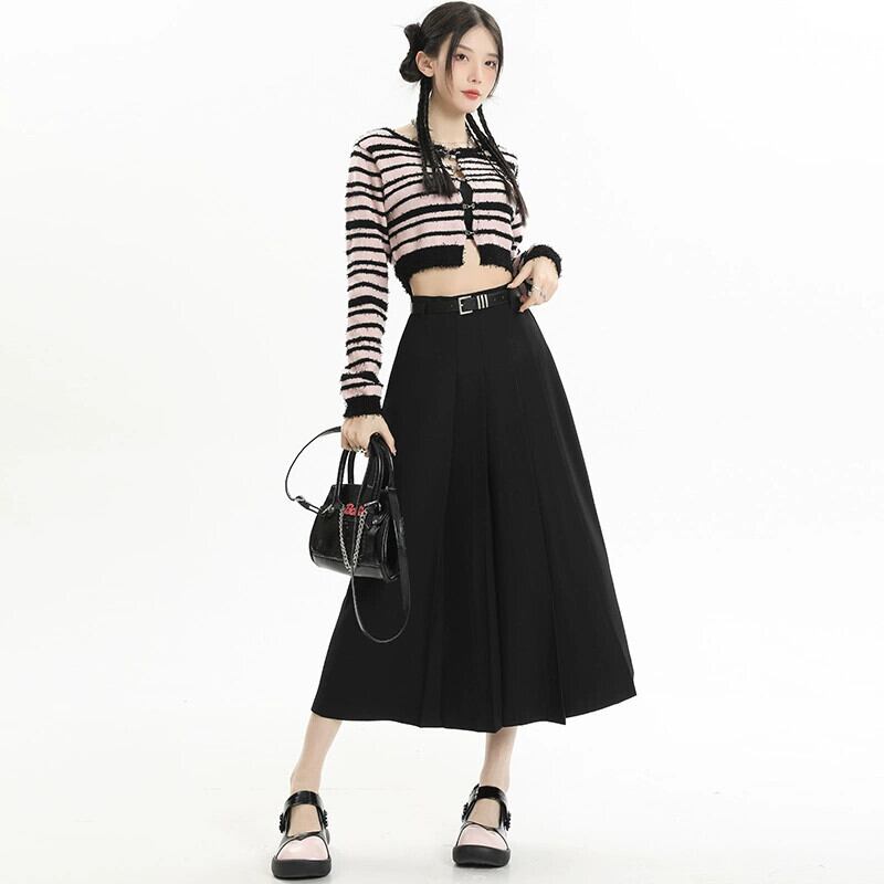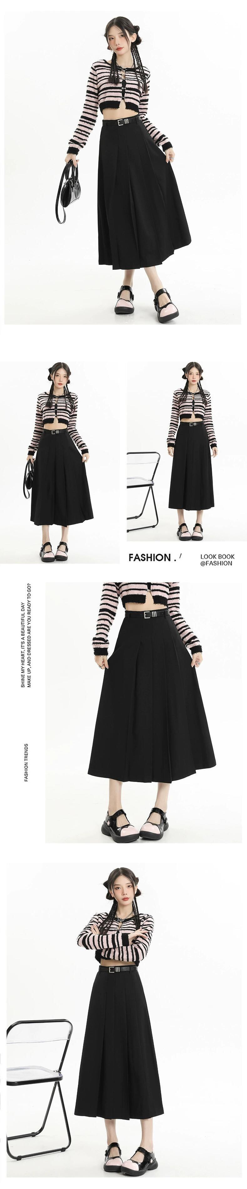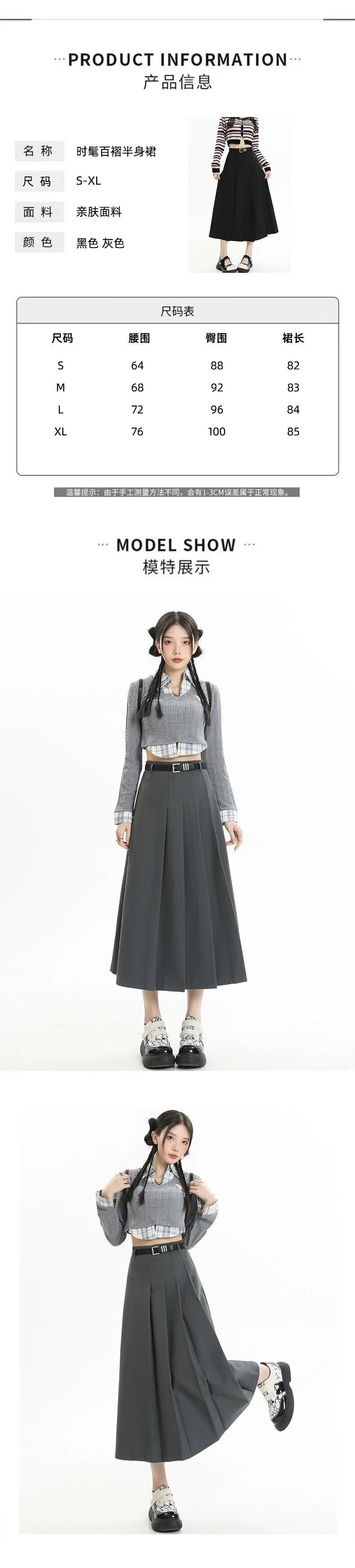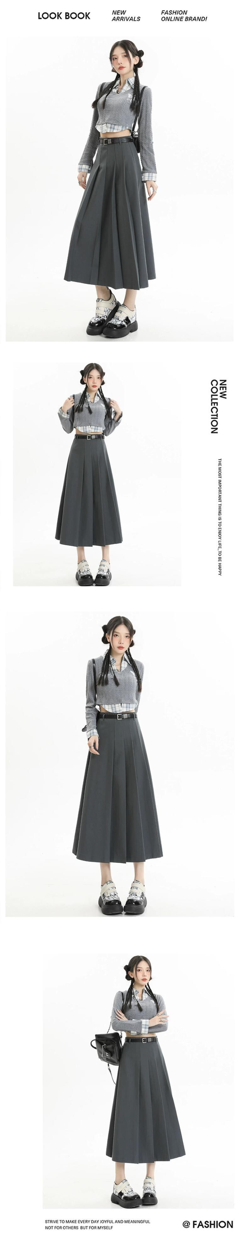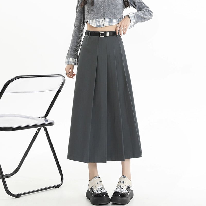 グレーのハイウエストスーツスカートレディース、春と秋のカレッジスタイルのプリーツスカートで股間をカバーし、スリムに見せます、ミドル丈の大きなスイングアンブレラスカート スプリング 春物 オータム 秋物 7460065918049219 | framboise21