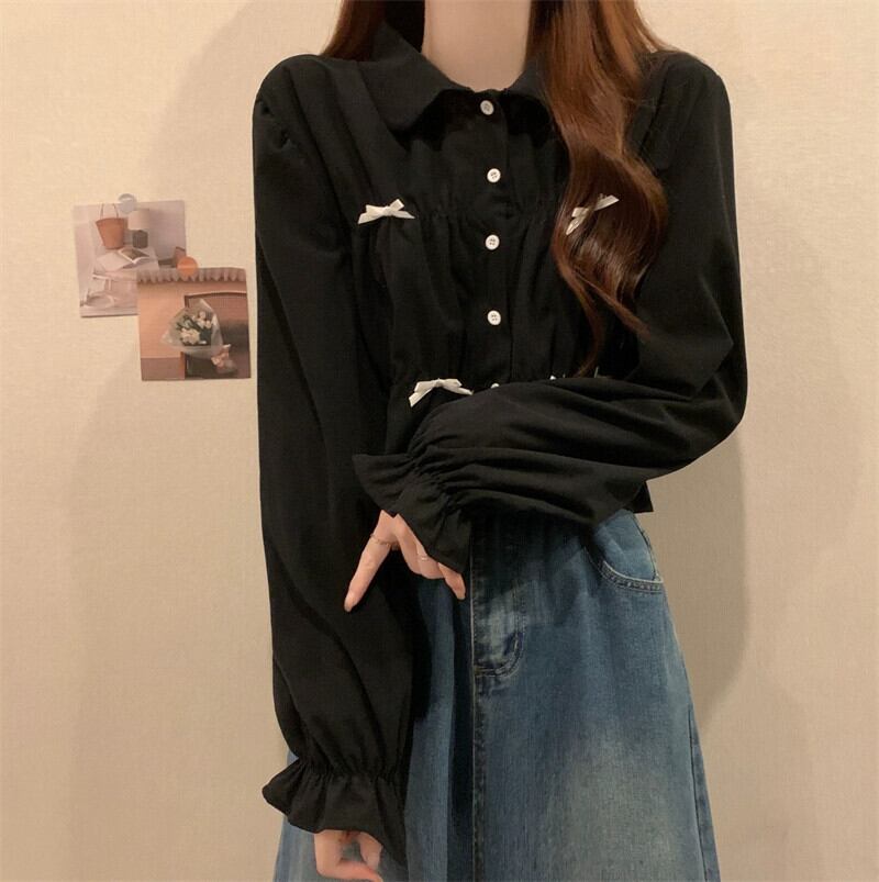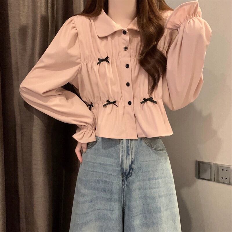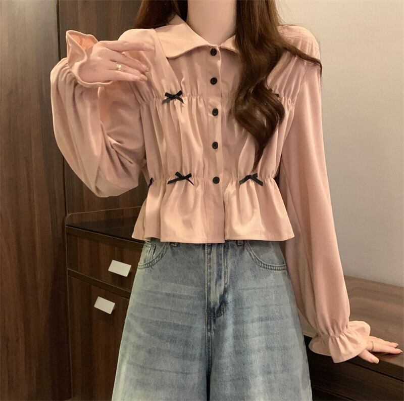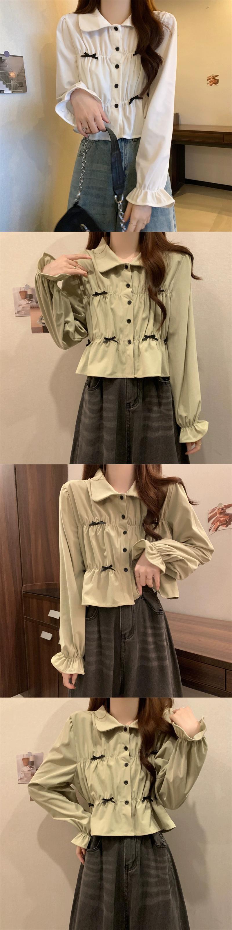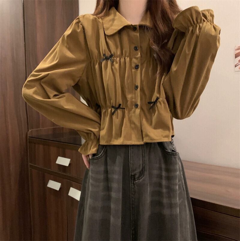 春と秋の白い半袖ベルスリーブシャツトップス、ファッショナブルで西洋風のデザイン、ユニークなプリーツ長袖シャツ ショート ロング ホワイト スプリング 春物 オータム 秋物 7460020960637637 | framboise21