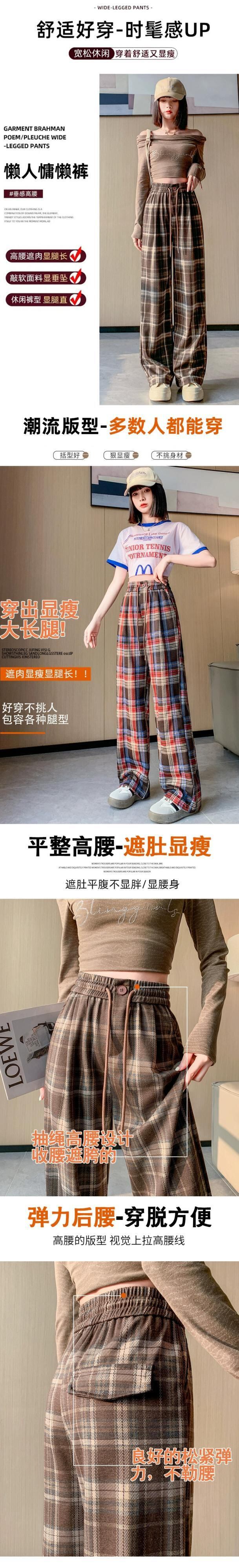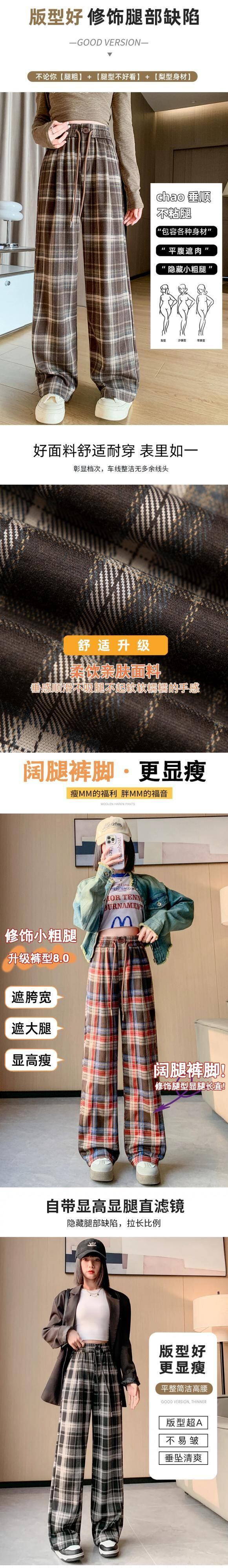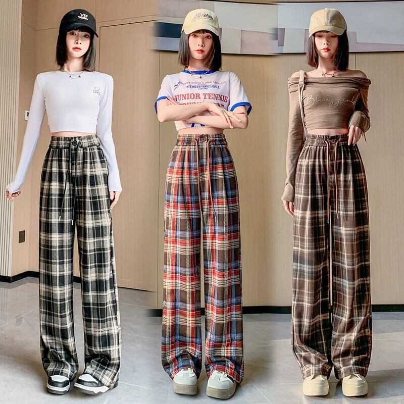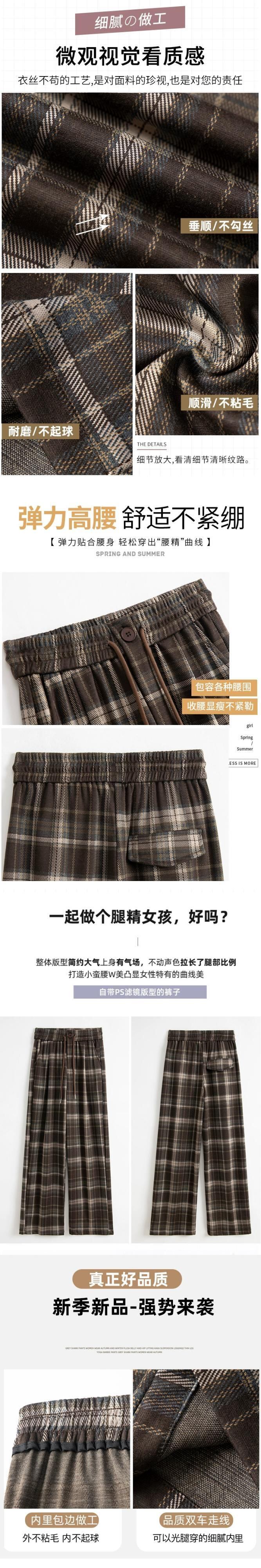 春と秋のアメリカンレトロチェック柄ワイドレッグパンツレディース、ハイウエスト、スリム、多用途、ナローバージョン、フロアレングスのストレートカジュアルパンツ スプリング 春物 オータム 秋物 7460043914638457 | framboise21