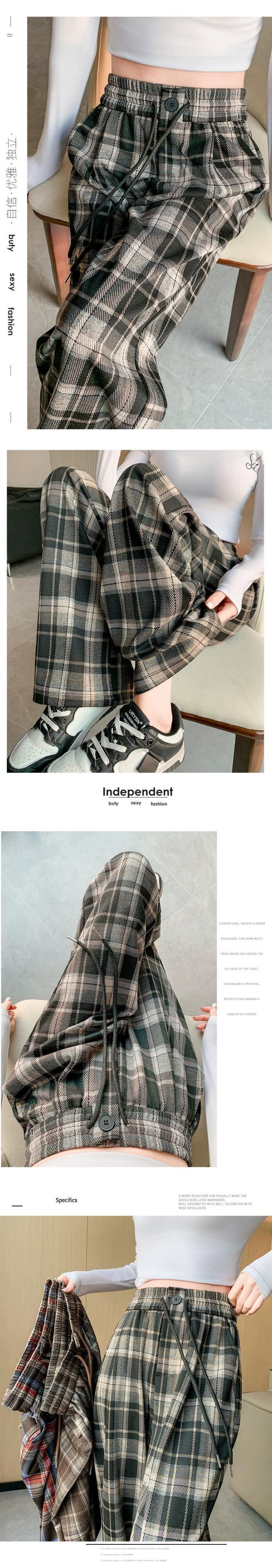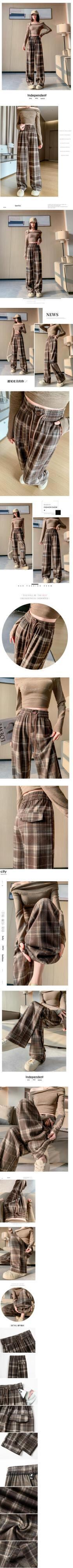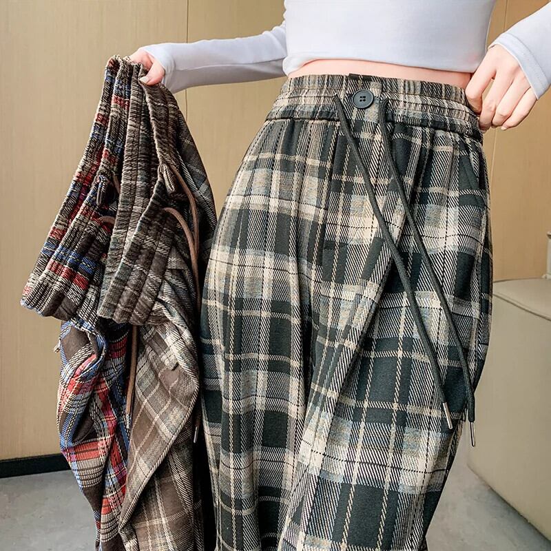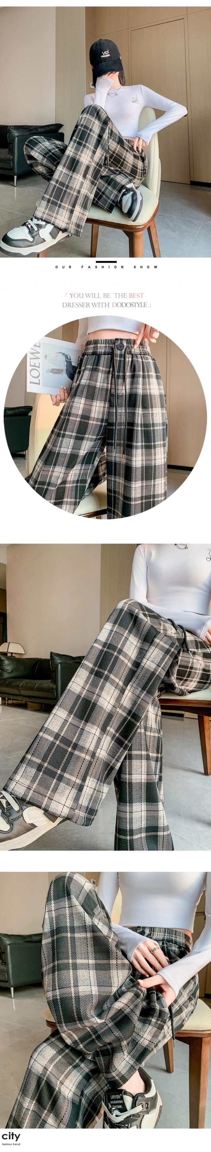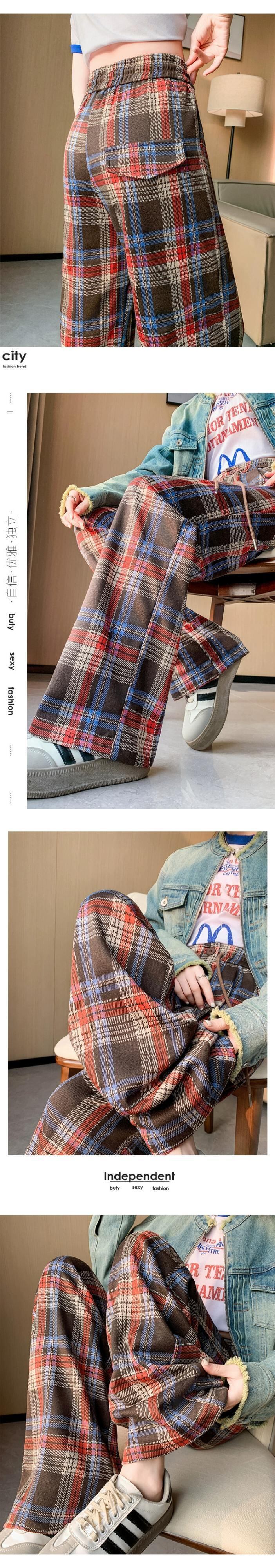 春と秋のアメリカンレトロチェック柄ワイドレッグパンツレディース、ハイウエスト、スリム、多用途、ナローバージョン、フロアレングスのストレートカジュアルパンツ スプリング 春物 オータム 秋物 7460043914638457 | framboise21