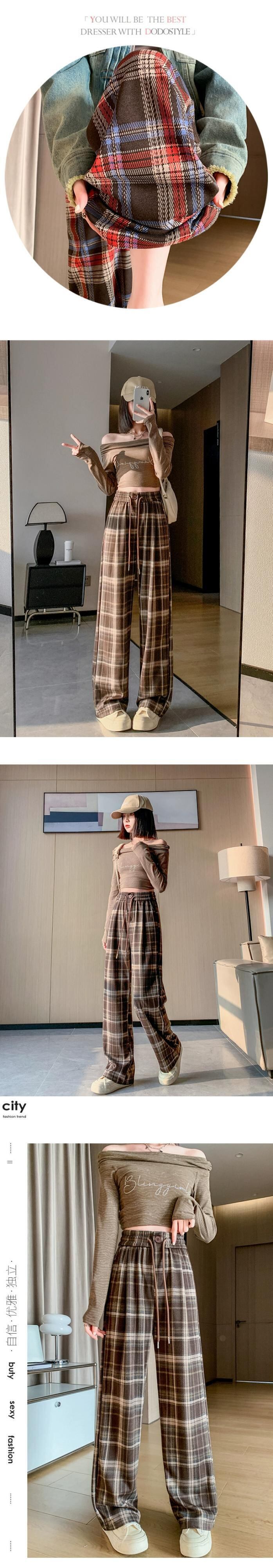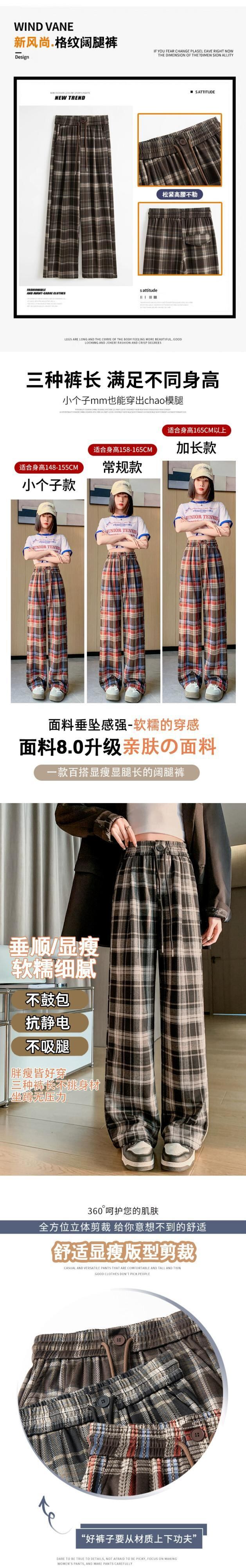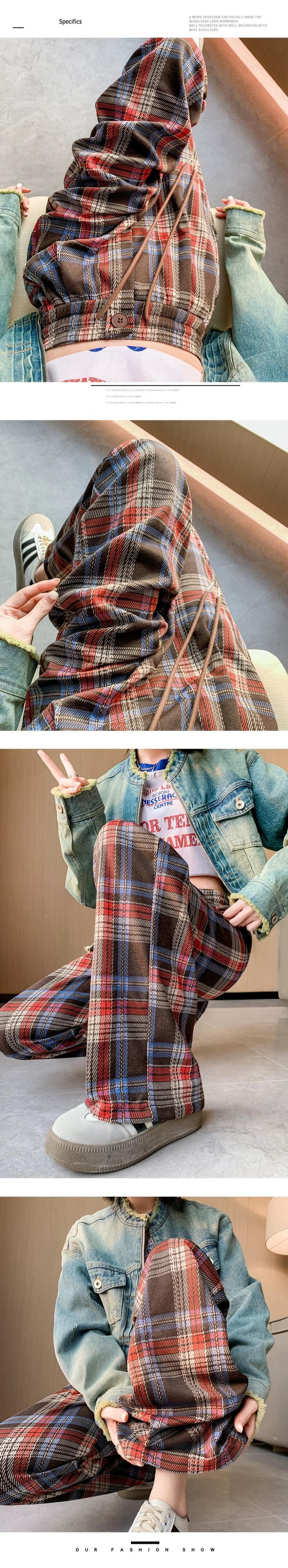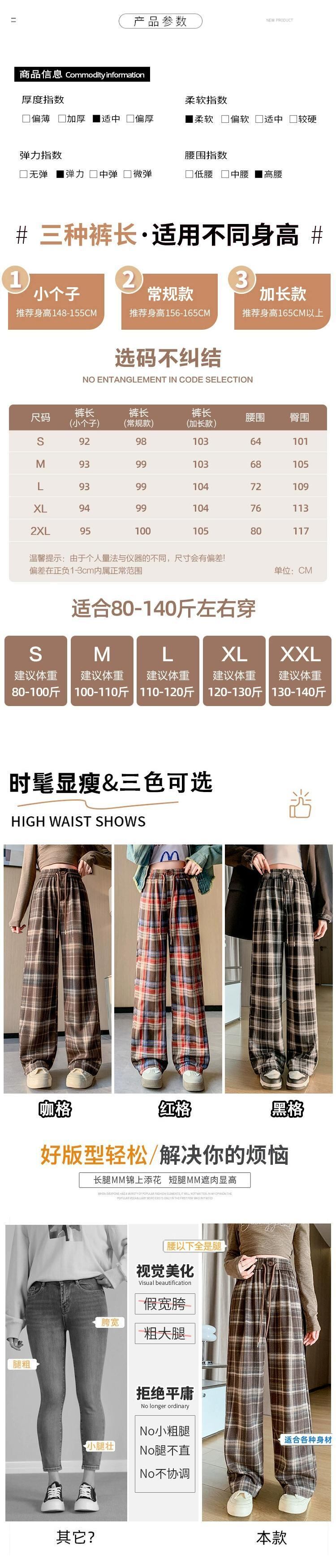 春と秋のアメリカンレトロチェック柄ワイドレッグパンツレディース、ハイウエスト、スリム、多用途、ナローバージョン、フロアレングスのストレートカジュアルパンツ スプリング 春物 オータム 秋物 7460043914638457 | framboise21