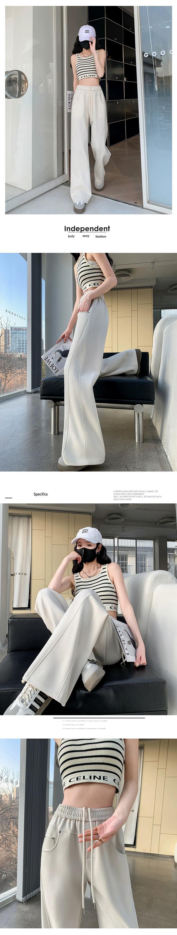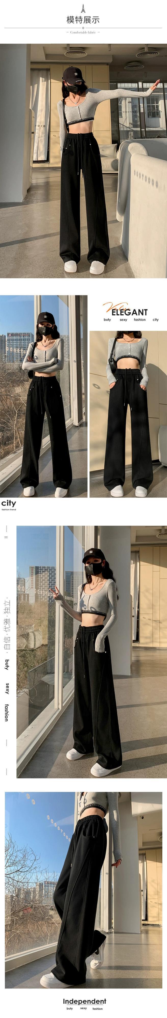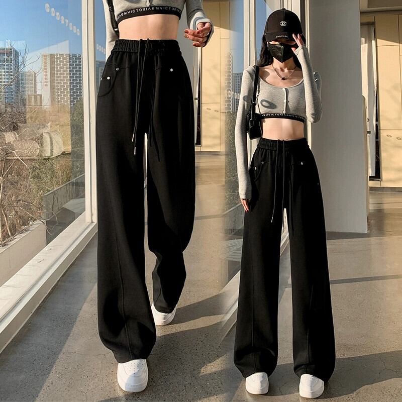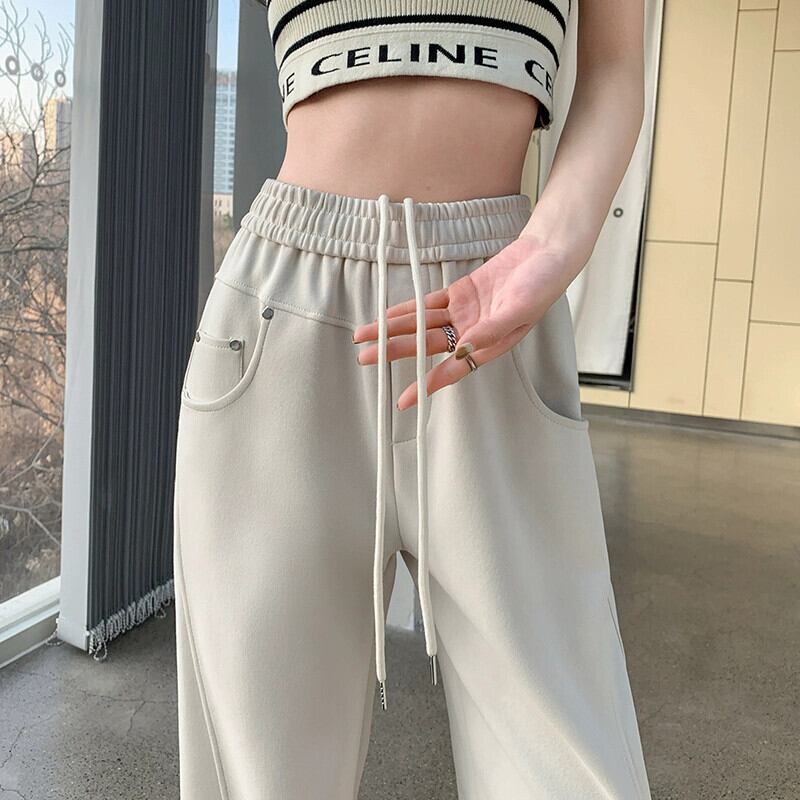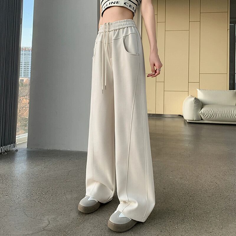 2024 ナローワイドレッグパンツ女性の春と秋のウエストドレープバナナパンツルーズスリムフロアレングスストレートパンツ スプリング 春物 オータム 秋物 ワイドパンツ 7460040272429641 | framboise21