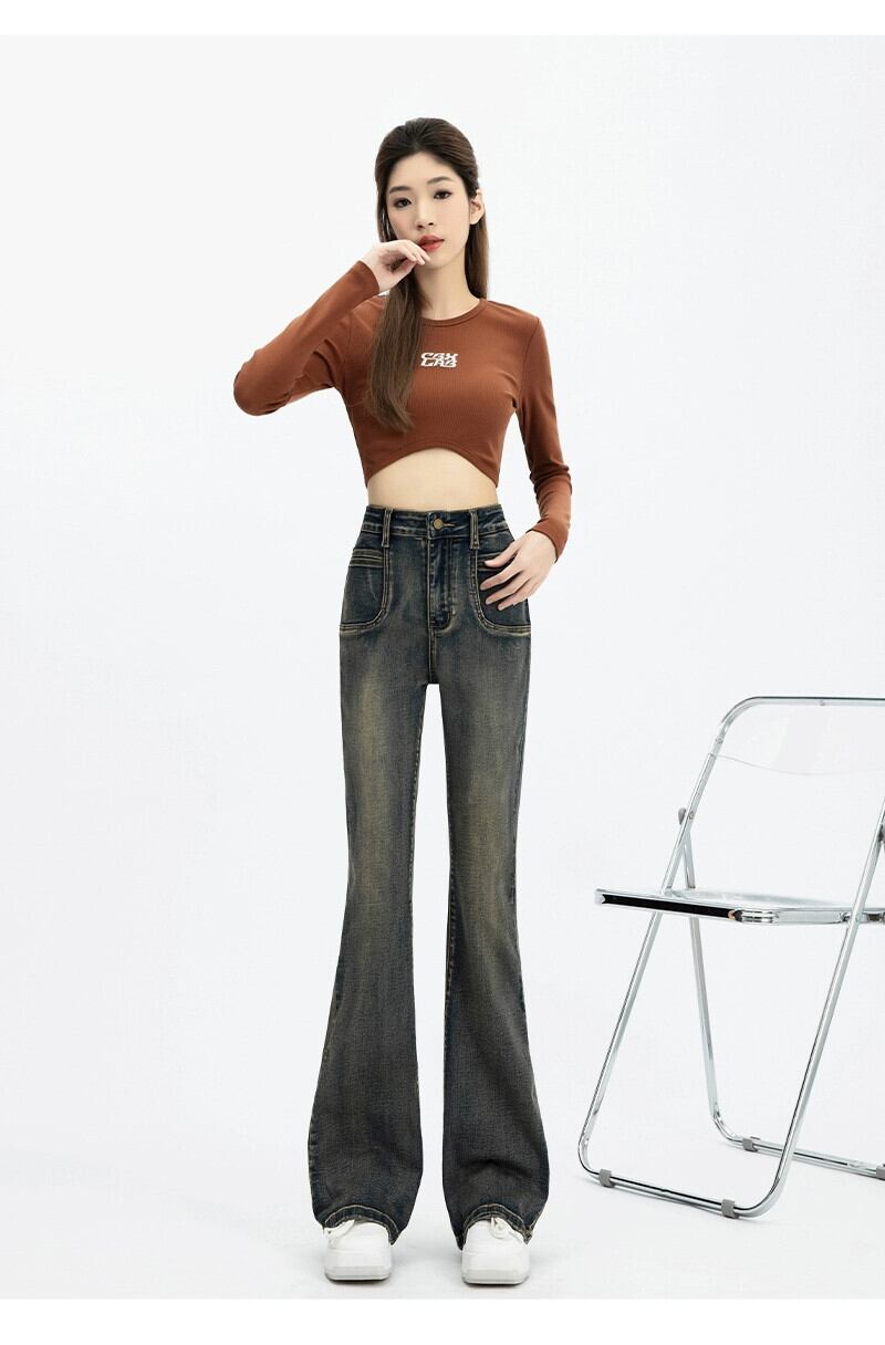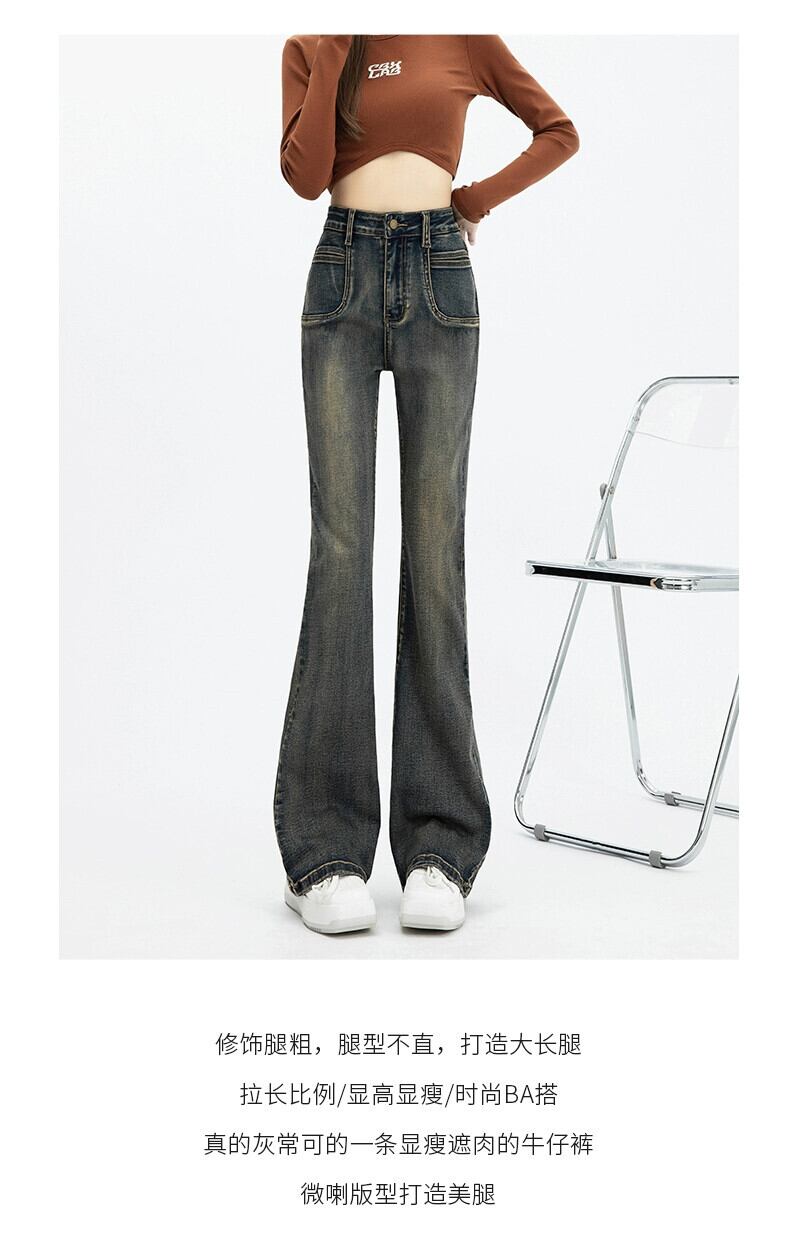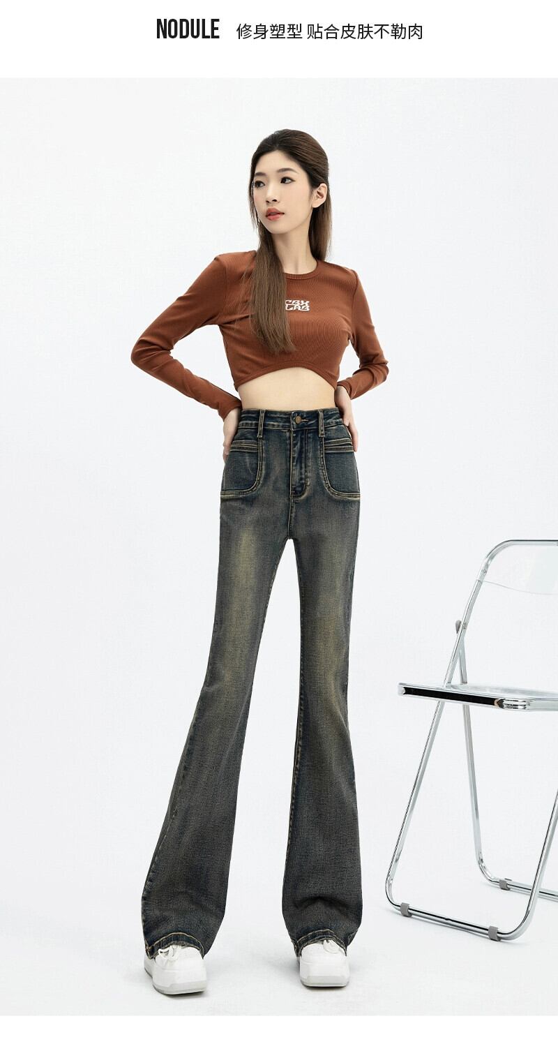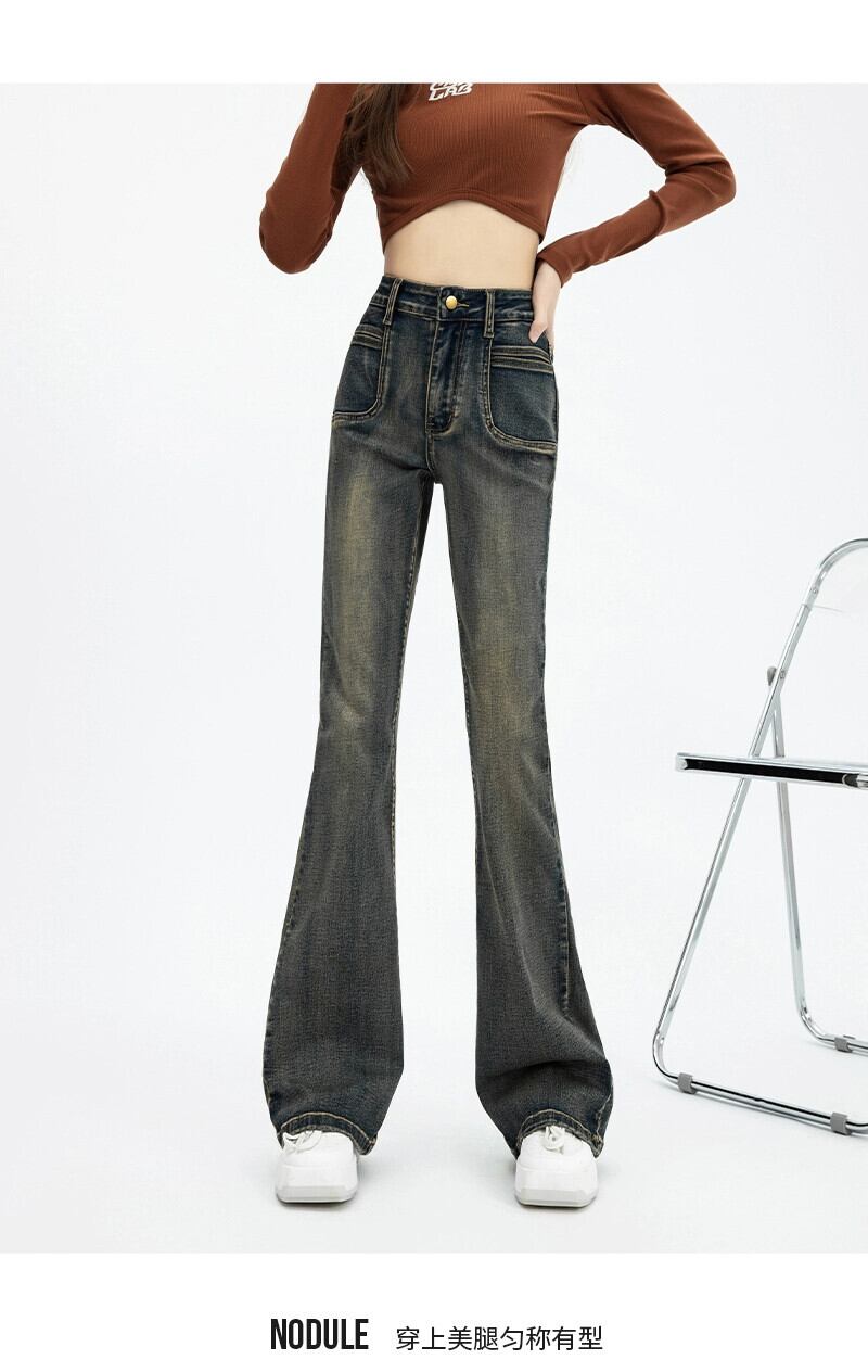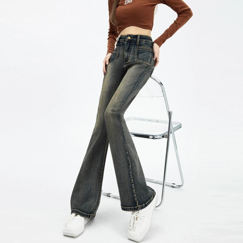 マイクロ フレア ジーンズ レディース、春と秋のスタイル、アメリカン レトロ、スリム、多用途、フロアレングス、ナロー、ストレート、ハイウエスト パンツ レッド スプリング 春物 オータム 秋物 7460036692548700 | framboise21