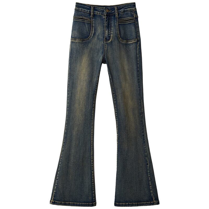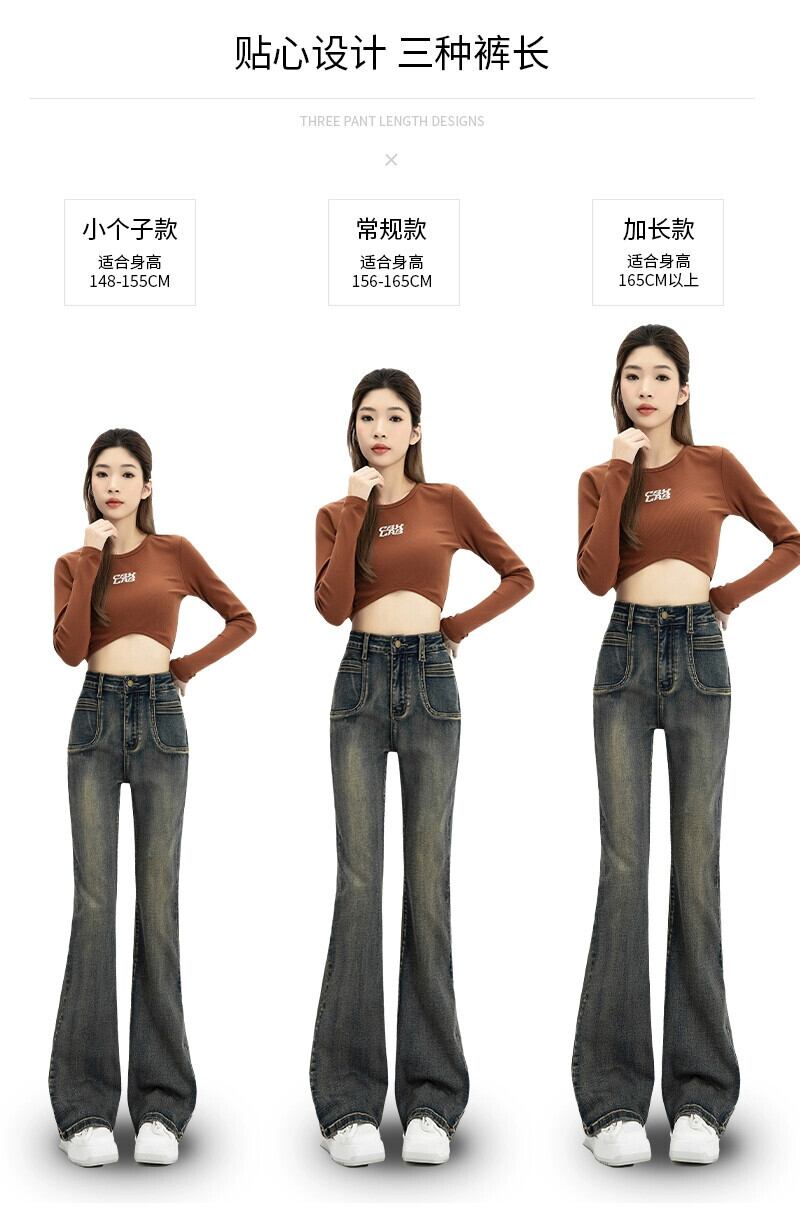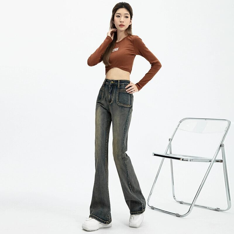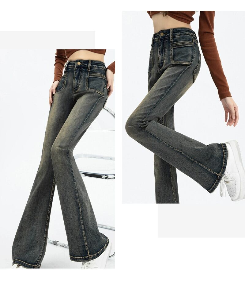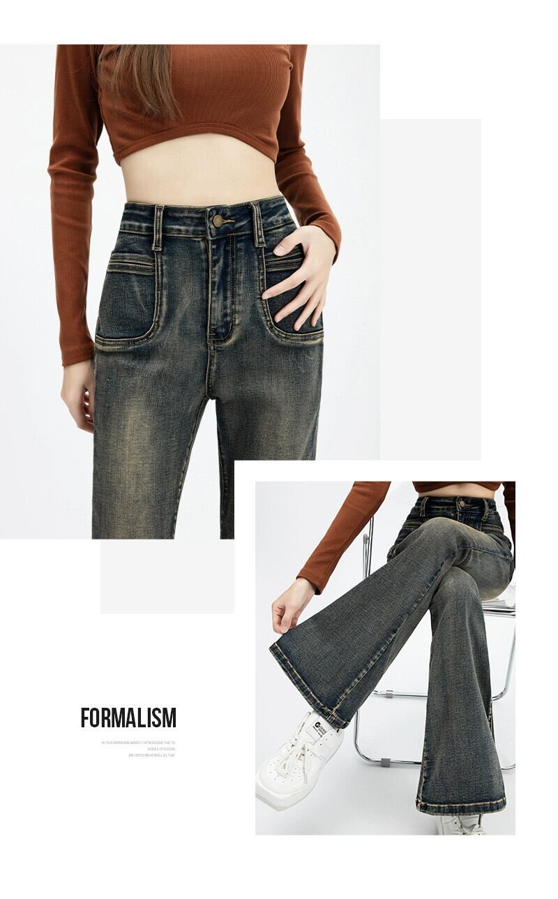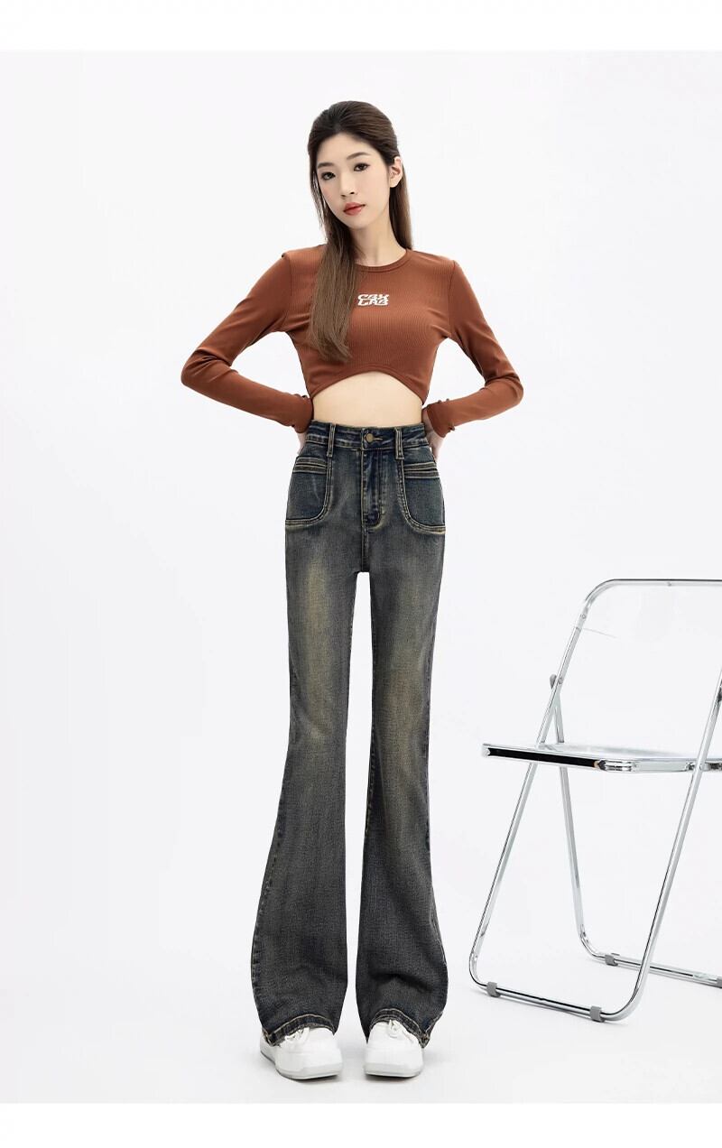 マイクロ フレア ジーンズ レディース、春と秋のスタイル、アメリカン レトロ、スリム、多用途、フロアレングス、ナロー、ストレート、ハイウエスト パンツ レッド スプリング 春物 オータム 秋物 7460036692548700 | framboise21