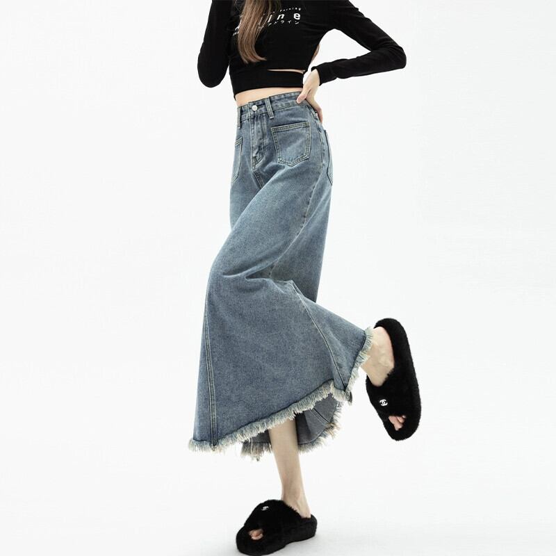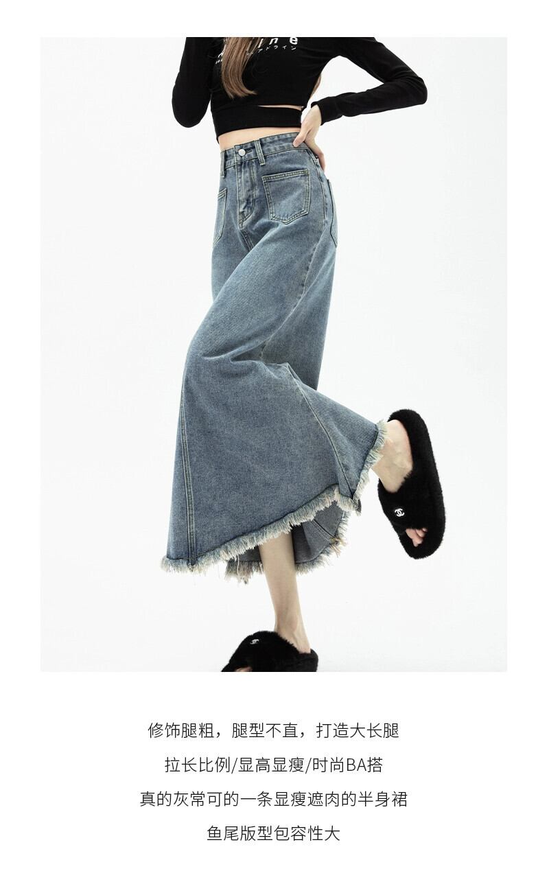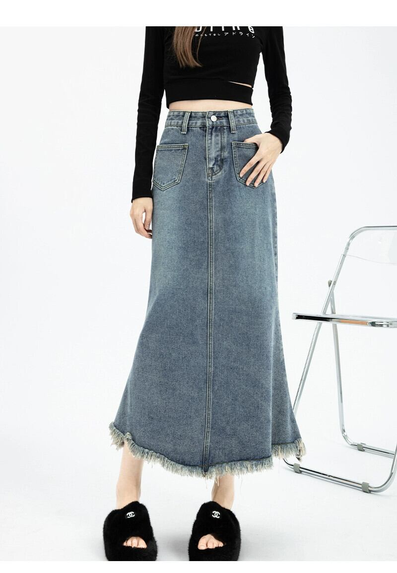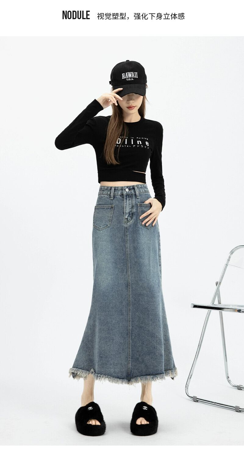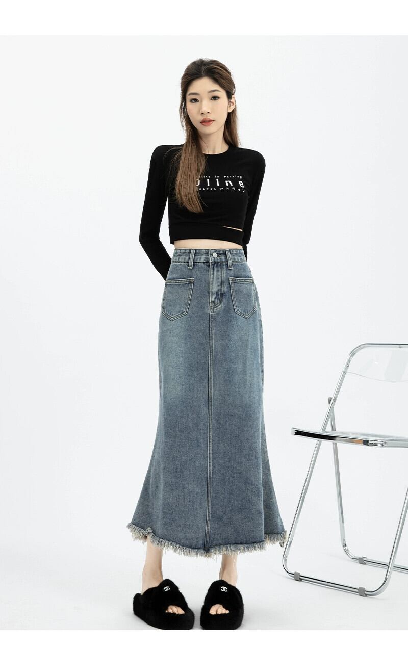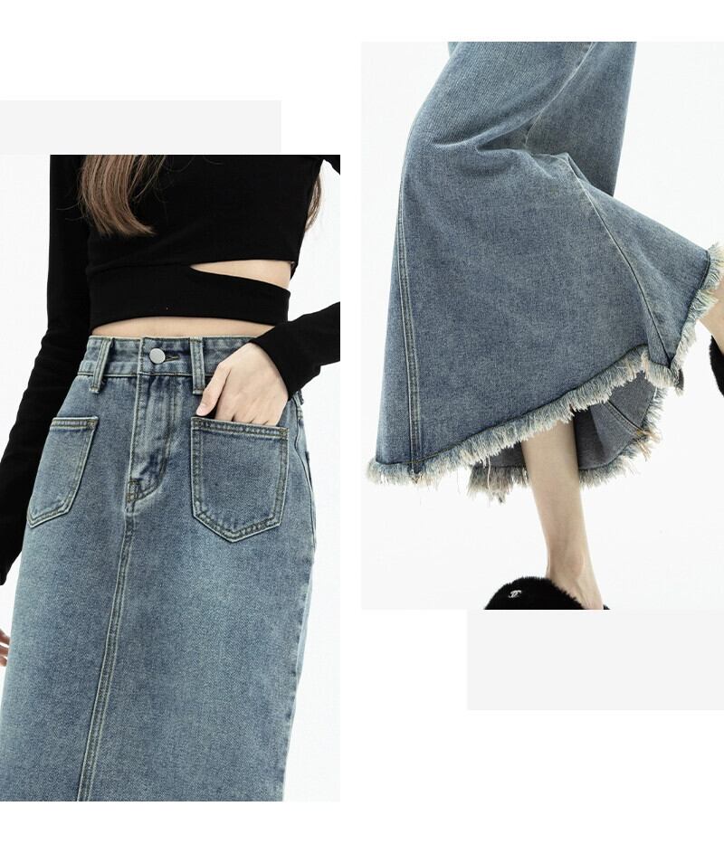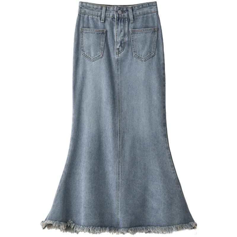 Tel フィッシュテール デニム スカート レディース 春と秋のレトロなデザイン ハイウエスト スリム A ライン ロング ヒップハグ スカート スプリング 春物 オータム 秋物 Aライン 7460013262579054 | framboise21