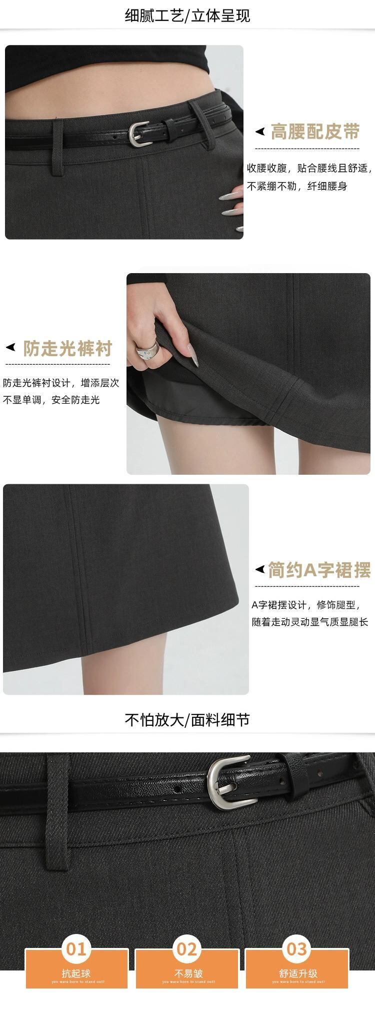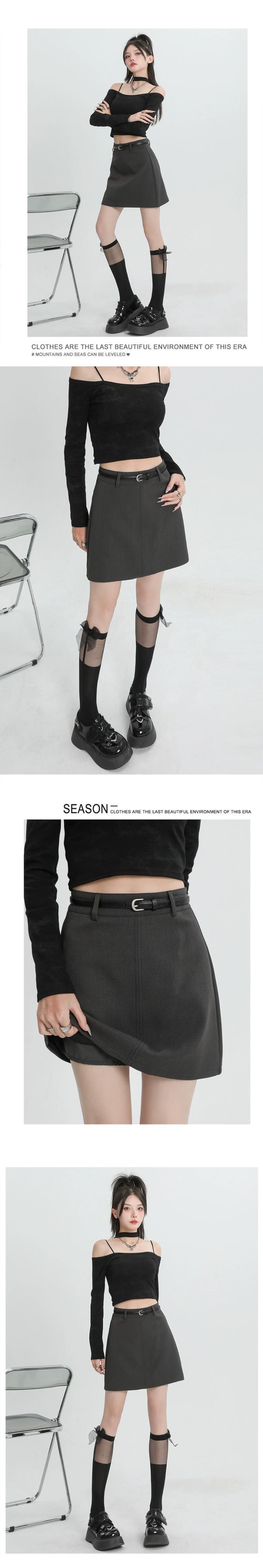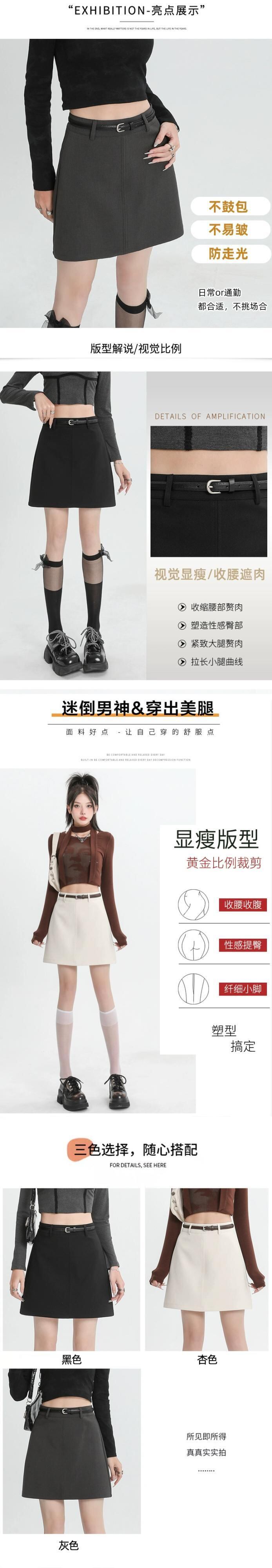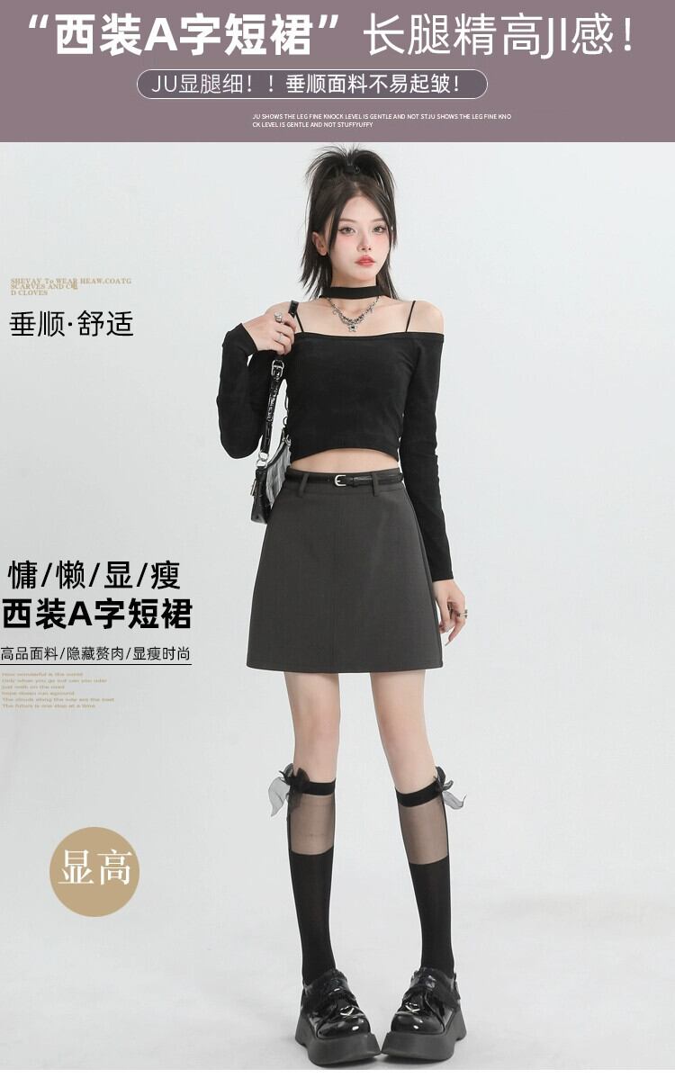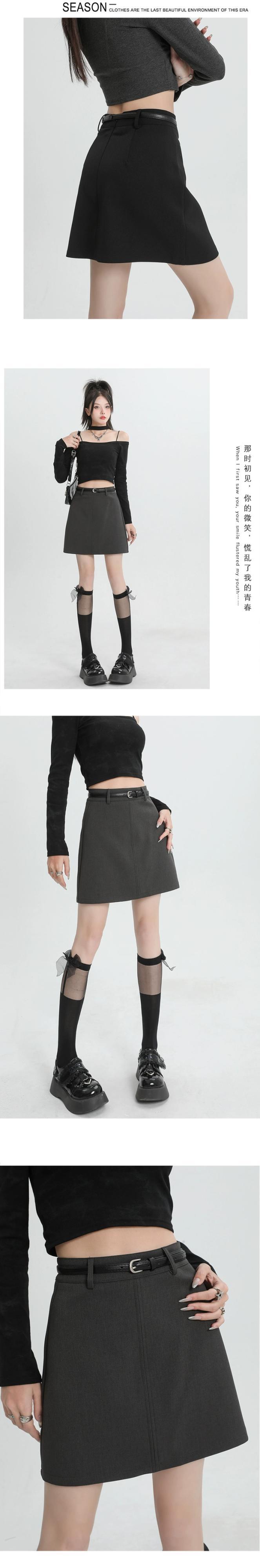 ブラックスーツスカートレディース、春と秋、小さい、ハイウエスト、スリム、露出防止、ベルト付きAラインヒップハグショートスカート スプリング 春物 オータム 秋物 ハーネス 7460097073586295 | framboise21