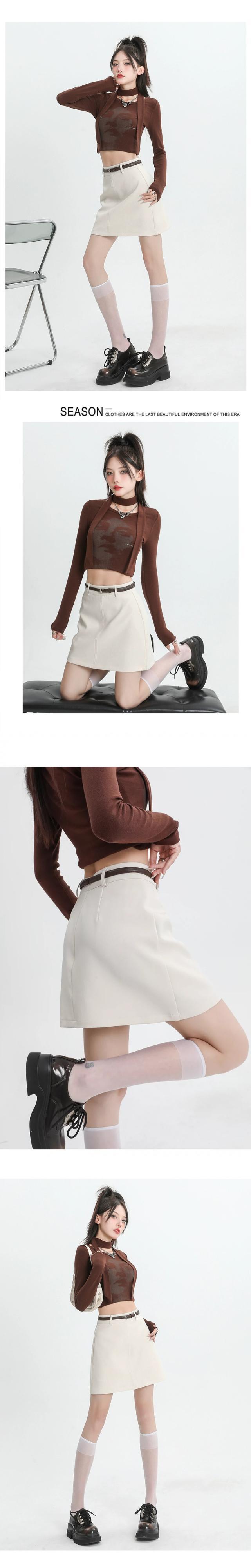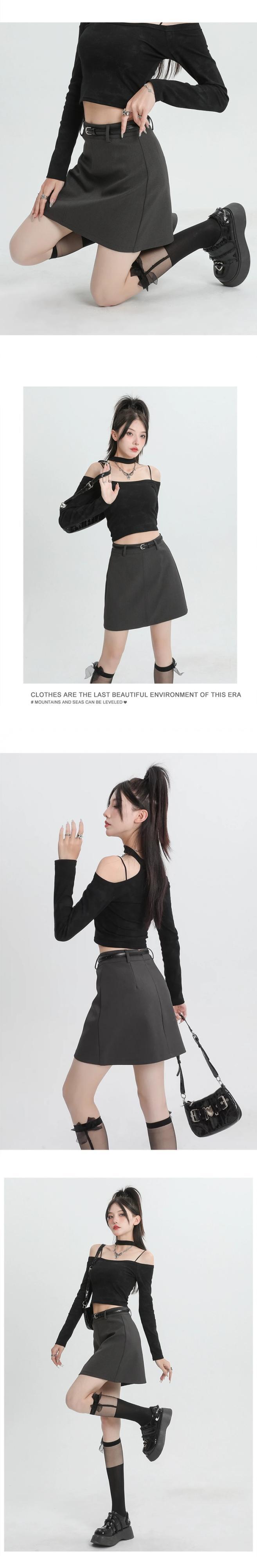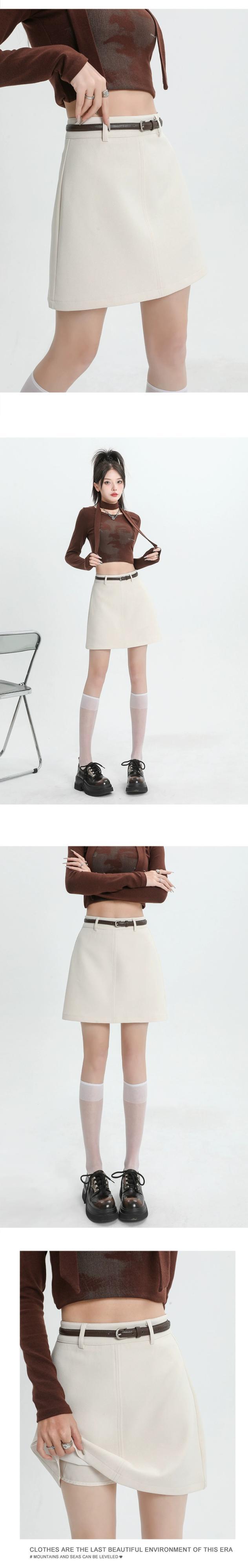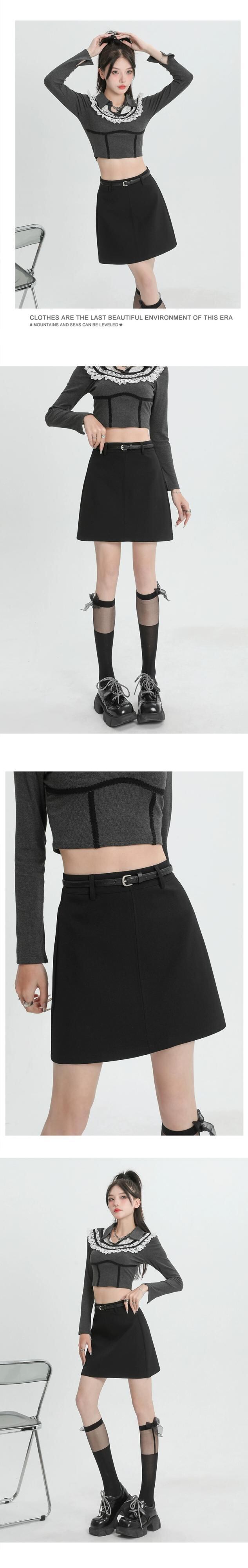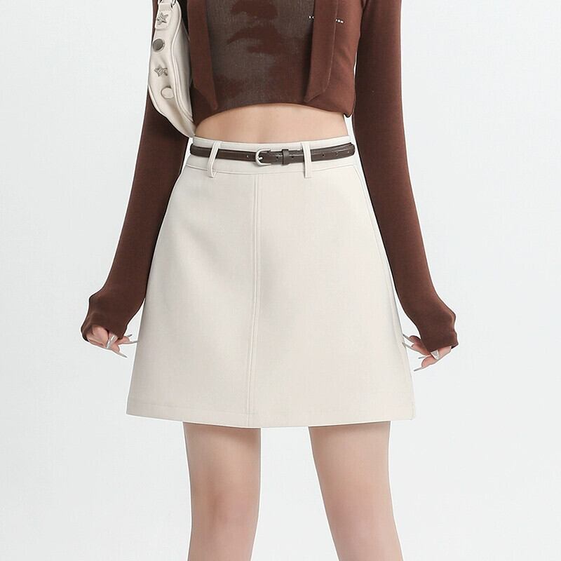 ブラックスーツスカートレディース、春と秋、小さい、ハイウエスト、スリム、露出防止、ベルト付きAラインヒップハグショートスカート スプリング 春物 オータム 秋物 ハーネス 7460097073586295 | framboise21