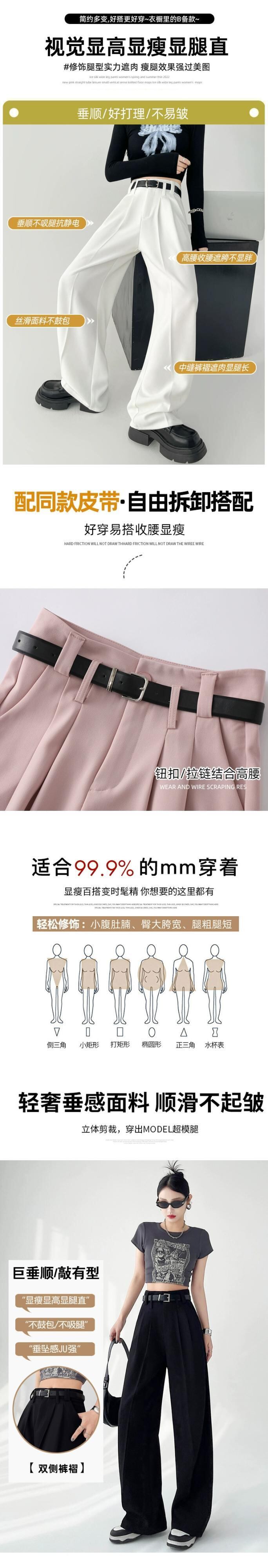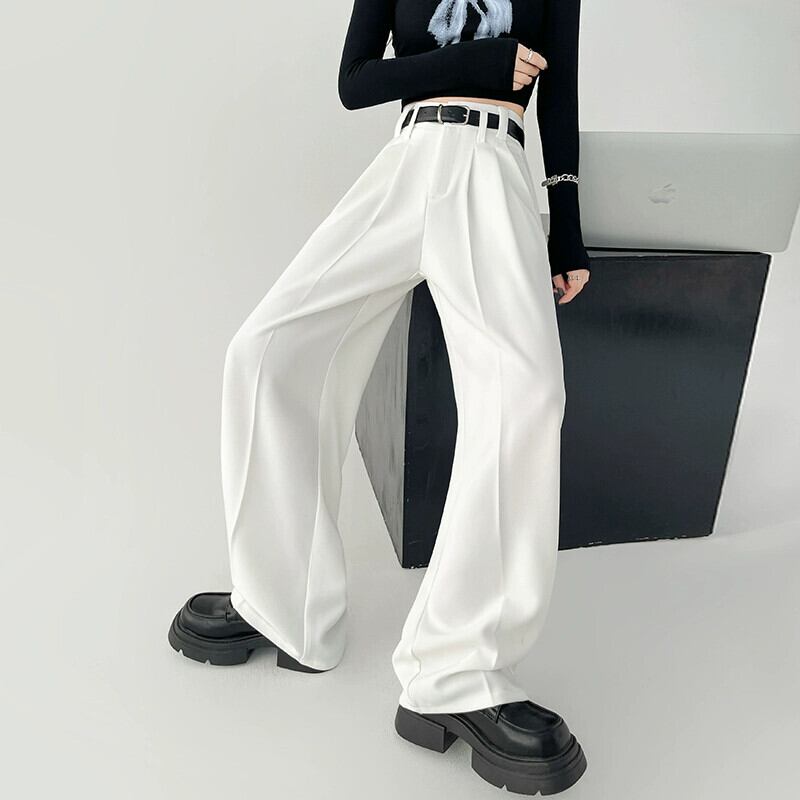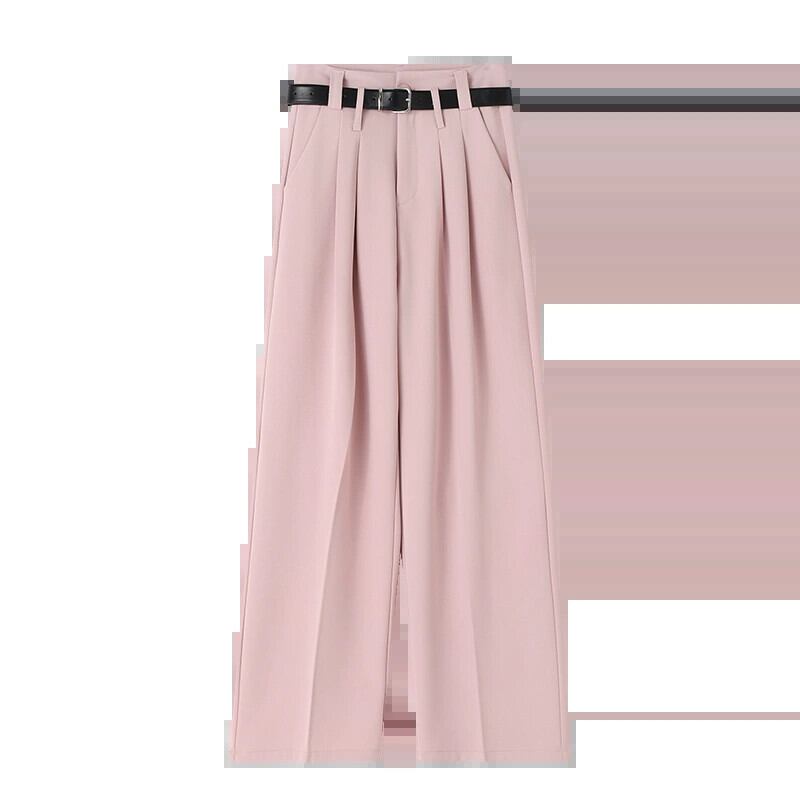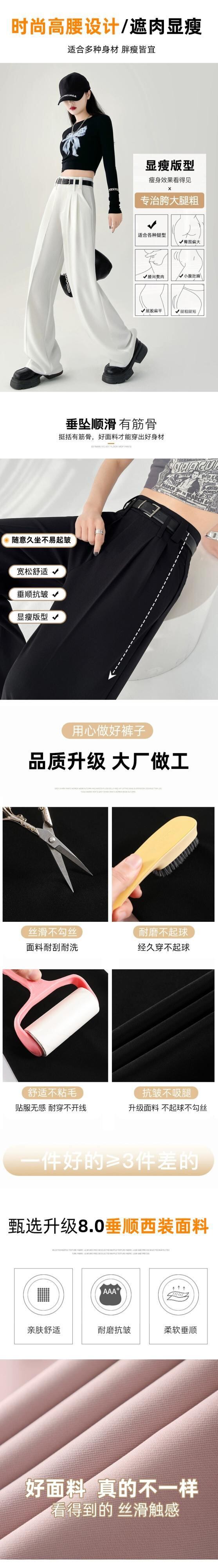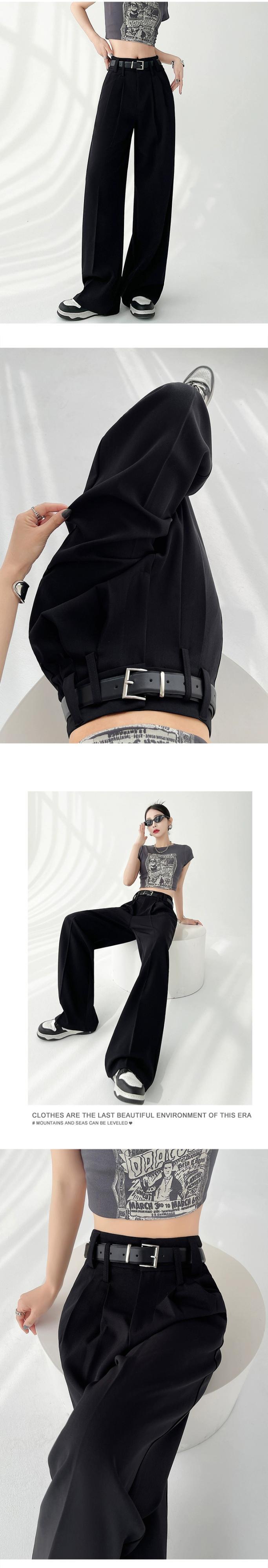 春と秋の黒のワイドレッグストレートスーツパンツの女性、ハイエンド、ルーズ、スリム、汎用性の高いフロアレングスのカジュアルシガレットパンツ ブラック スプリング 春物 オータム 秋物 7460038827765248 | framboise21