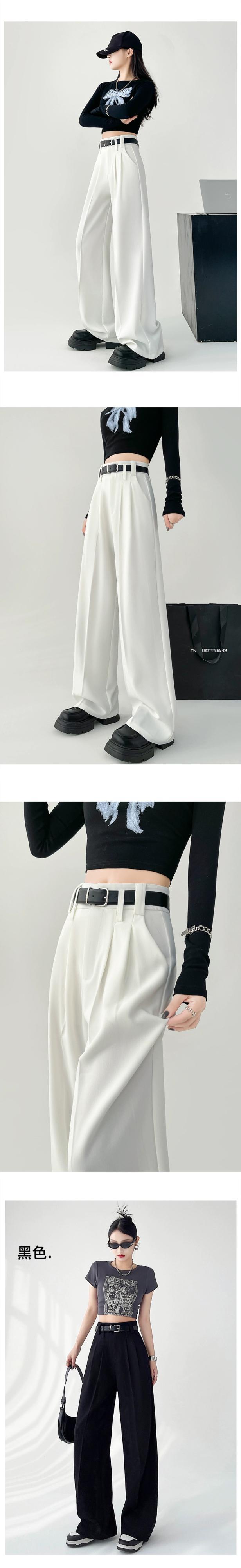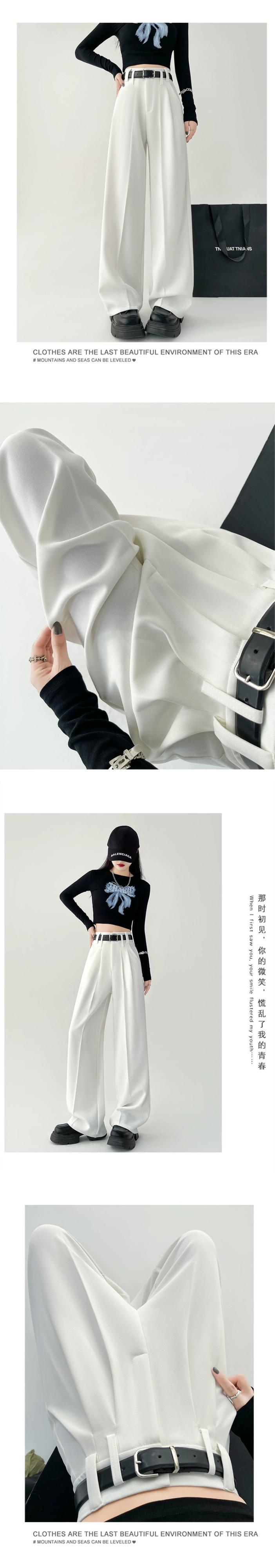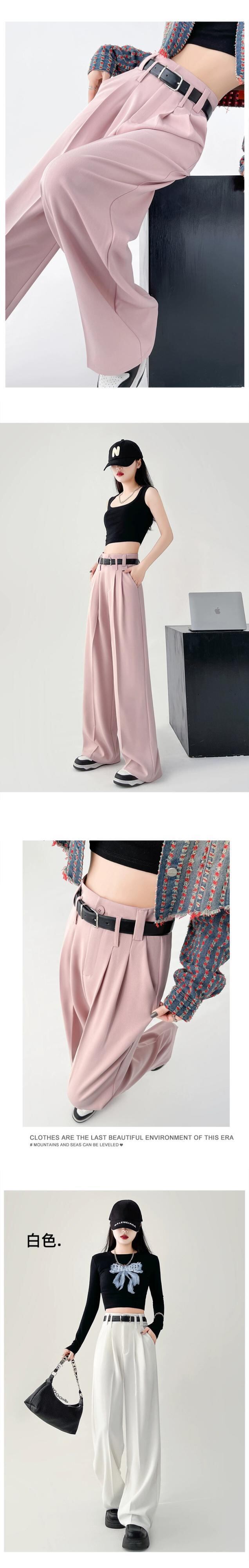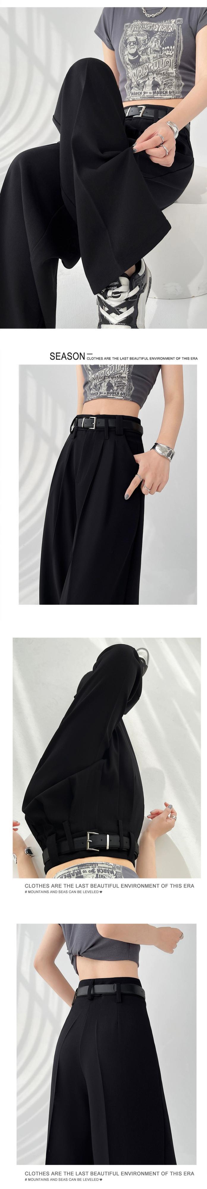 春と秋の黒のワイドレッグストレートスーツパンツの女性、ハイエンド、ルーズ、スリム、汎用性の高いフロアレングスのカジュアルシガレットパンツ ブラック スプリング 春物 オータム 秋物 7460038827765248 | framboise21