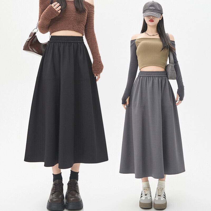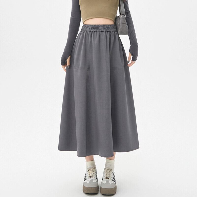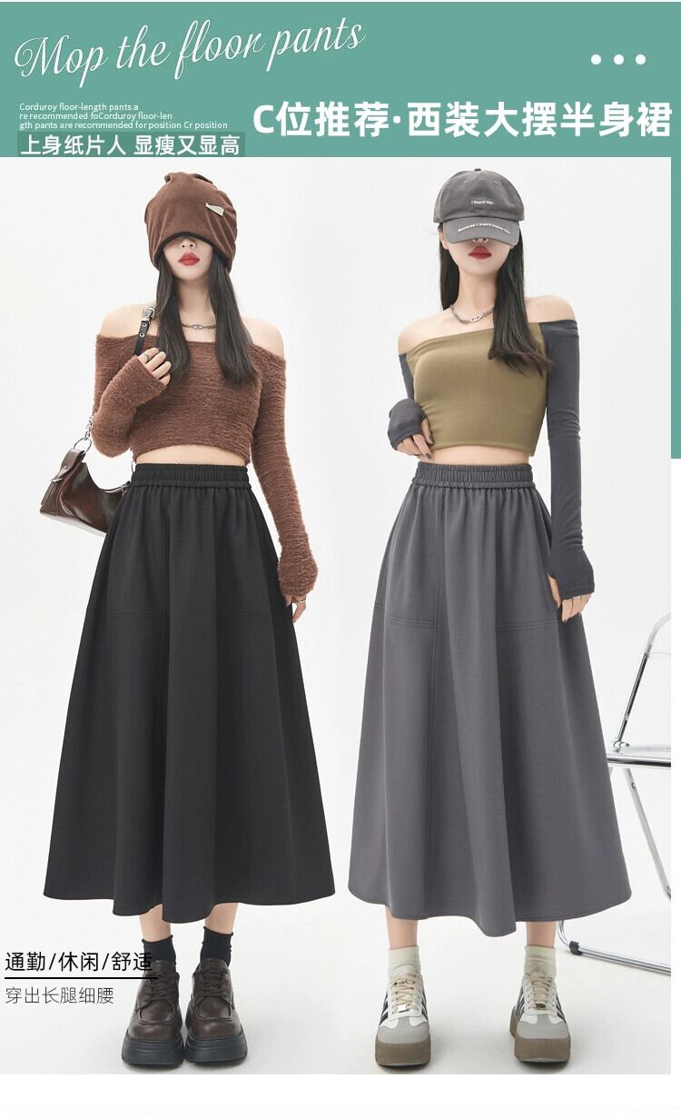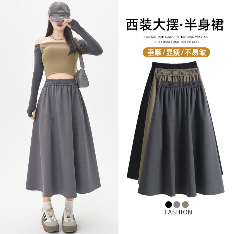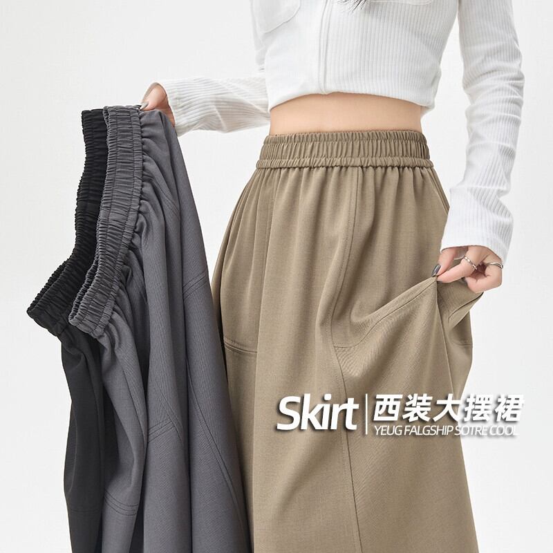 弾性ハイウエストスーツスカート女性 2024 新しい春と秋のスタイル股間をカバーし、痩身 a ラインミッドレングス大きなスイングアンブレラスカート エラスティック 伸縮 スプリング 春物 オータム 秋物 Aライン 7460011456133487 | framboise21