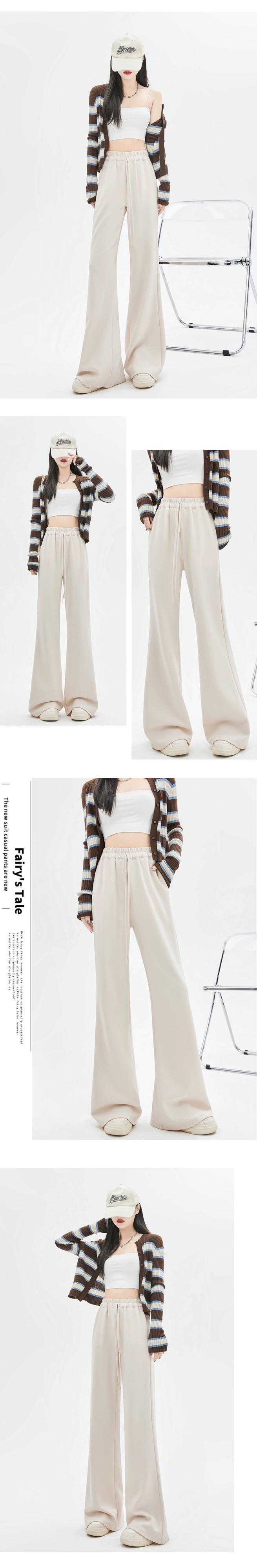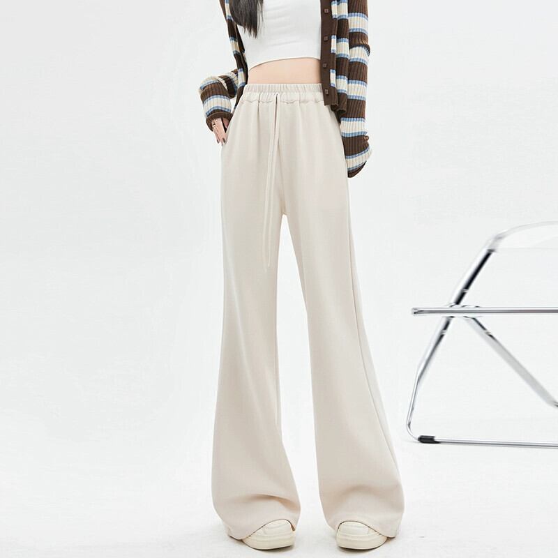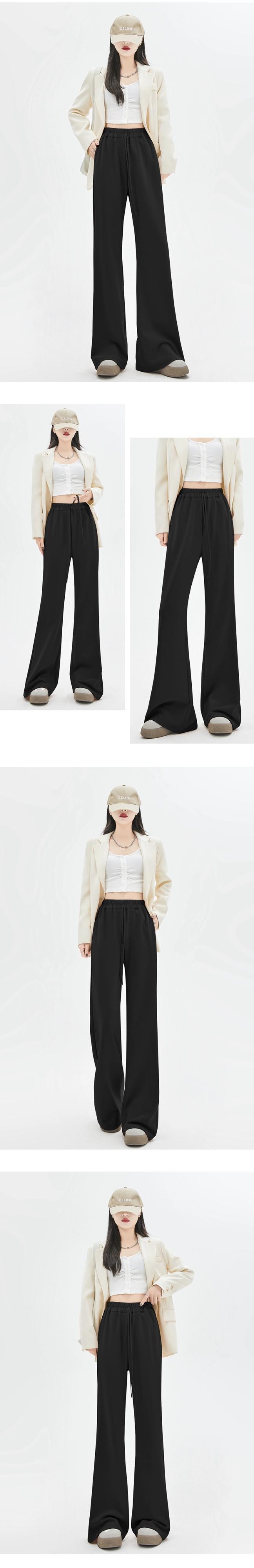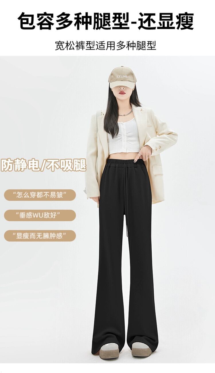 春と秋のドレープワイドレッグパンツの女性の黒の狭いバージョン、新しいスタイルのハイウエスト馬蹄パンツ、ルーズスリミングフロアレングスカジュアルベルボトムパンツ ブラック スプリング 春物 オータム 秋物 7460039854590092 | framboise21