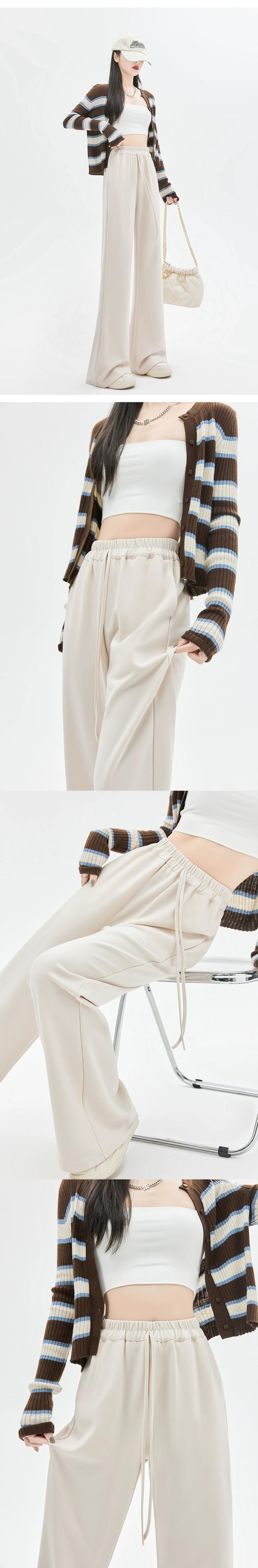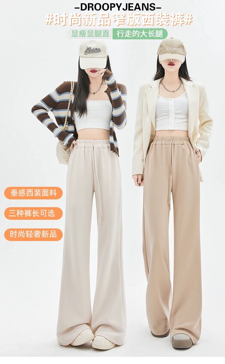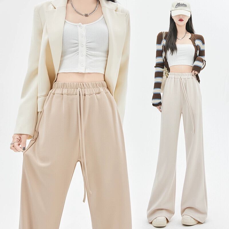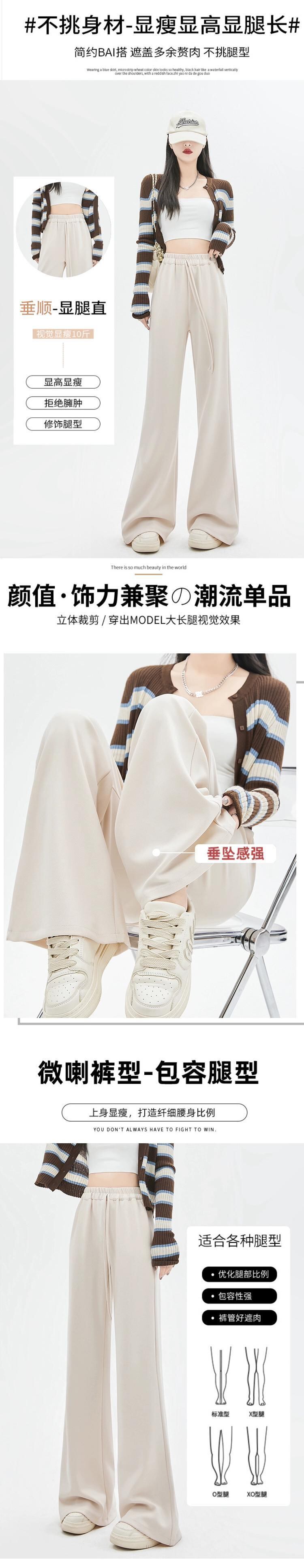 春と秋のドレープワイドレッグパンツの女性の黒の狭いバージョン、新しいスタイルのハイウエスト馬蹄パンツ、ルーズスリミングフロアレングスカジュアルベルボトムパンツ ブラック スプリング 春物 オータム 秋物 7460039854590092 | framboise21