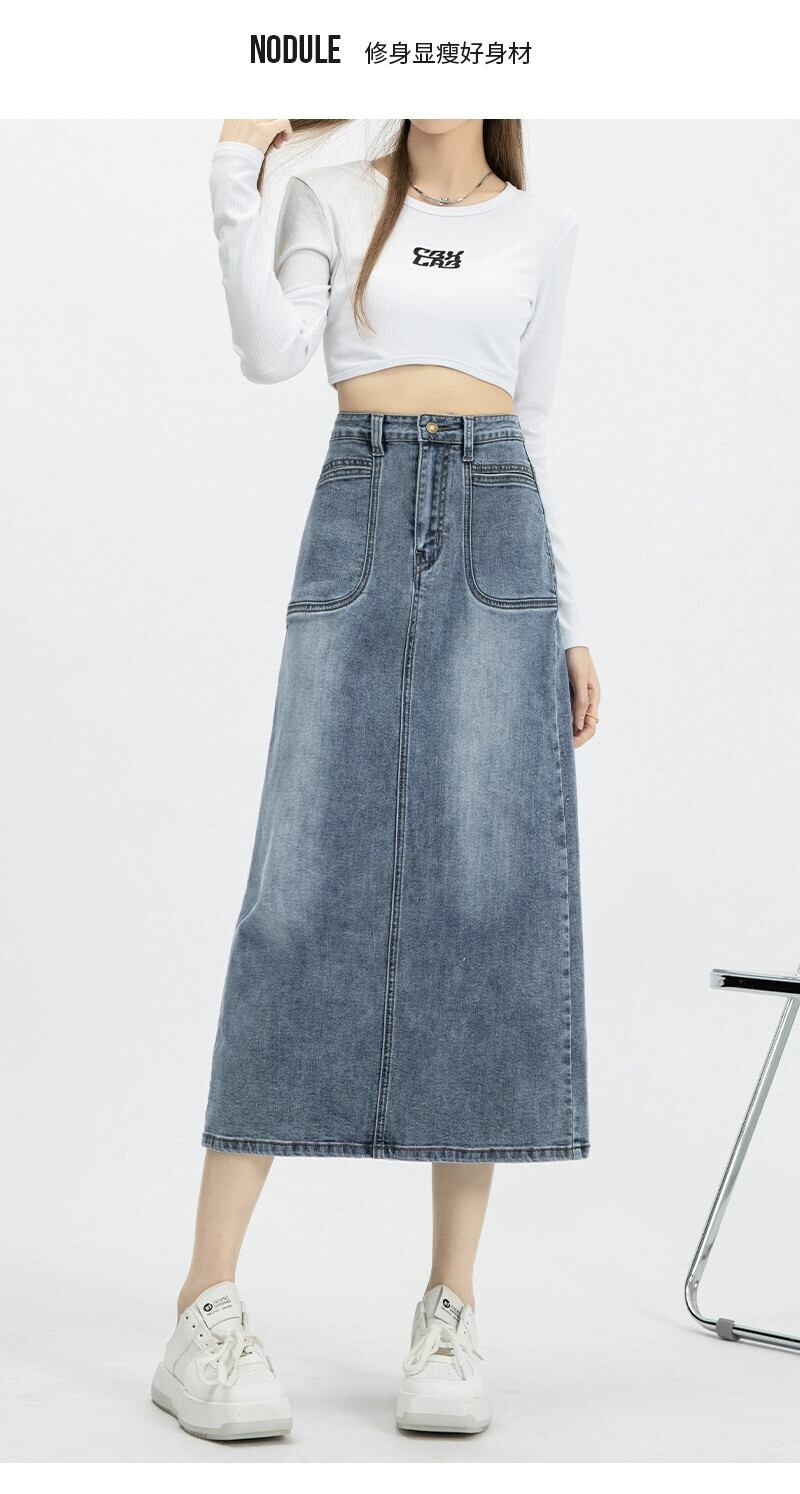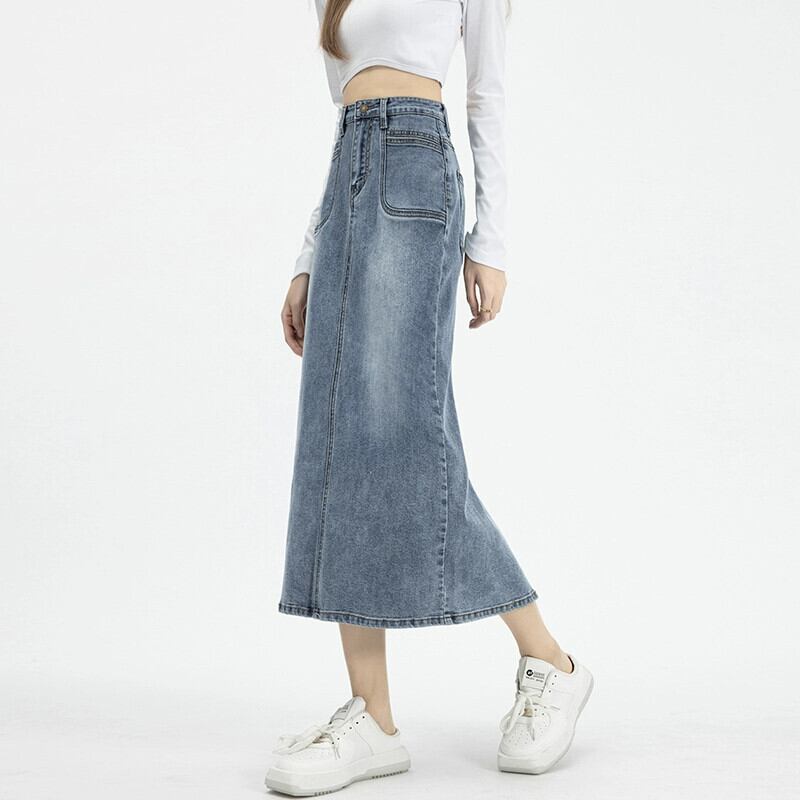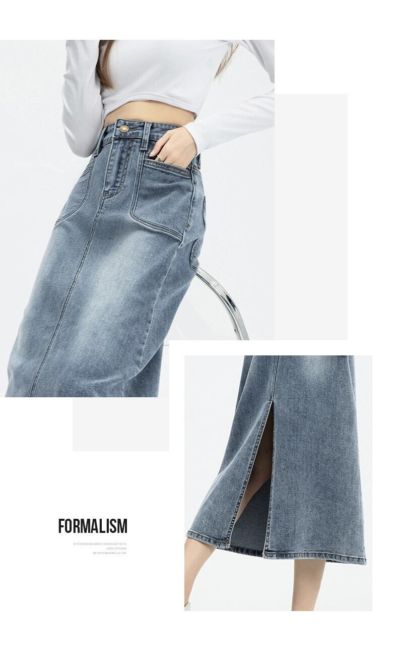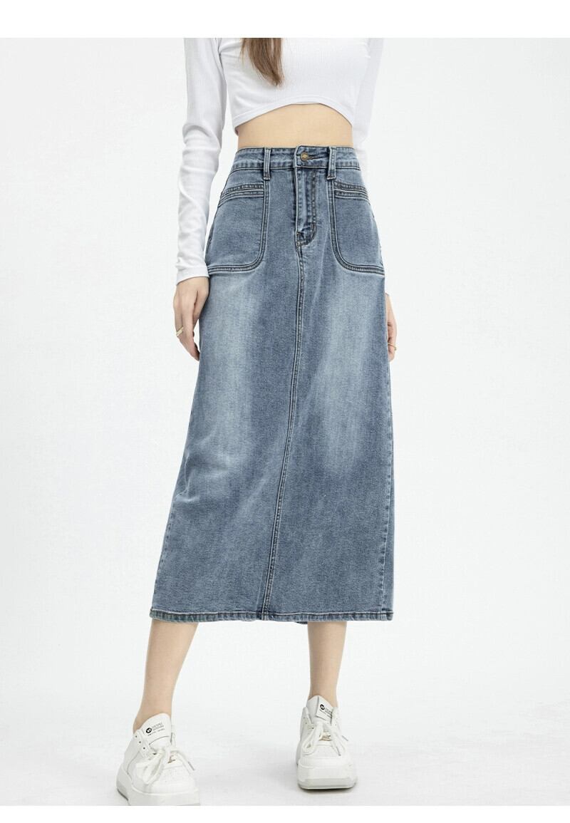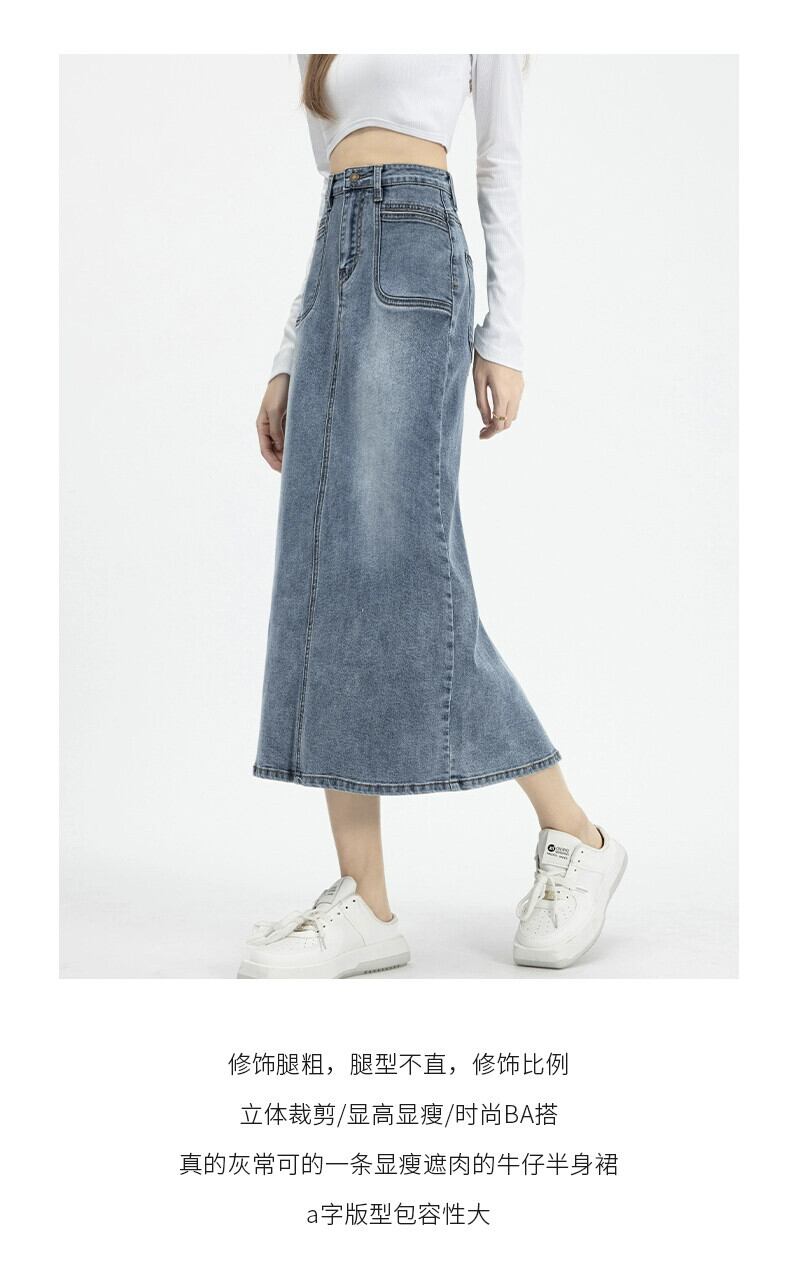 バックスリットデニムスカートレディース、春と秋のレトロなヒップカバー、ハイウエスト、スリムストレートAラインミッドレングスのヒップカバースカート スプリング 春物 オータム 秋物 7460069460284214 | framboise21